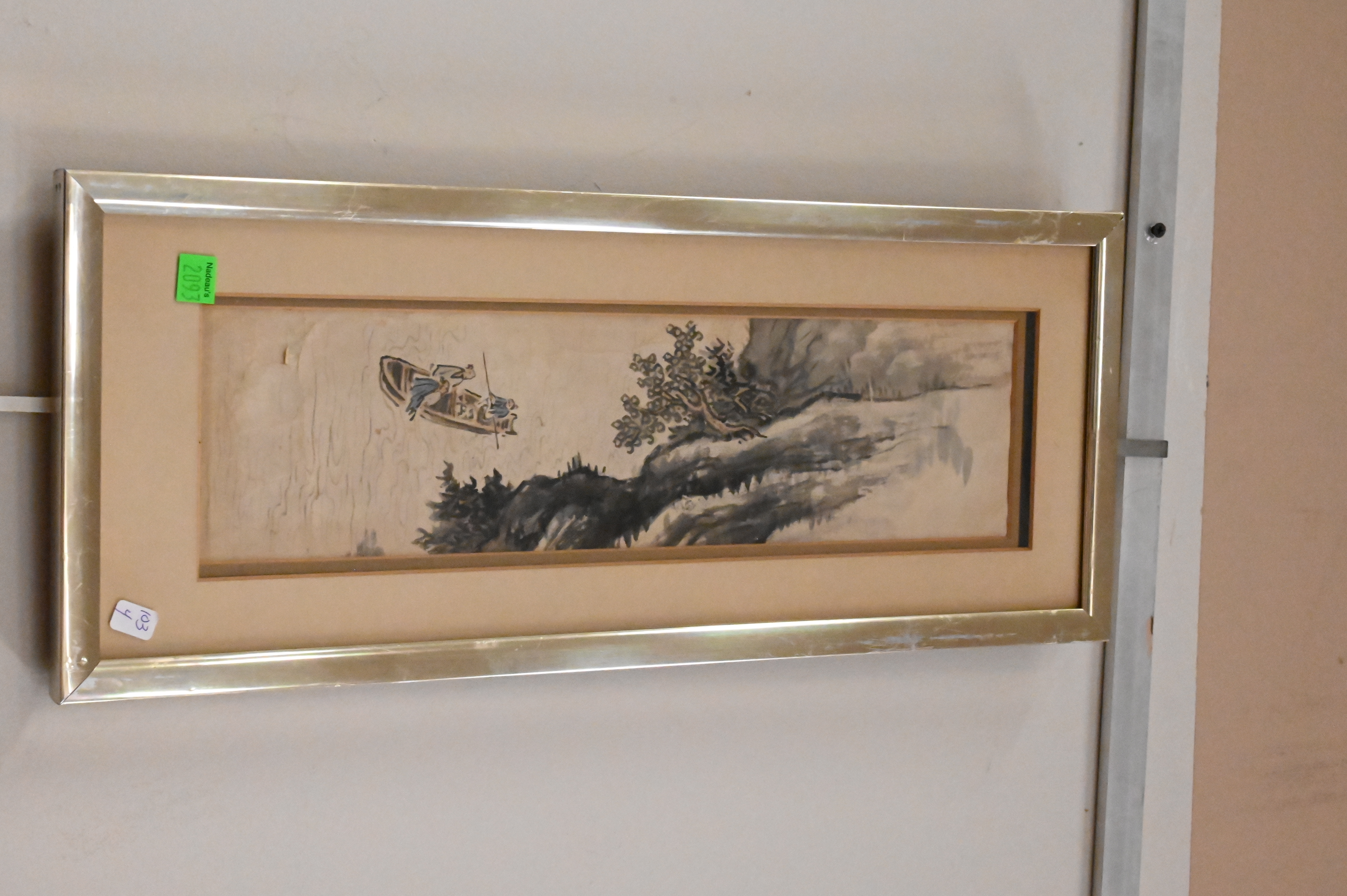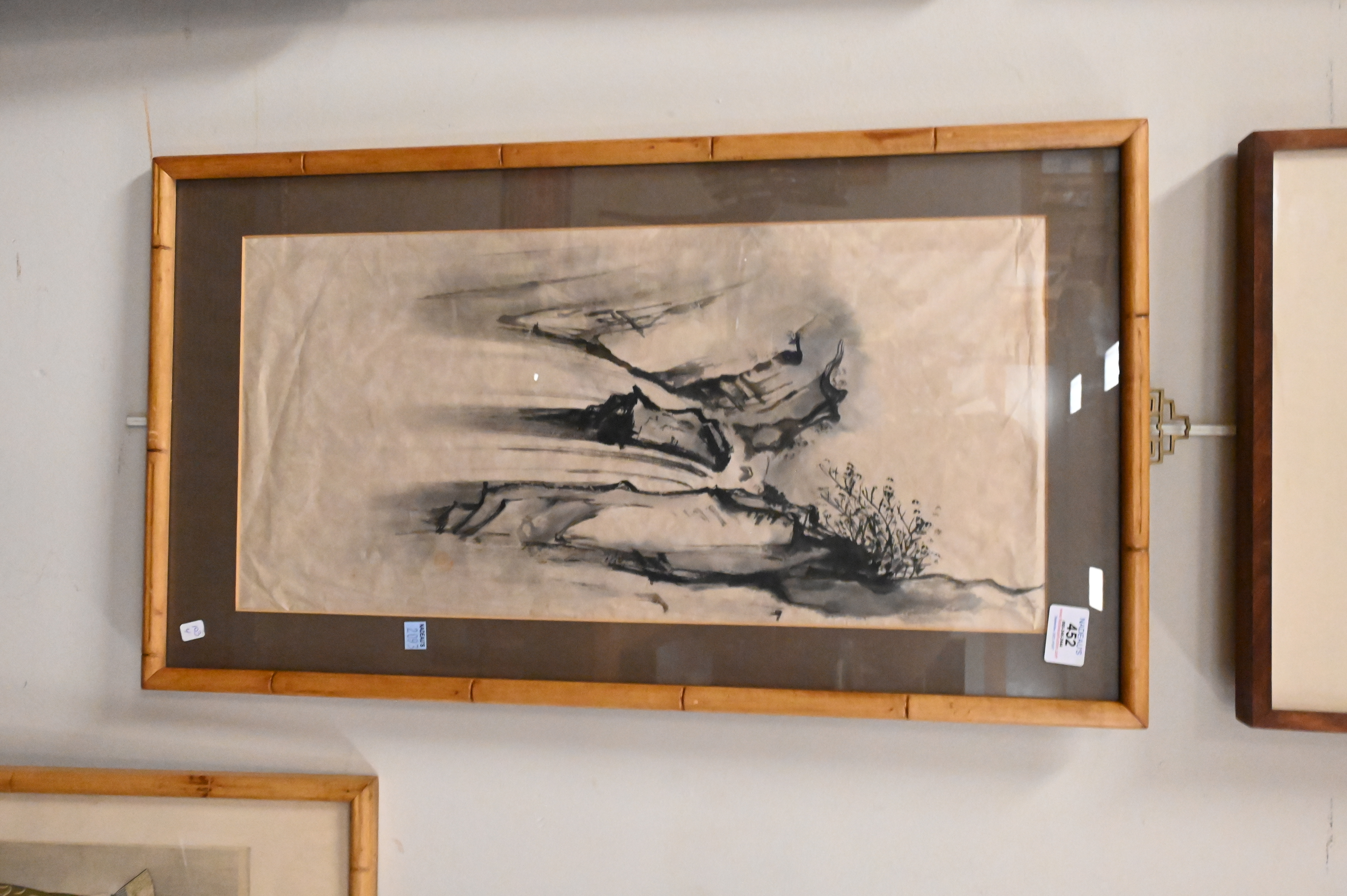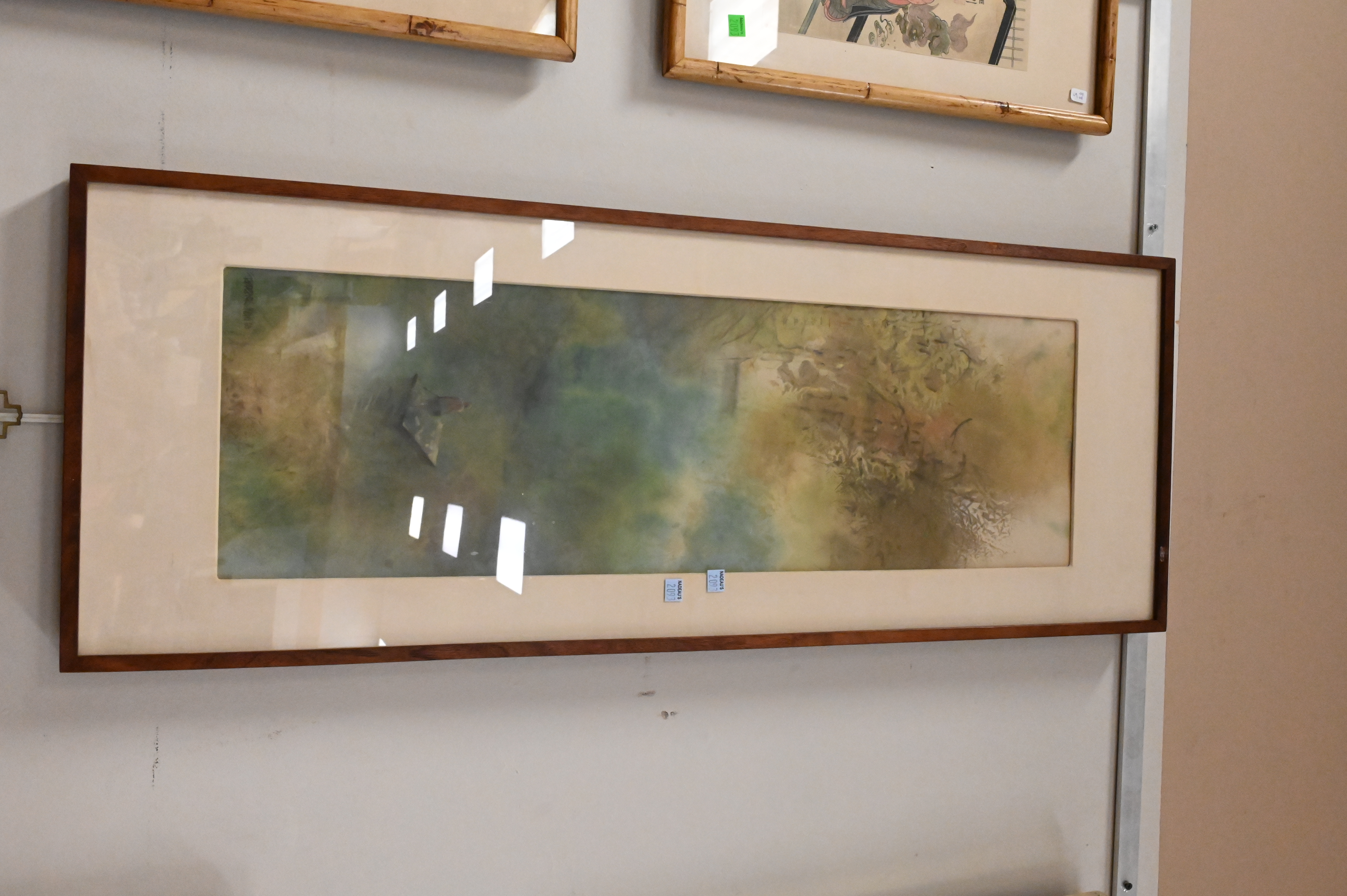 to include four piece group of framed Asian scroll watercolor landscapes Frederick Wong (Asian American b. 1929)
