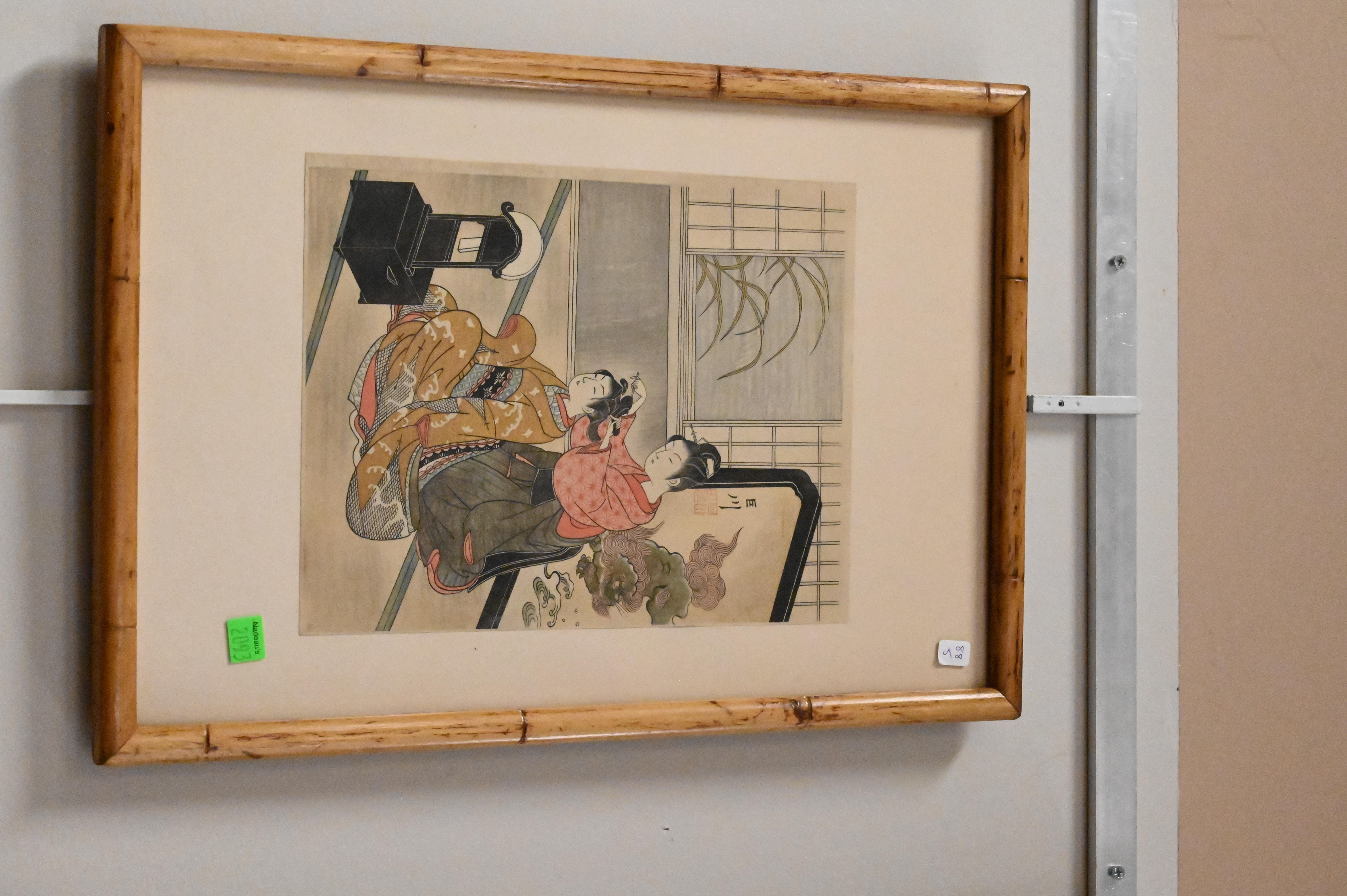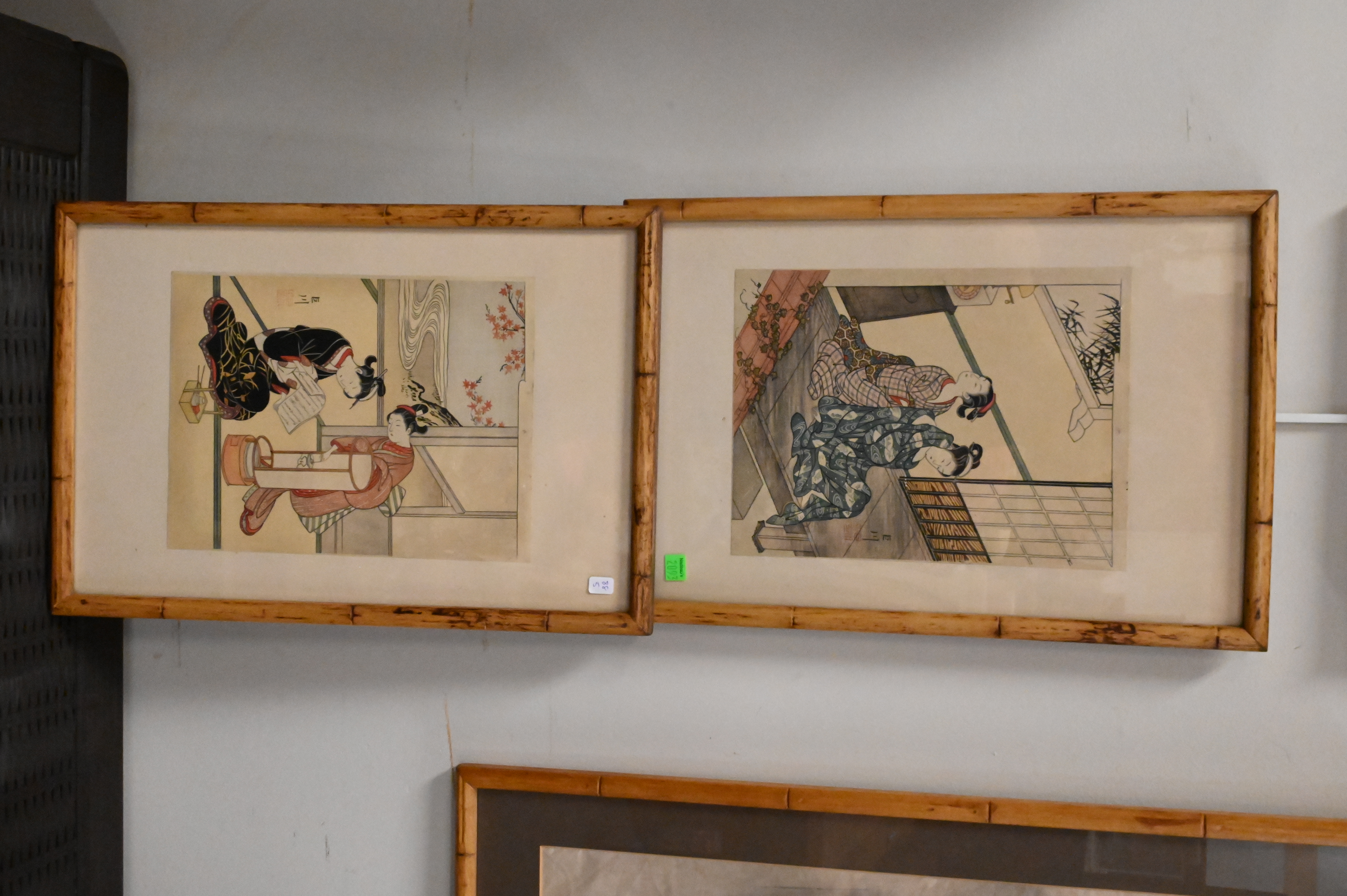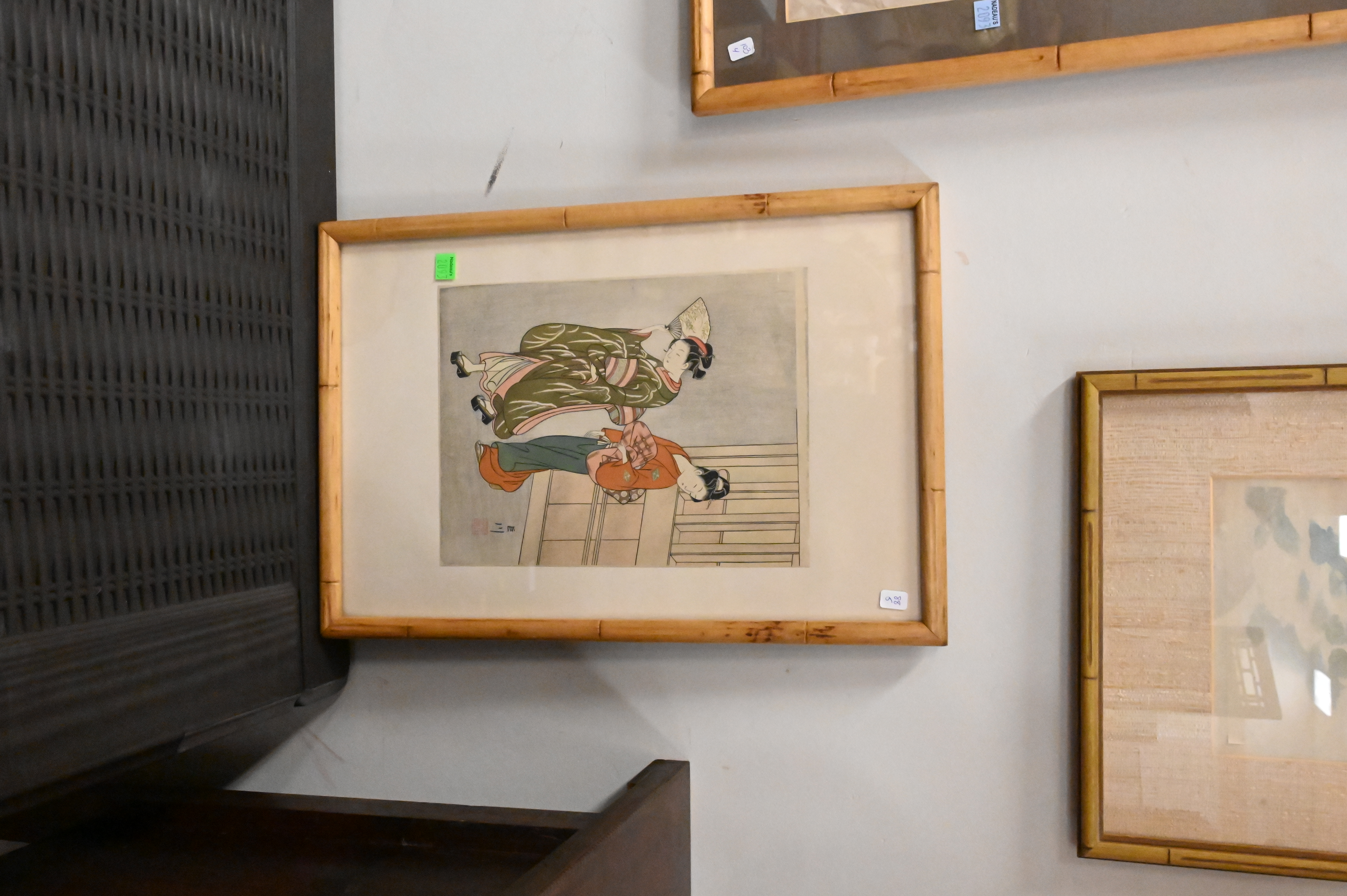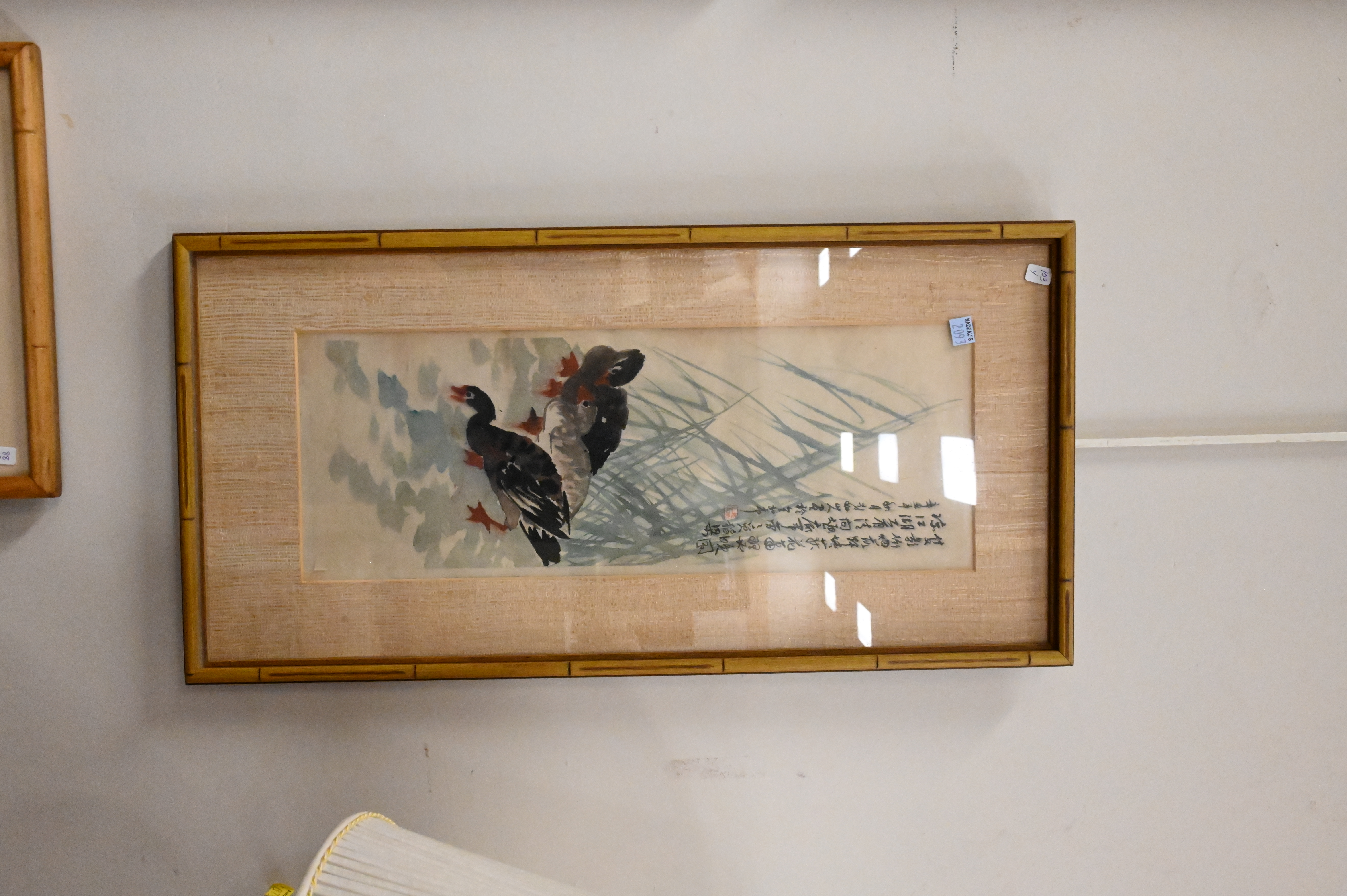 to include four piece group of framed Asian scroll watercolor landscapes Frederick Wong (Asian American b. 1929)