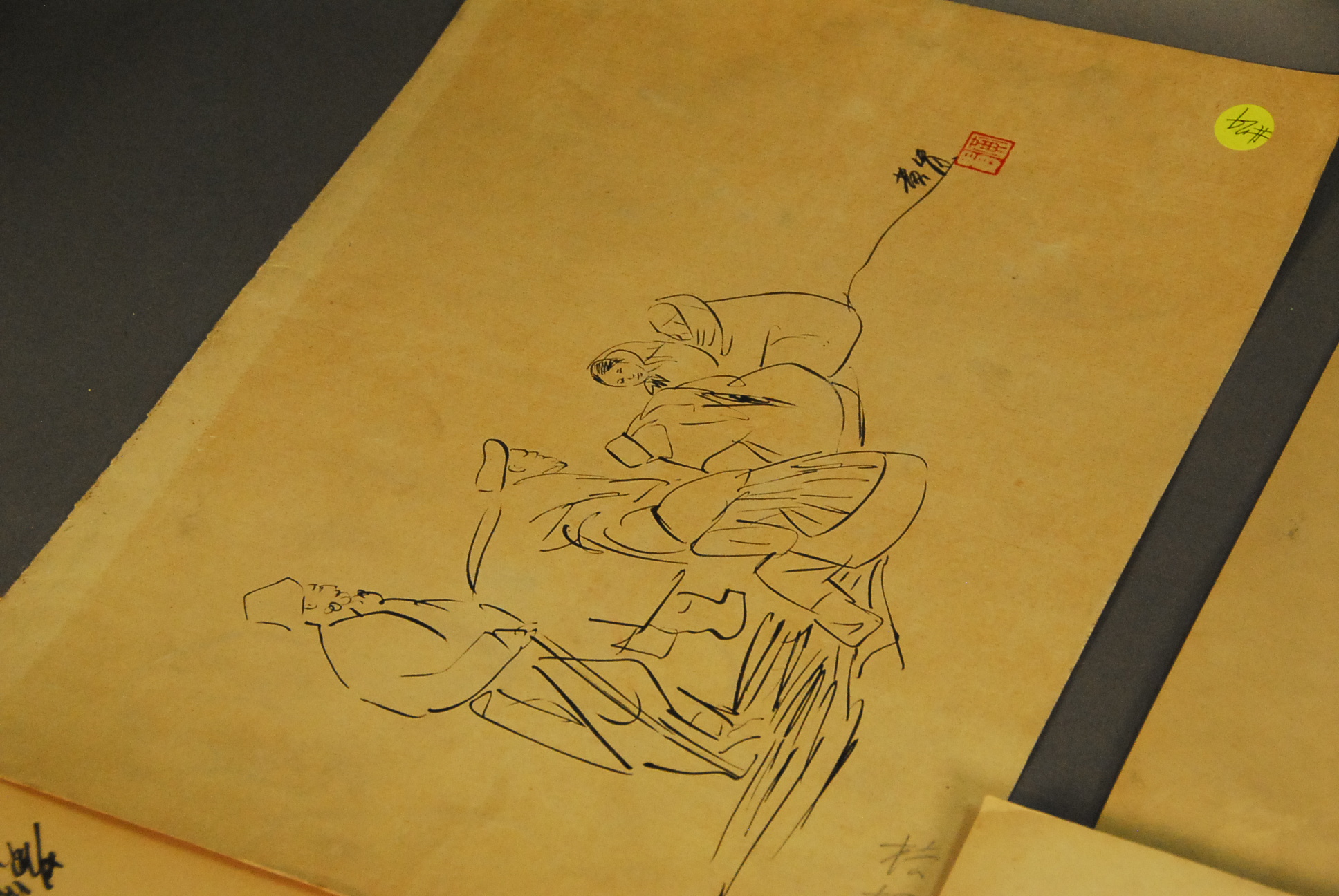 Grouping of eight paintings signed lower right, 16 1/2 x 12.