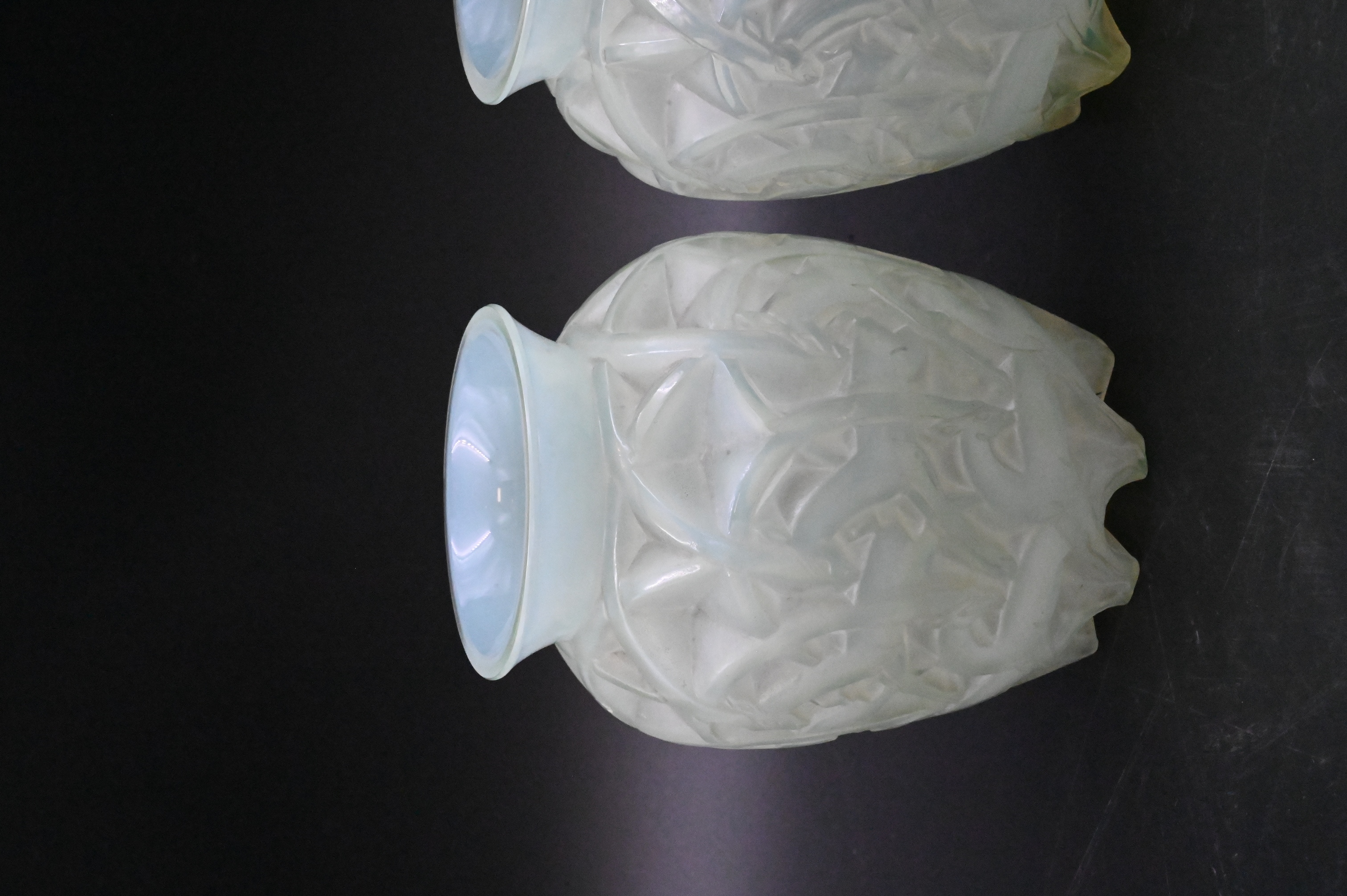 Pair of Rene Lalique “Chamois” Opalescent Glass Vases