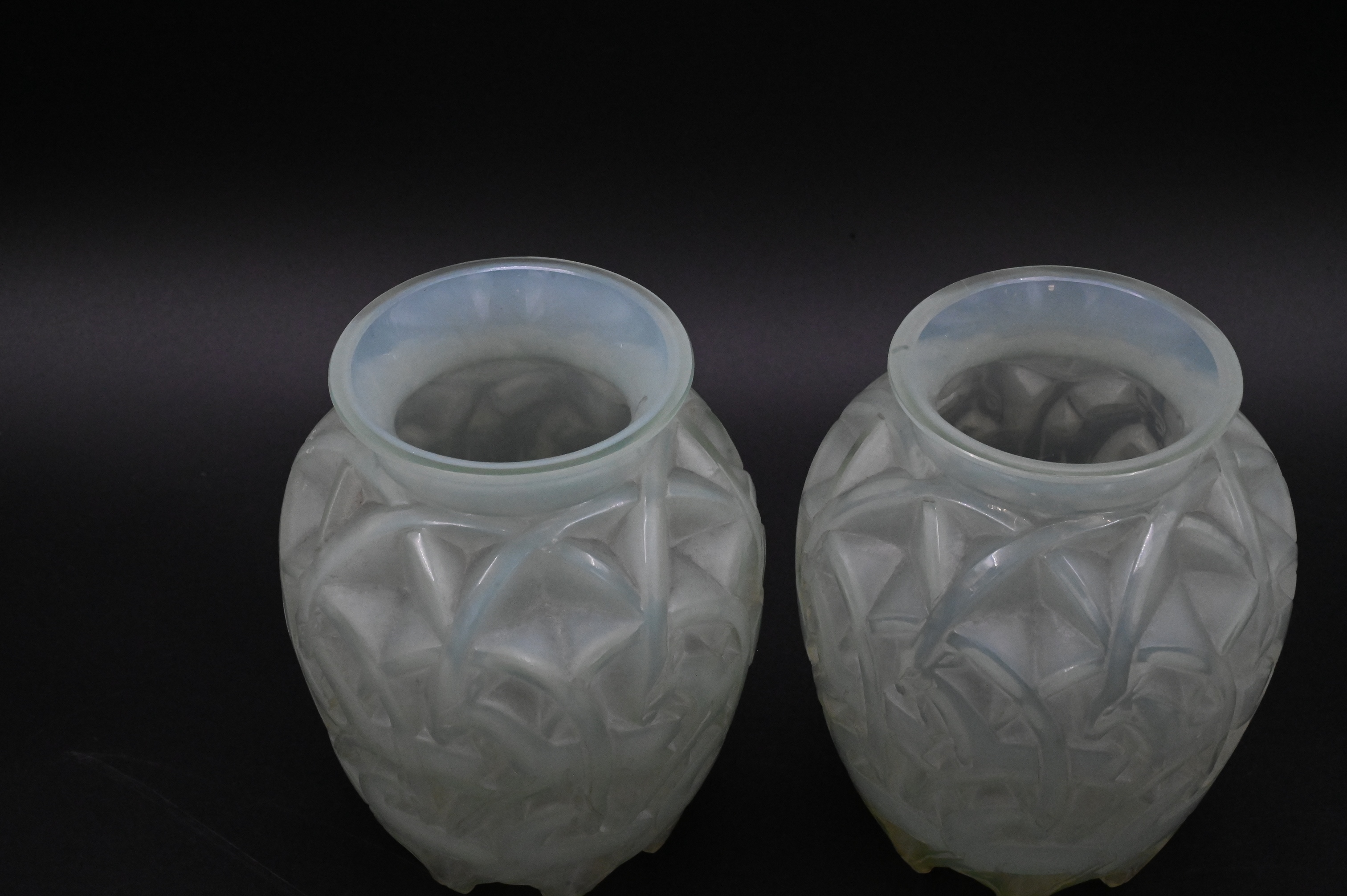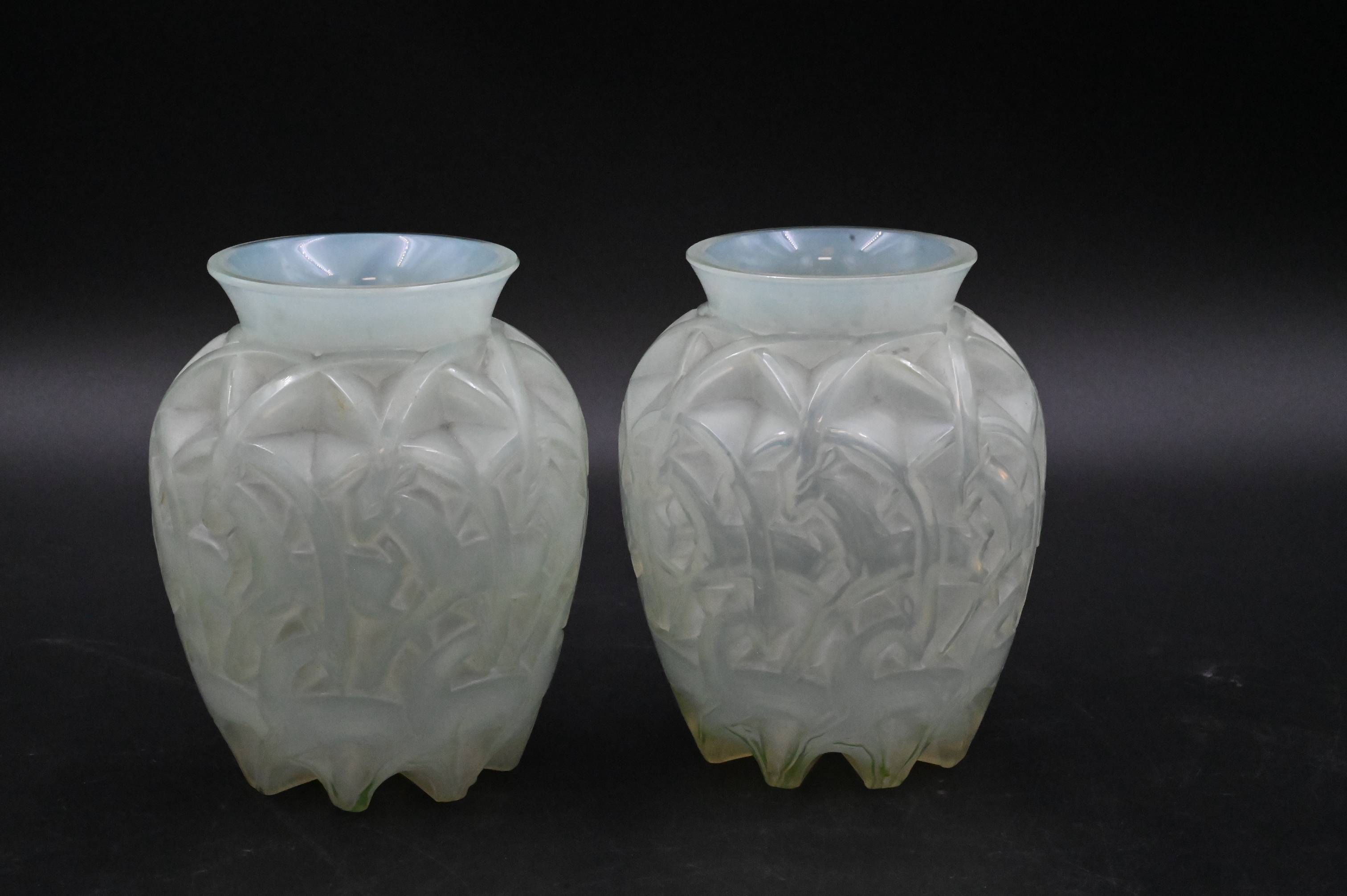 Lot 452: Pair of Rene Lalique “Chamois” Opalescent Glass Vases