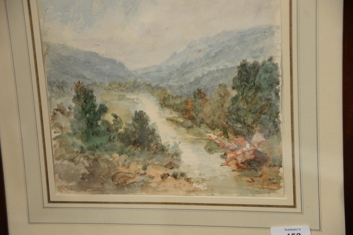 Lot 452: Two late 19th century landscapes, watercolors on paper, Row Boats on a River, unsigned, sight size 11 1/4 x 9 1/2 Man in a Rowboa…