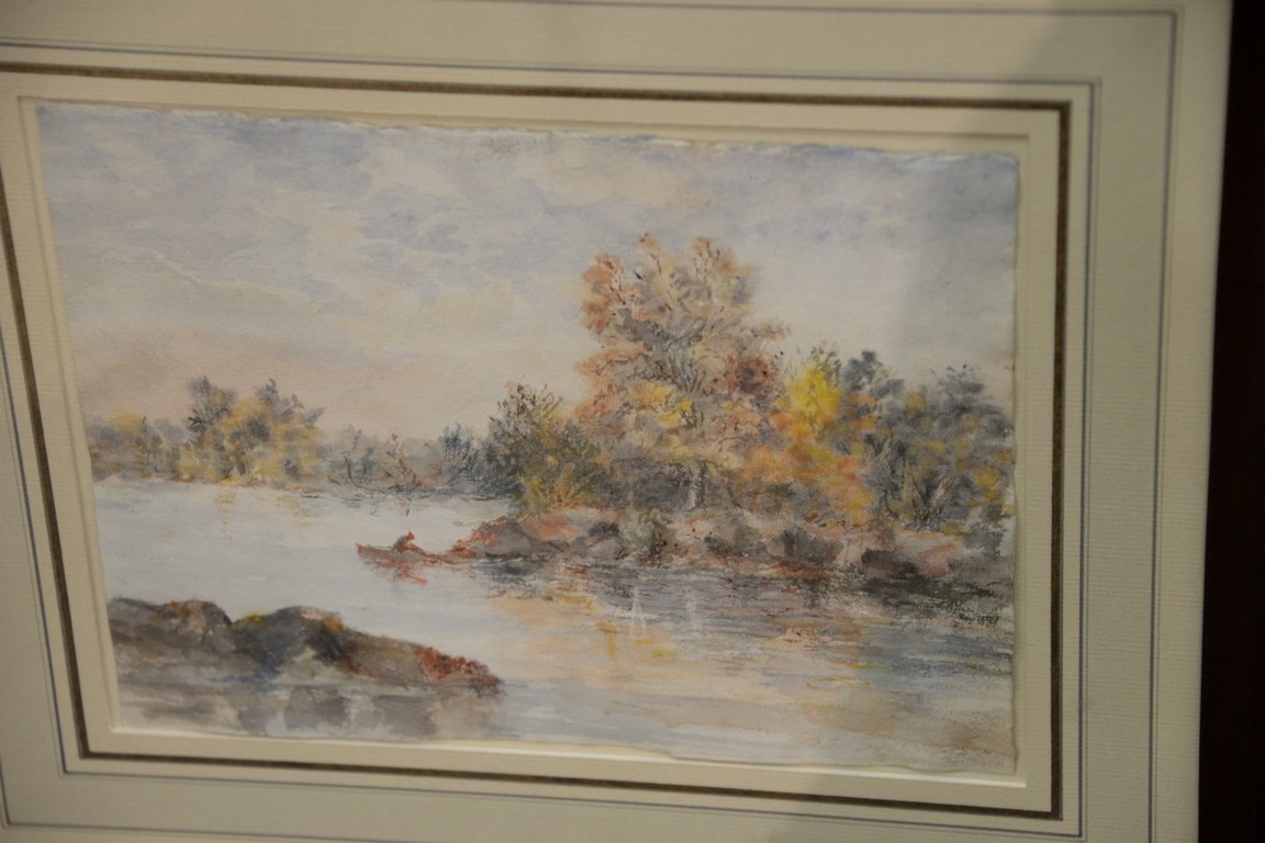 Two late 19th century landscapes, watercolors on paper, Row Boats on a River, unsigned, sight size 11 1/4 x 9 1/2 Man in a Rowboat in Autumn, unsigned, sight size 7 1/2 x 9 1/2 Provenance: Property from Credit Suisse’s Americana Collection