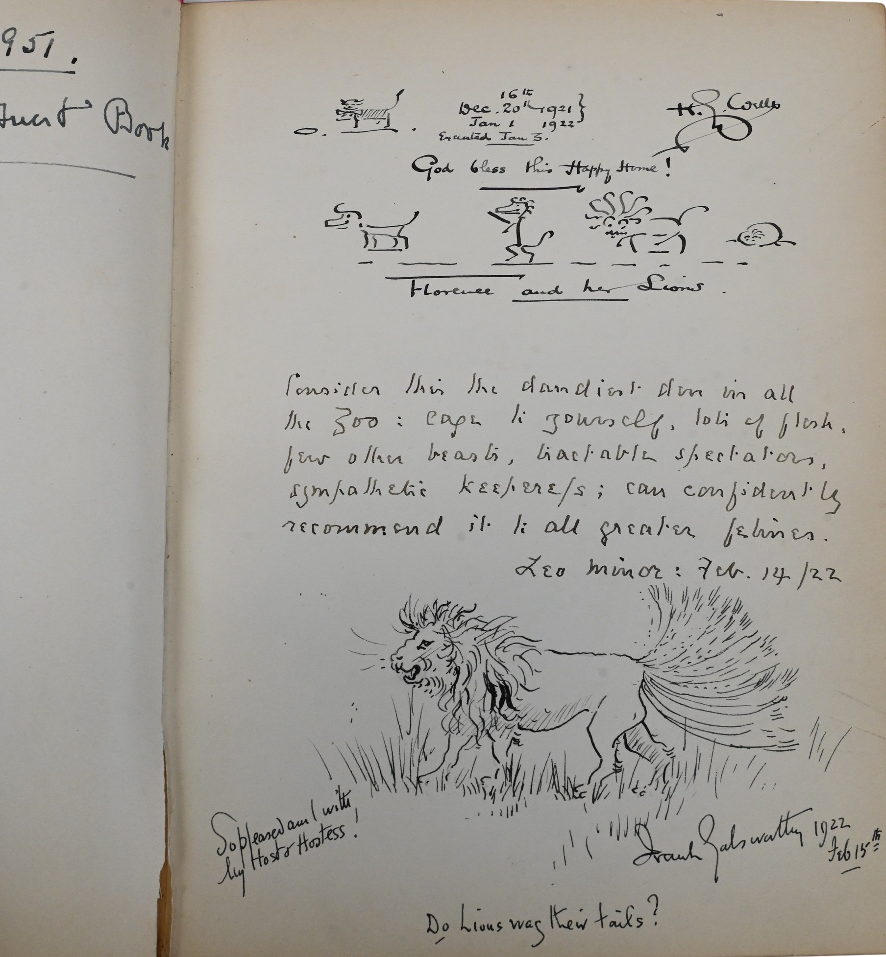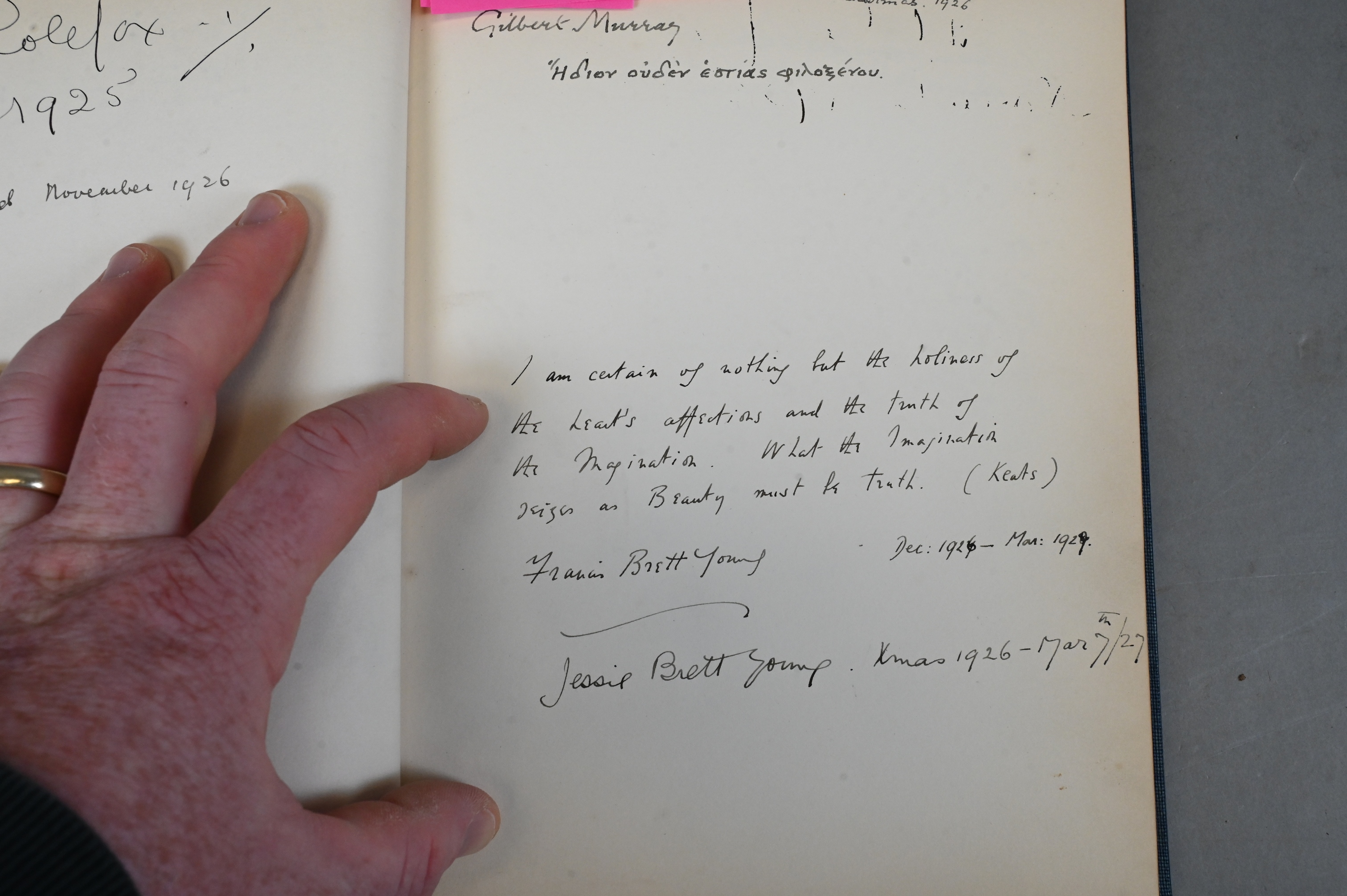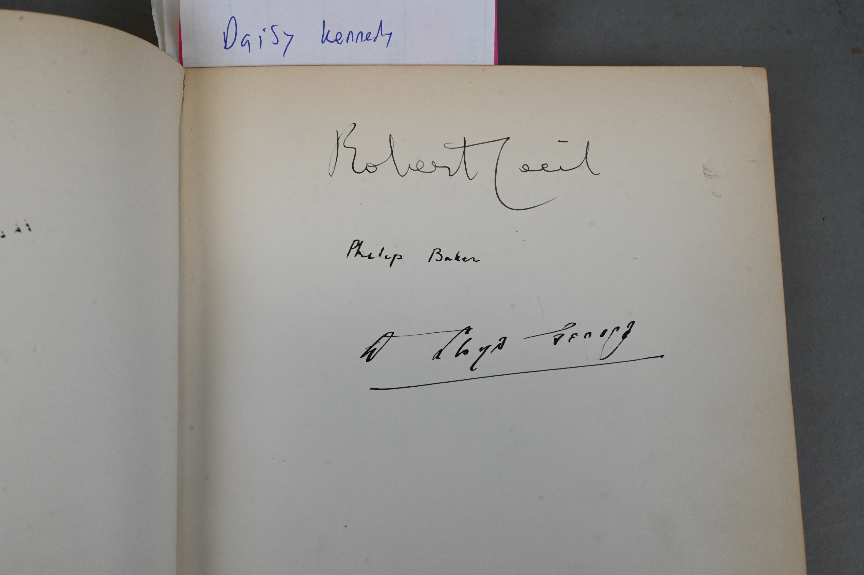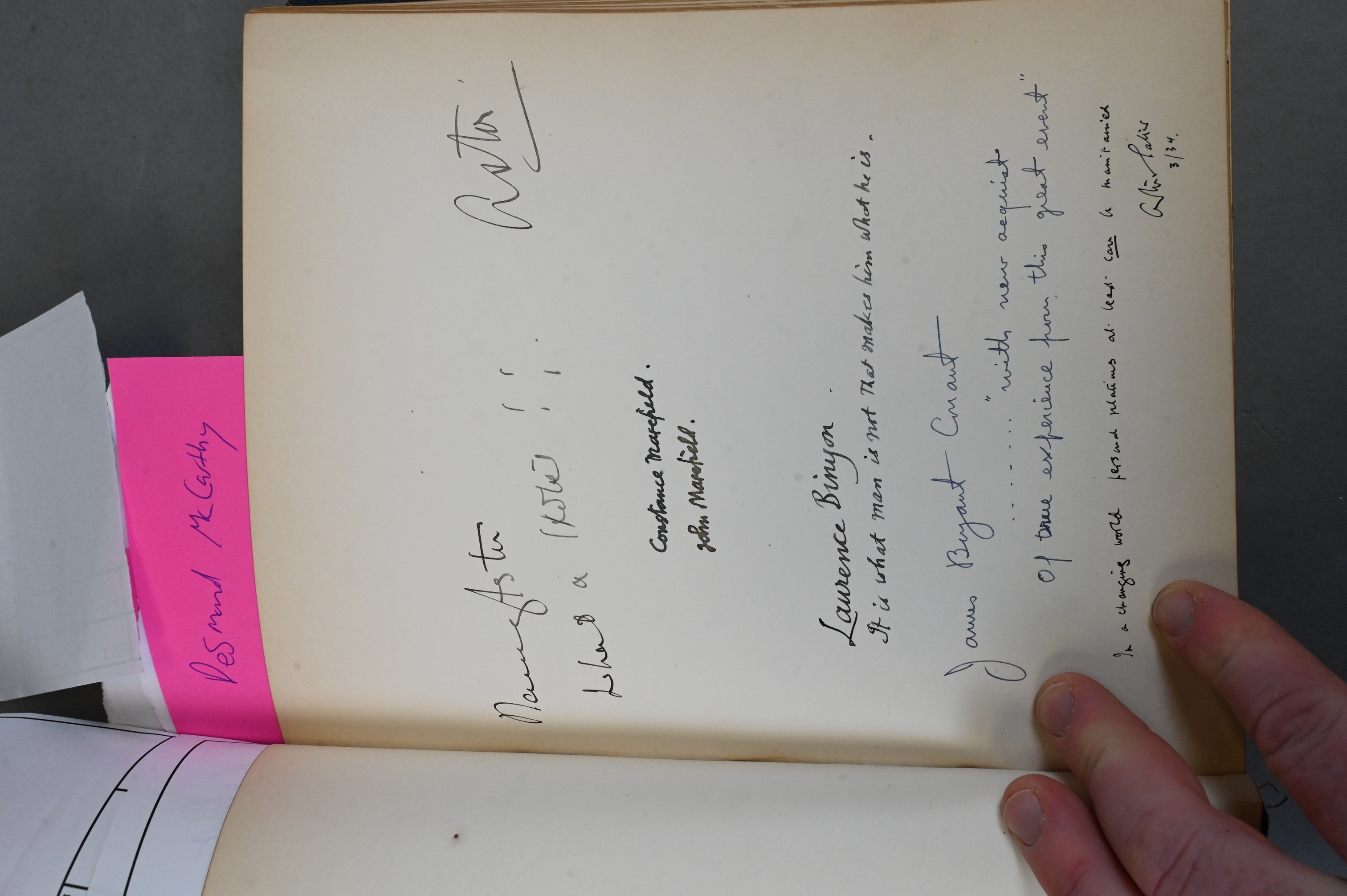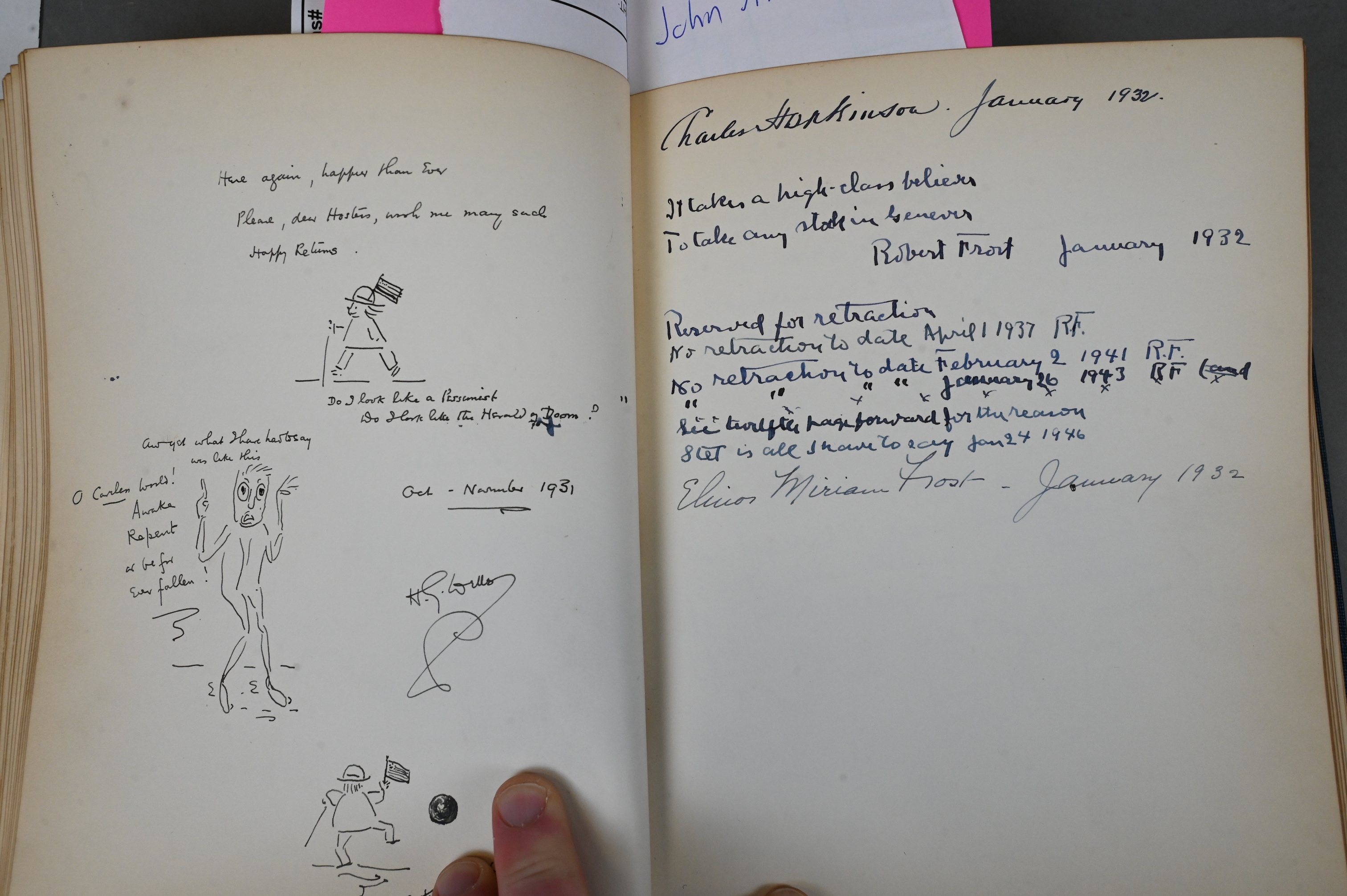 to include signatures of poet John Masefield, Author H.G. Wells poet / writer Robert Frost, John and Daisy Kennedy Drinkwater, and many illegible signed names