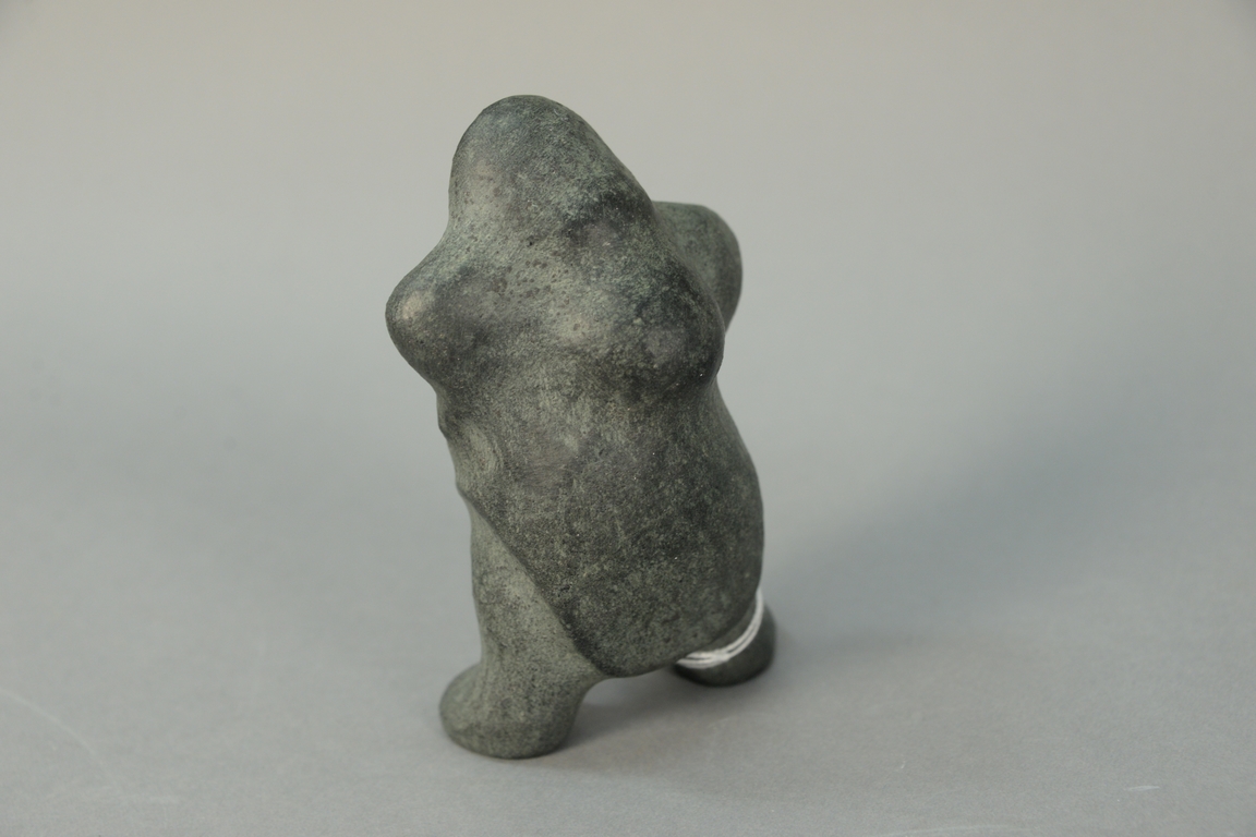 Inuit Eskimo carving Dominic Kingilik b. 1/1/39 Baker Lake grey basalt Standing Inuk. Provenance: Gallerie Elca London Montreal, Canada. ht. 5in.