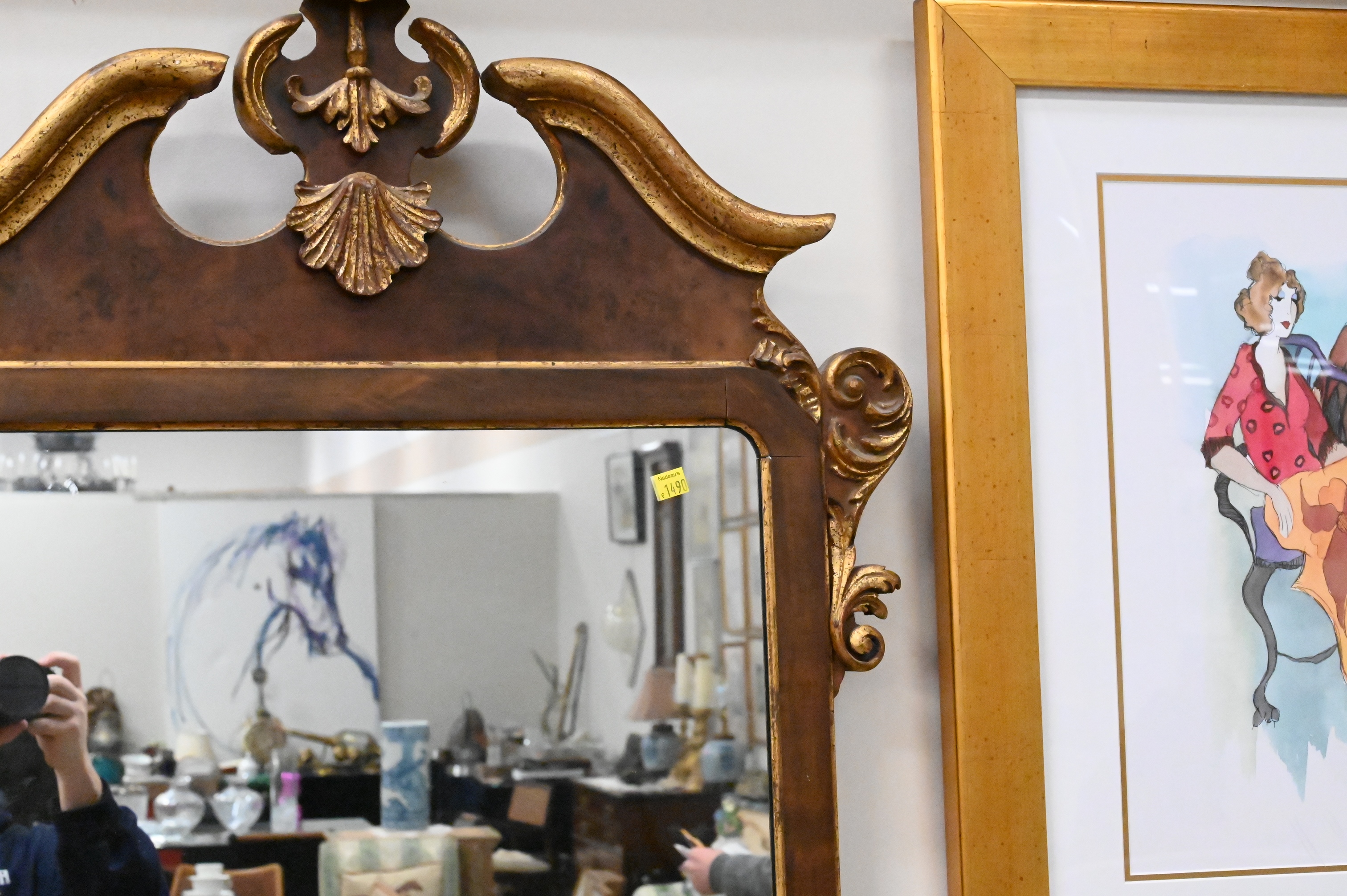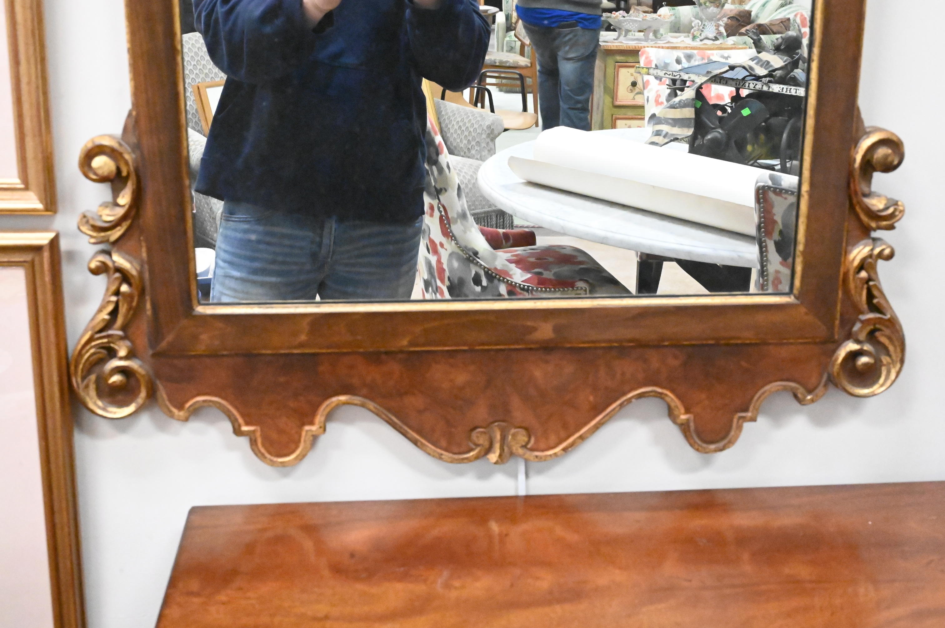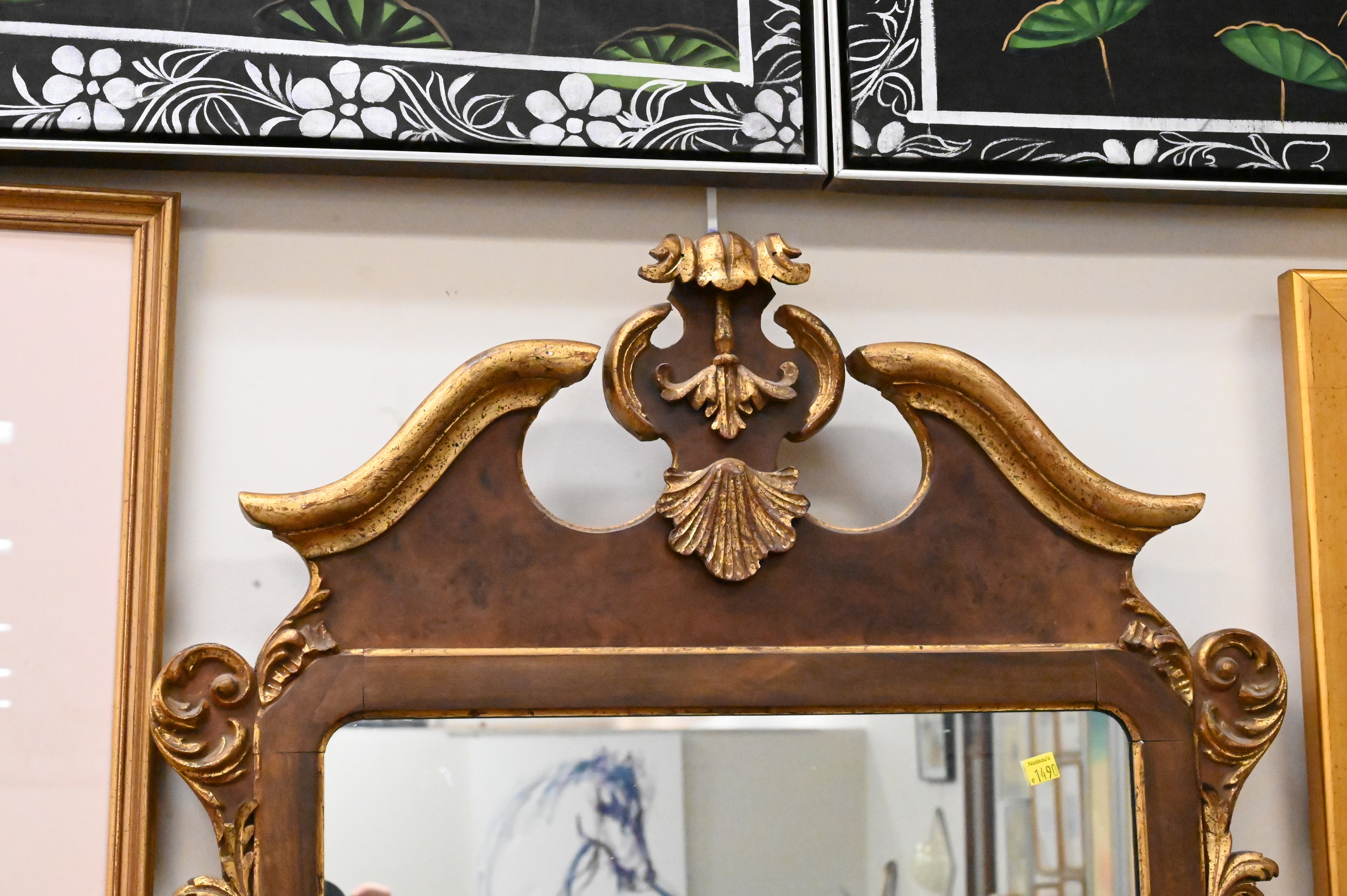 Labarge Continental Mahogany Mirror, having gilt broken arch top pediment, 49″ x 28 1/2″.