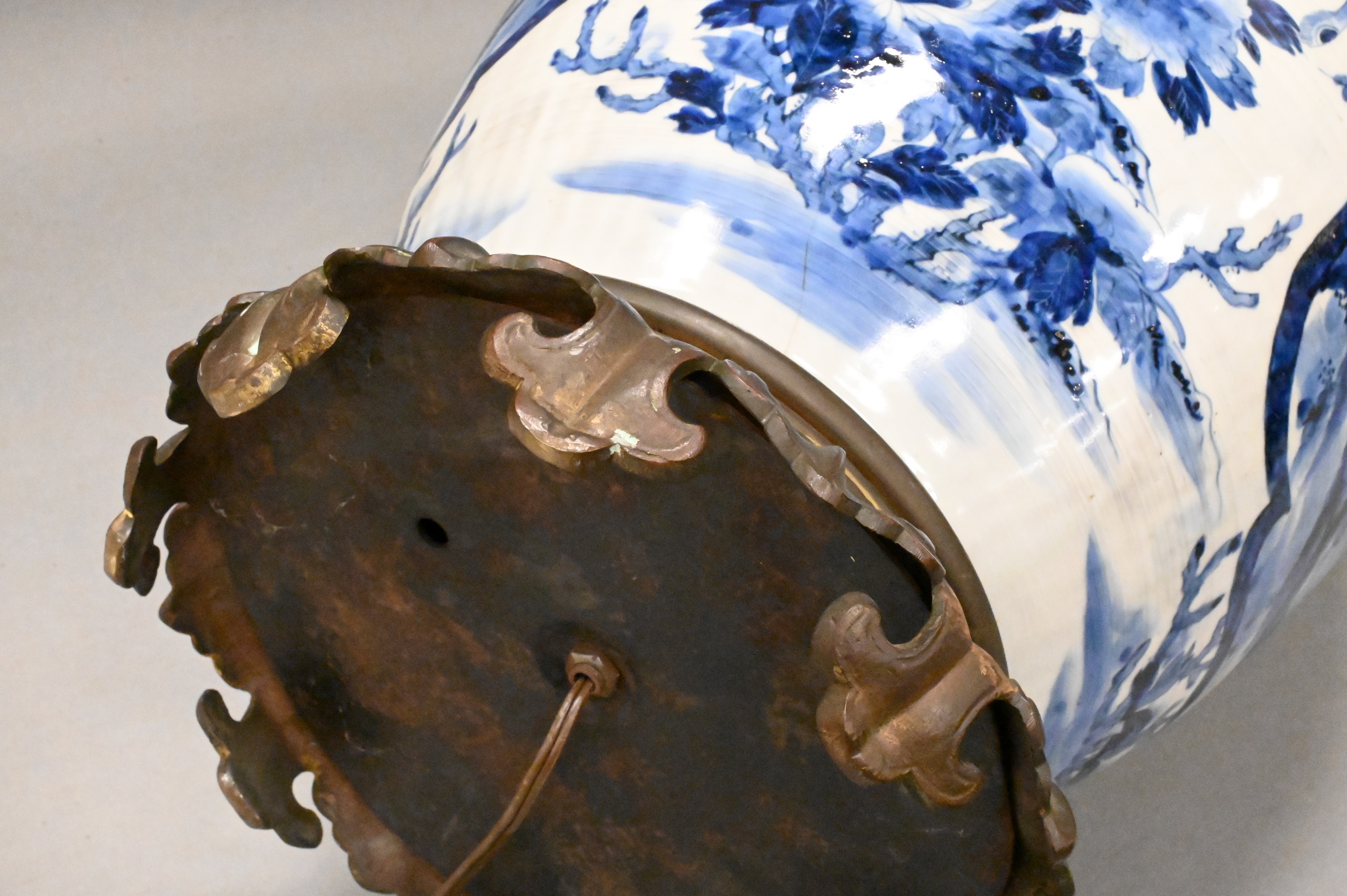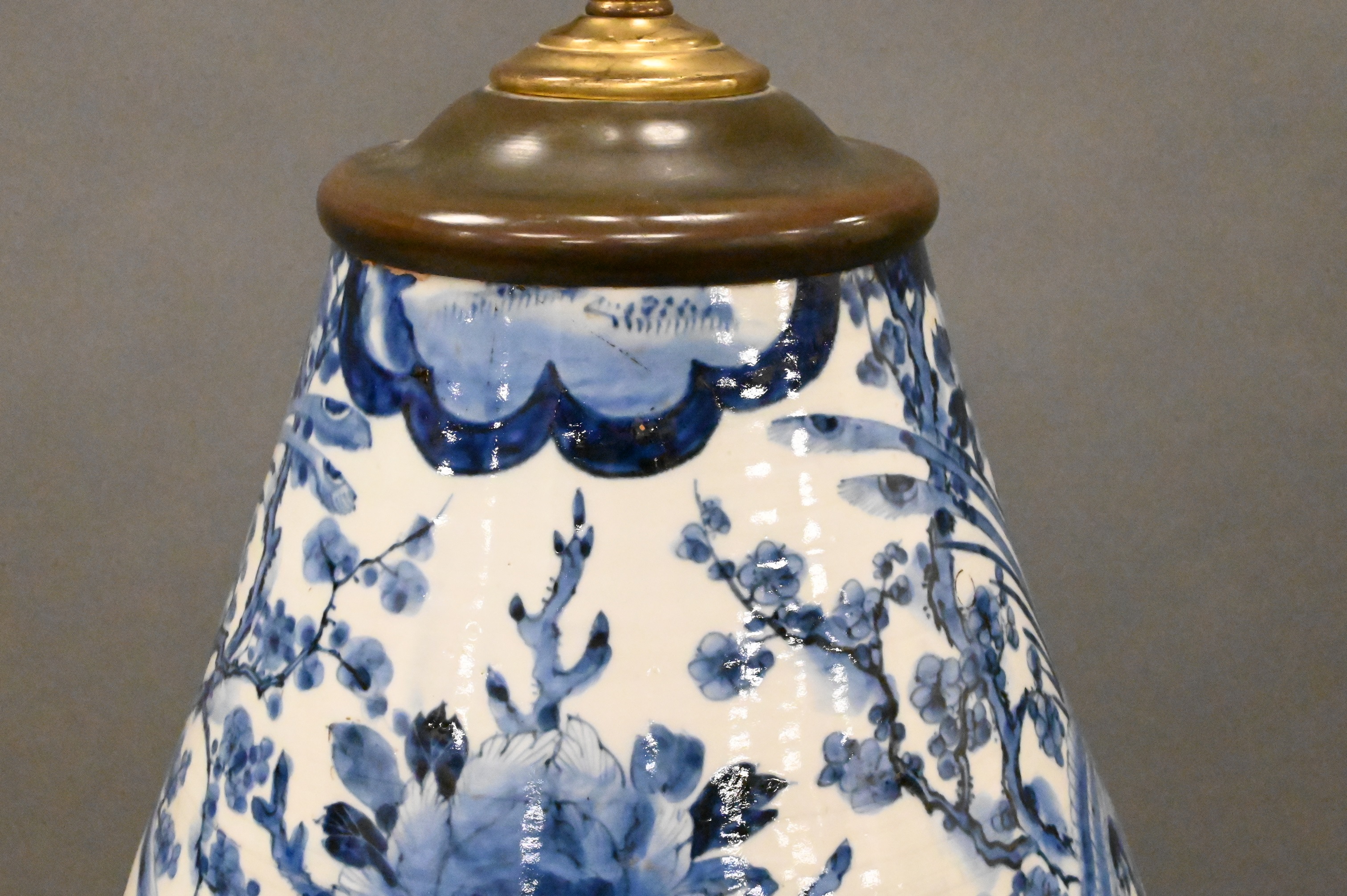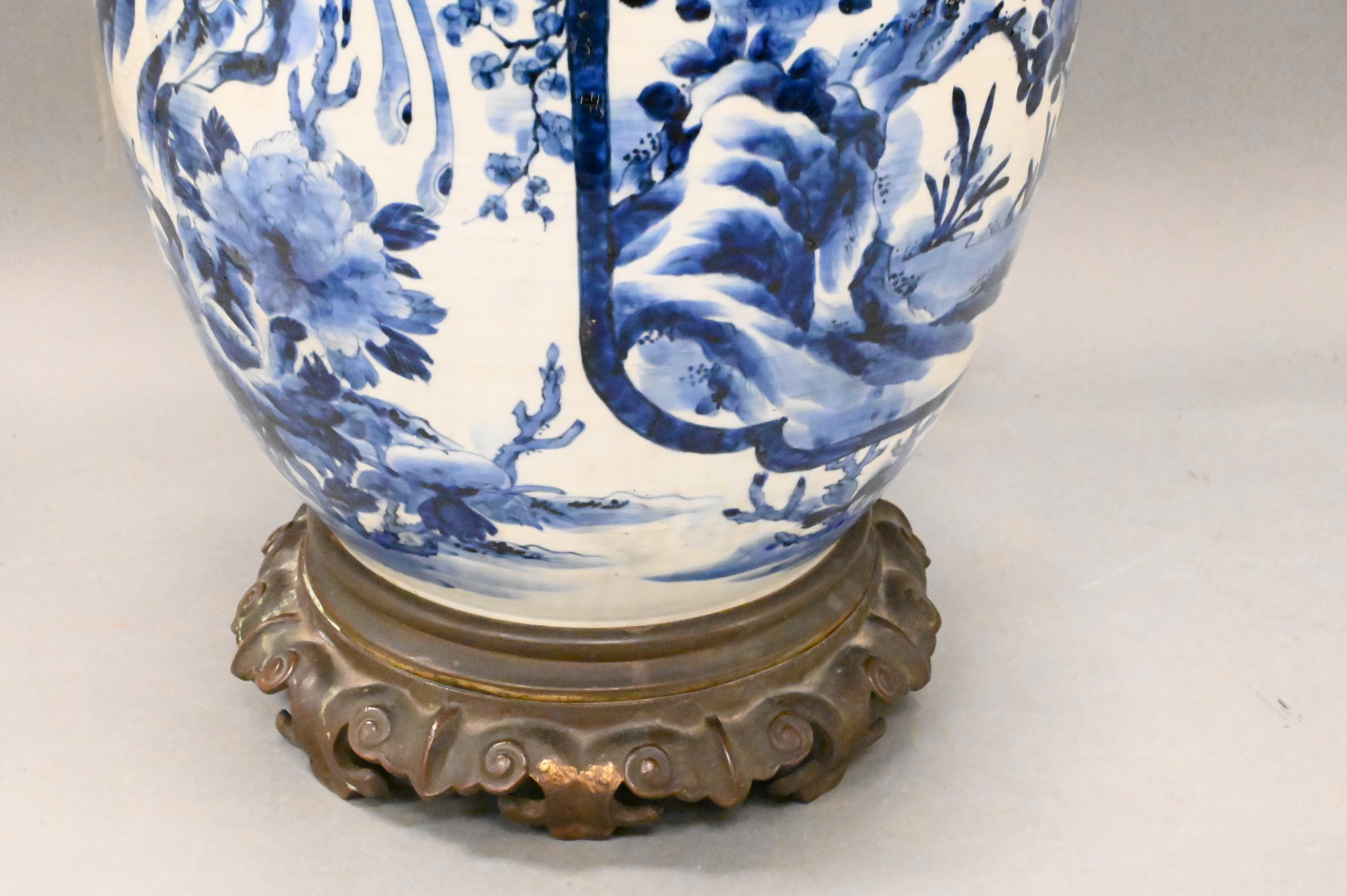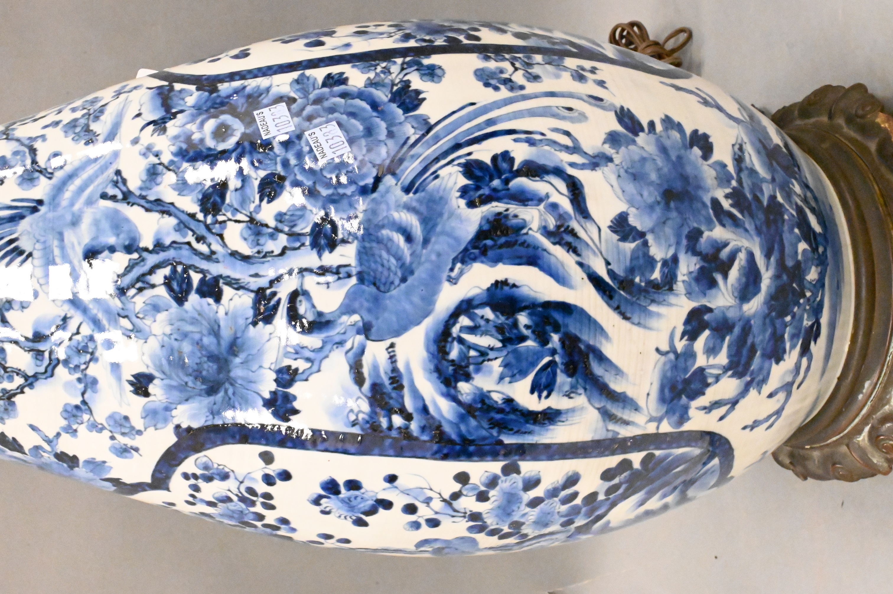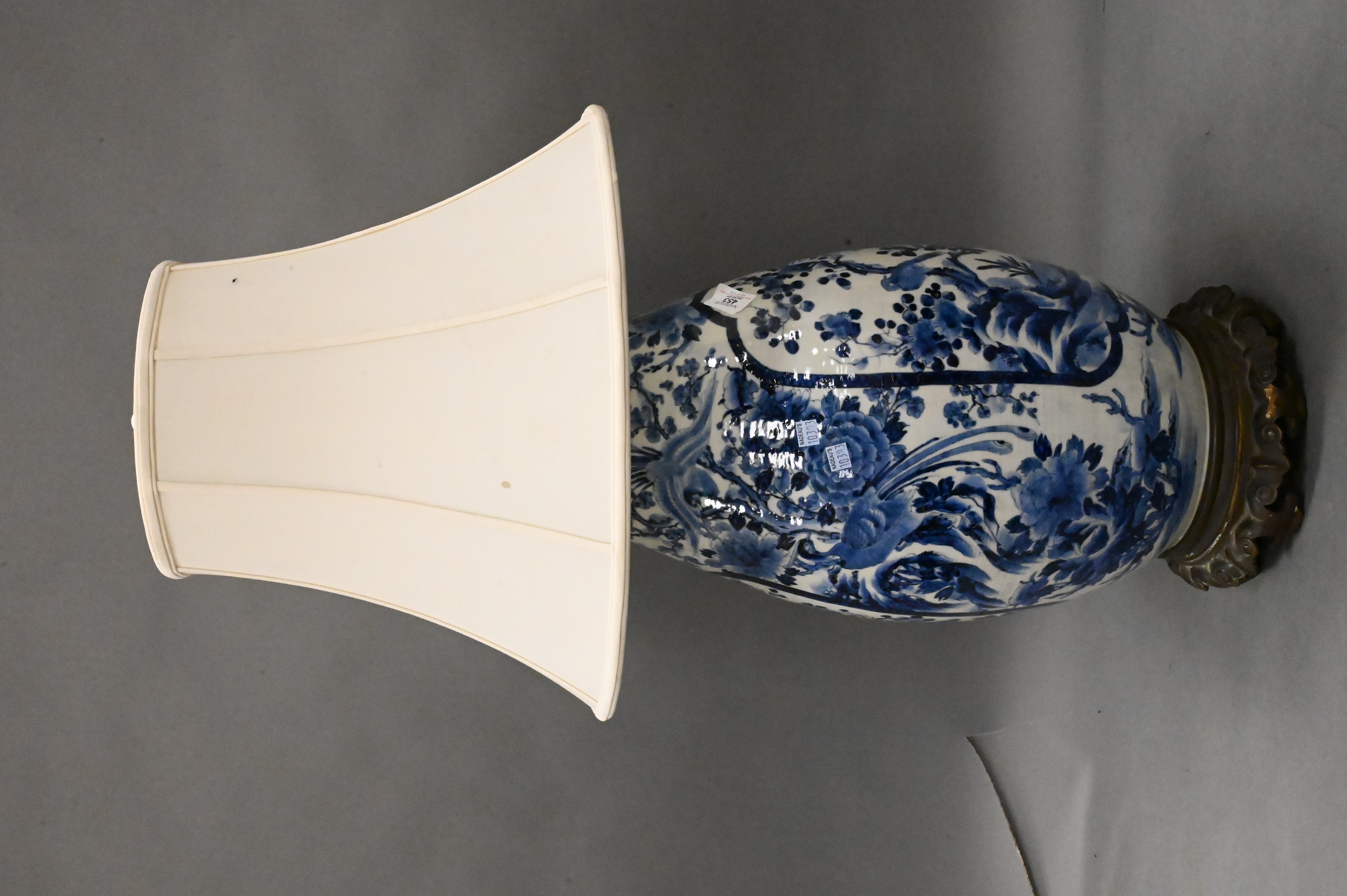 Lot 453: Large Blue and White Japanese Vase-Lamp