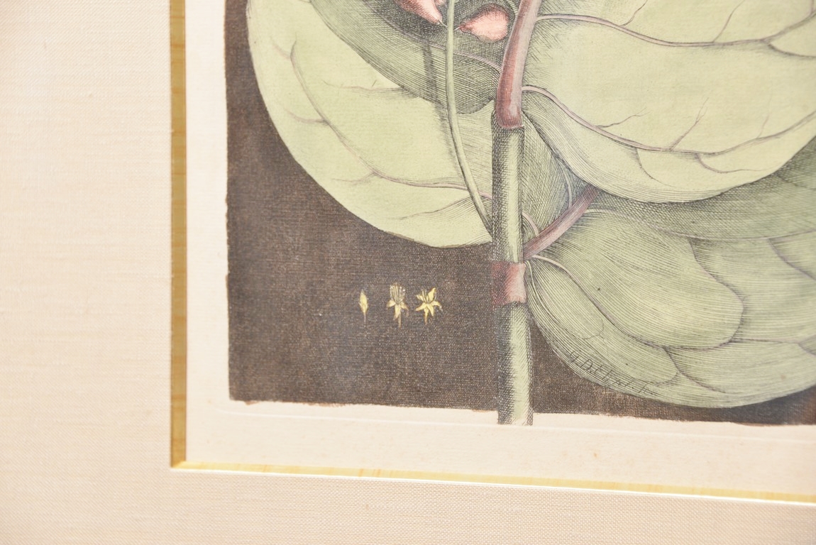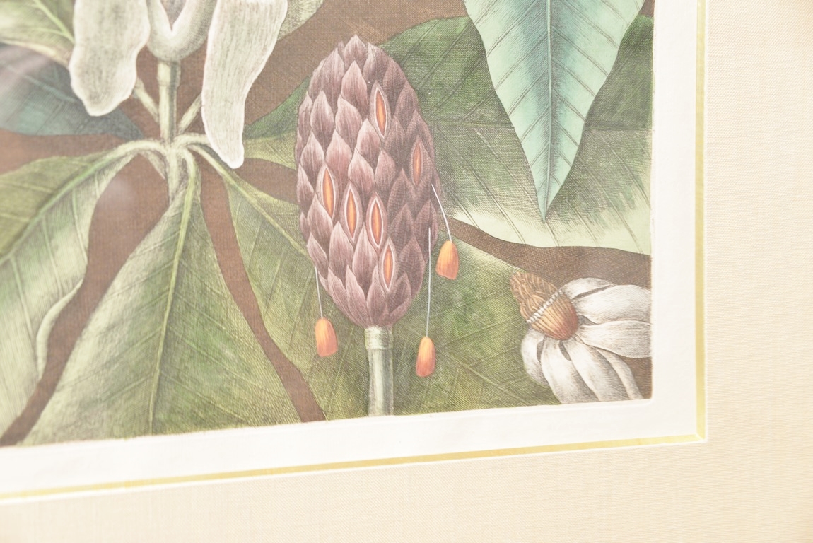 Lot 453: Mark Catesby 1679-1749 pair of hand colored copper plate engravings The Umbrella Tree, Magnolia, Ampliffimo Flore Albo P…