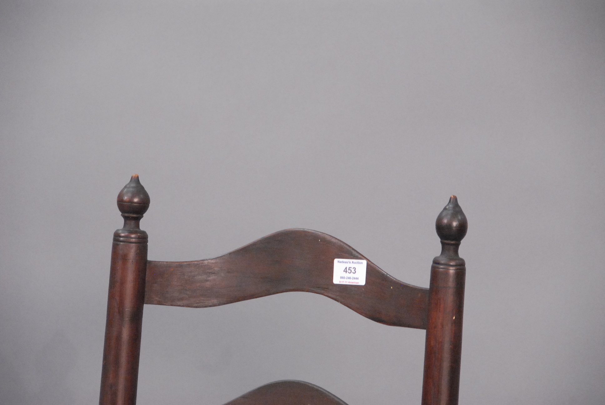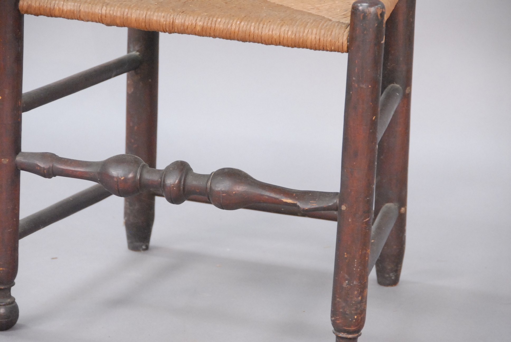 Primitive side chair with arched latter back and bold turned stretchers on ball turned feet, probably PA.