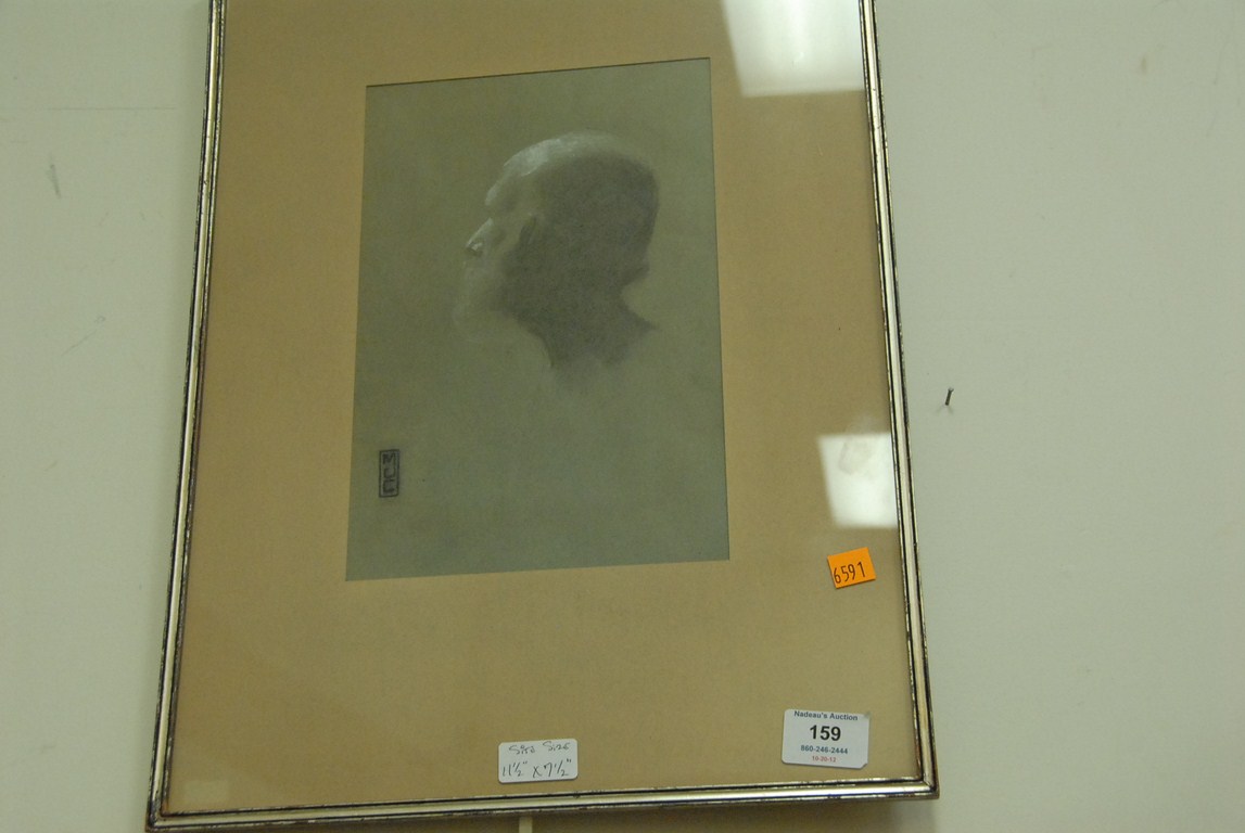Profile bust of man signed on reverse, monogrammed on front Mary Coulter.