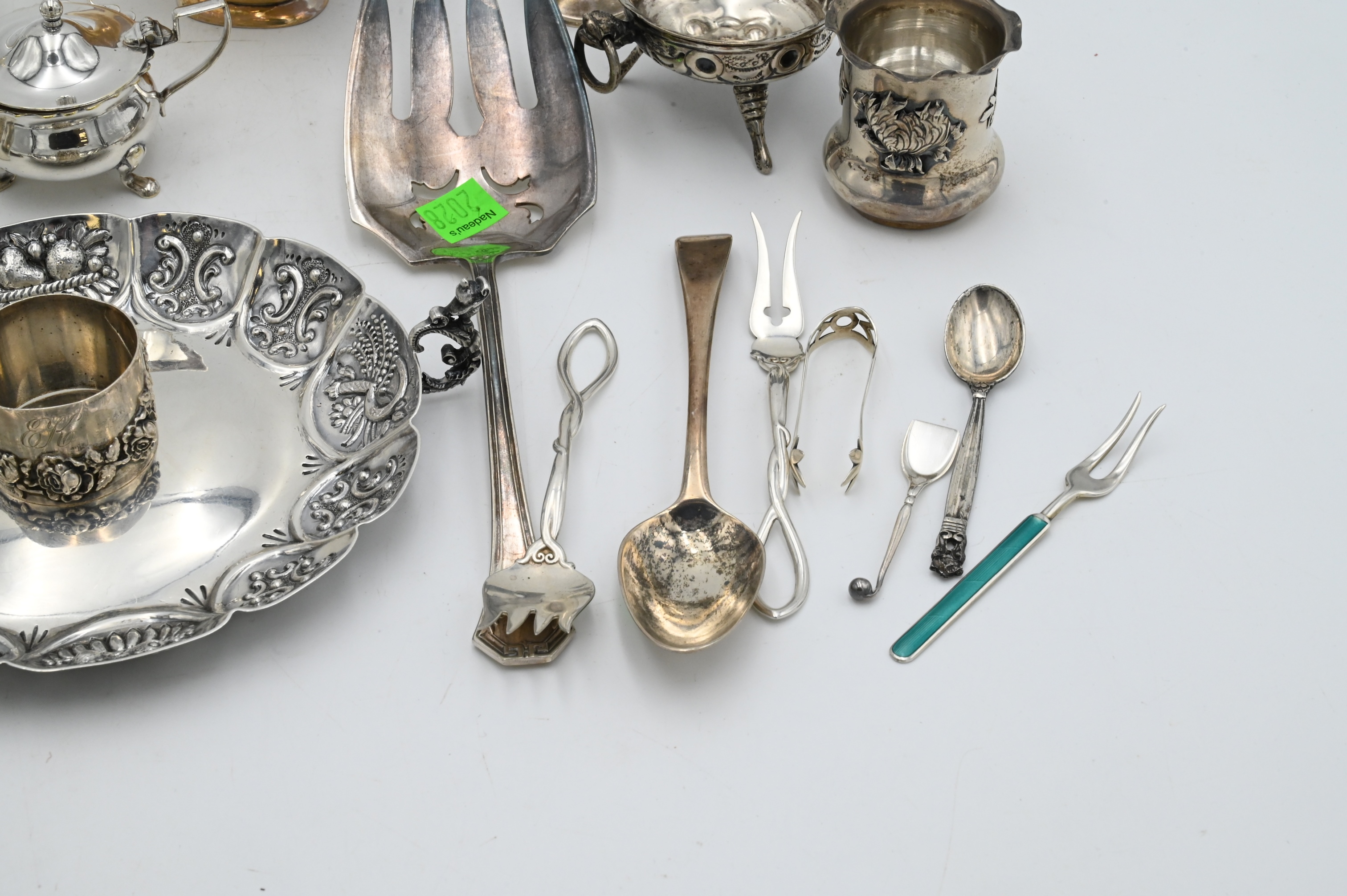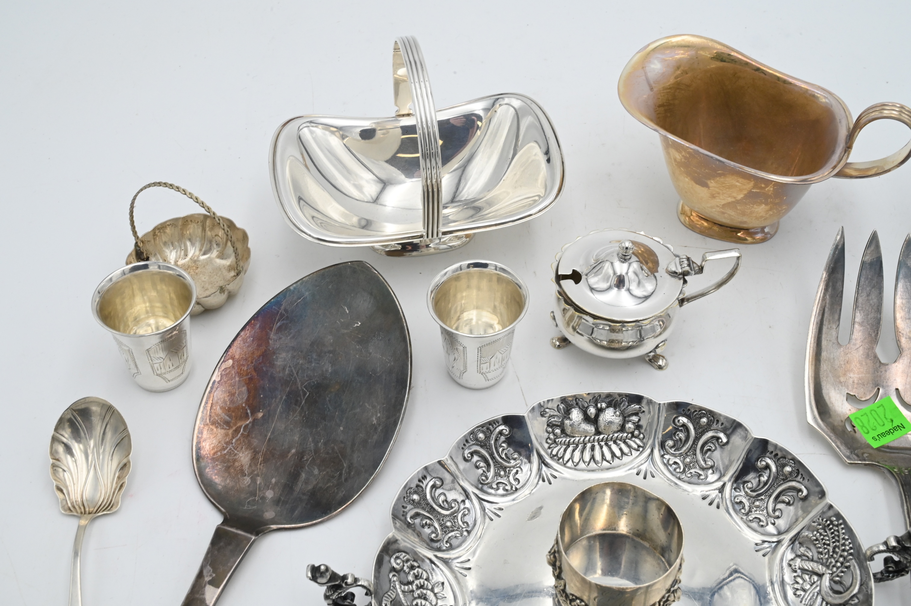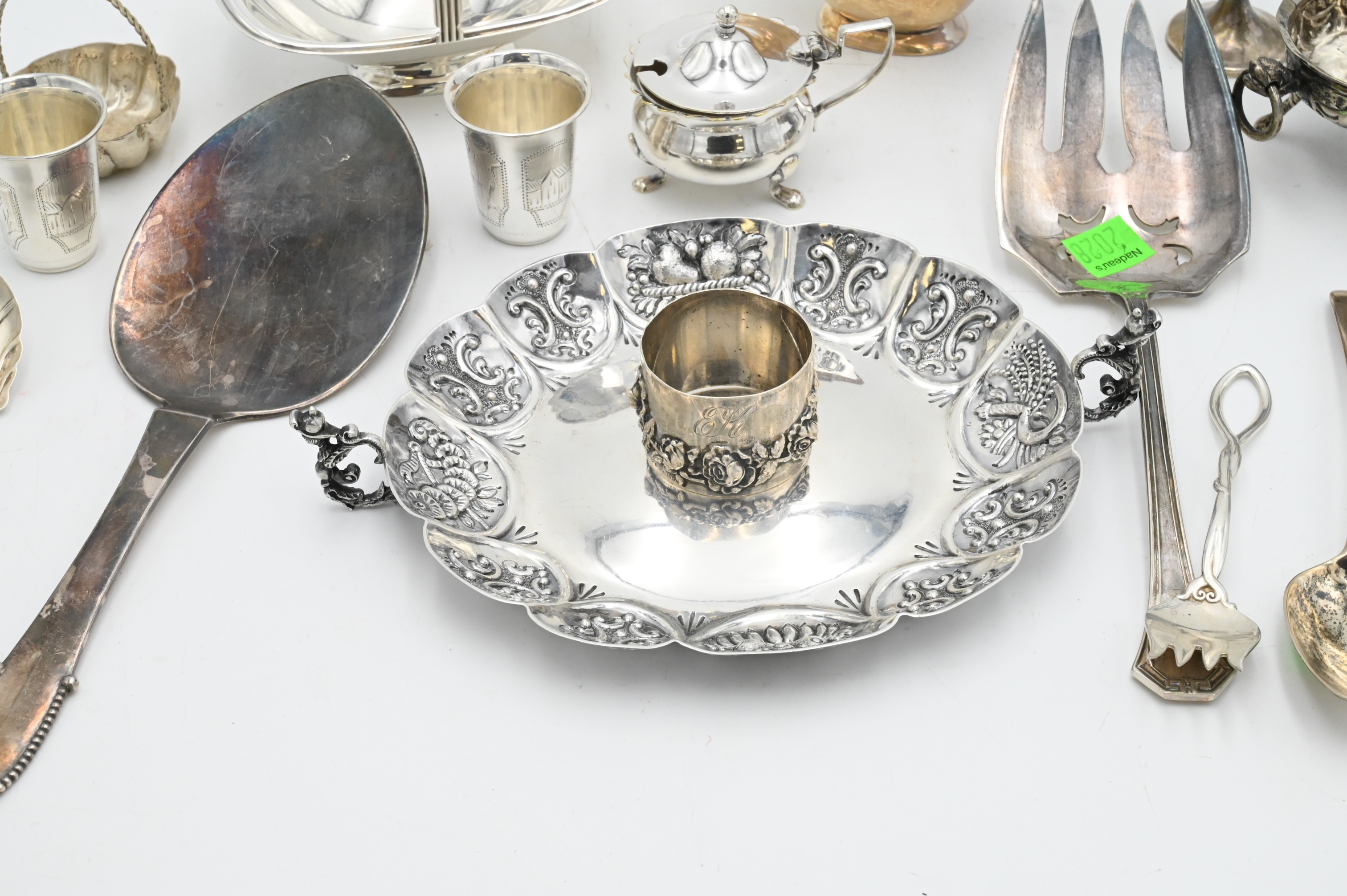 Tray Lot of Sterling Silver, with Two Russian Silver Cups, English Spoon, “Stephen Adams 1802”, Danish server etc, Provenance: Julius H Jacobson II a Fifth Avenue Estate.