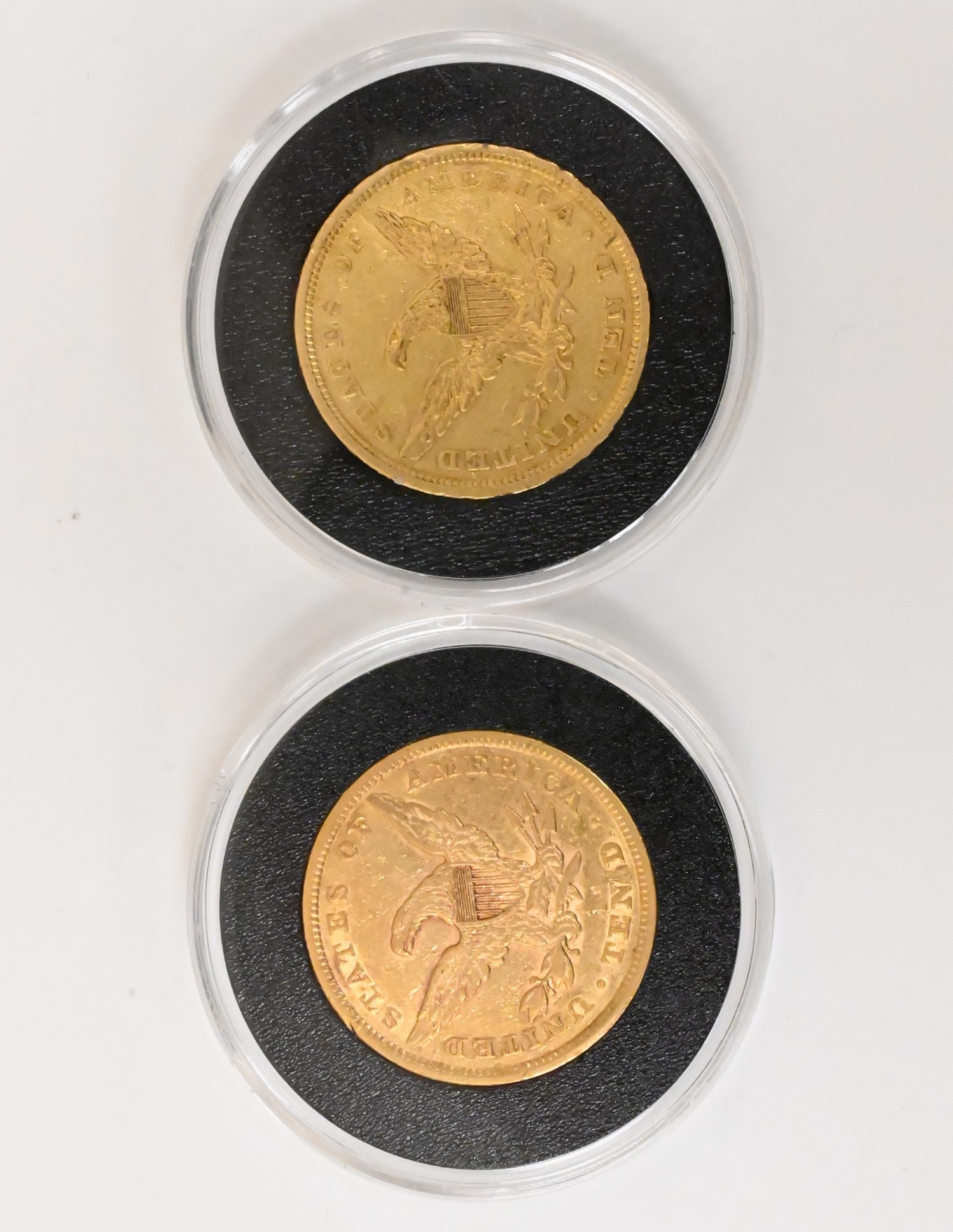 Two Ten Dollar Gold Coins, to include 1856 ten dollar gold Liberty XF, along with 1842 ten dollar gold Liberty small date VF