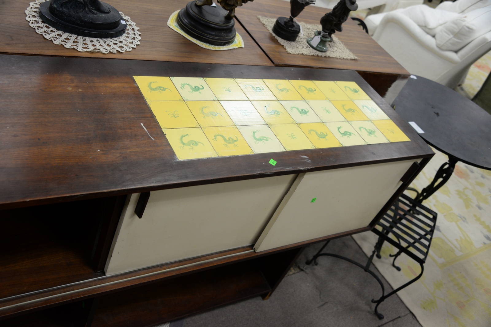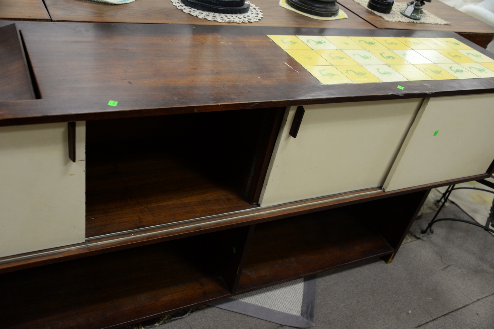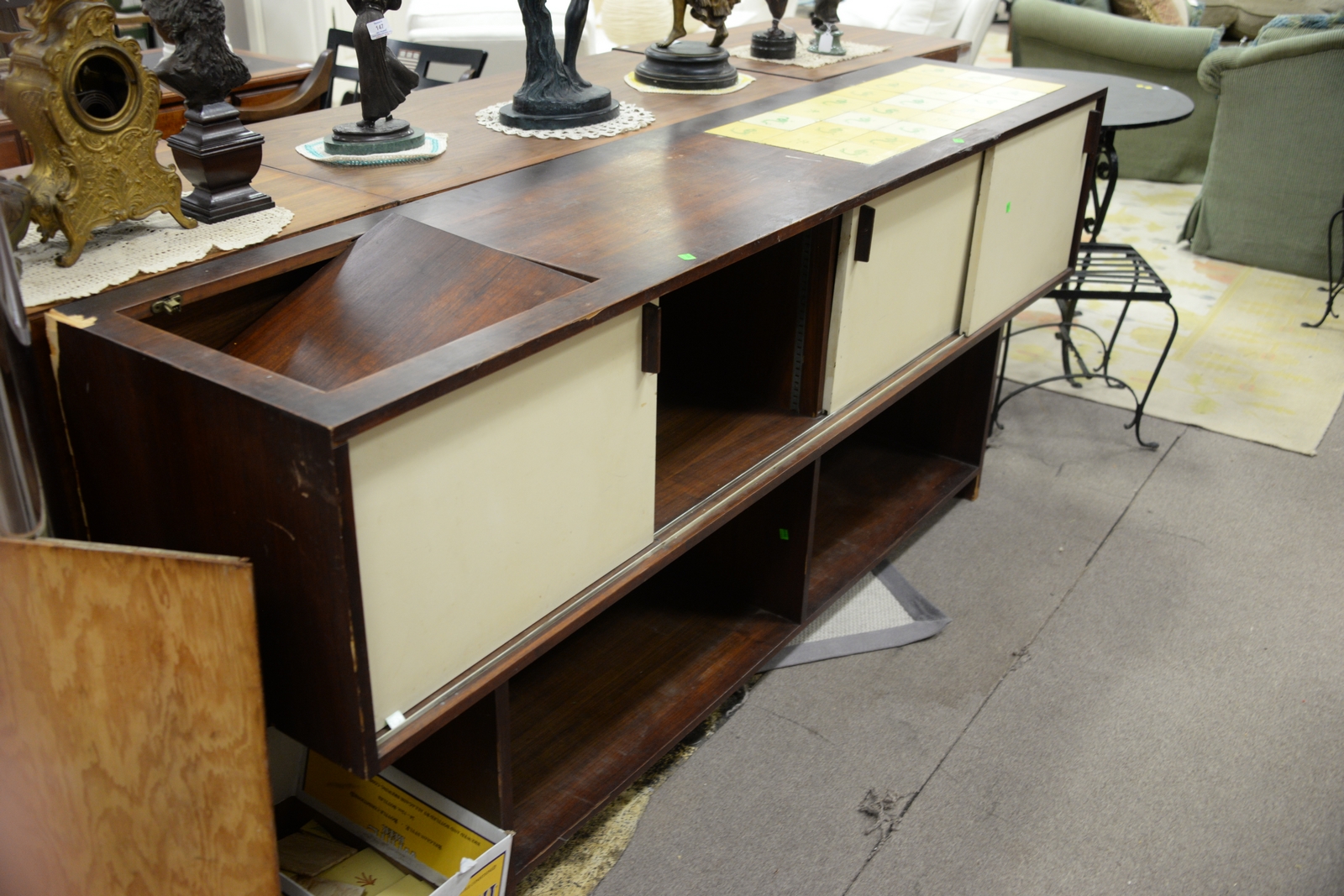Four piece lot to include three Danish modern cabinets, one with tambour doors ht. 36in., wd. 46in. and a credenza as is>