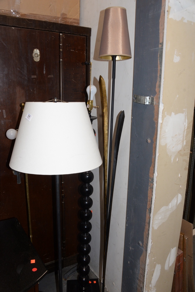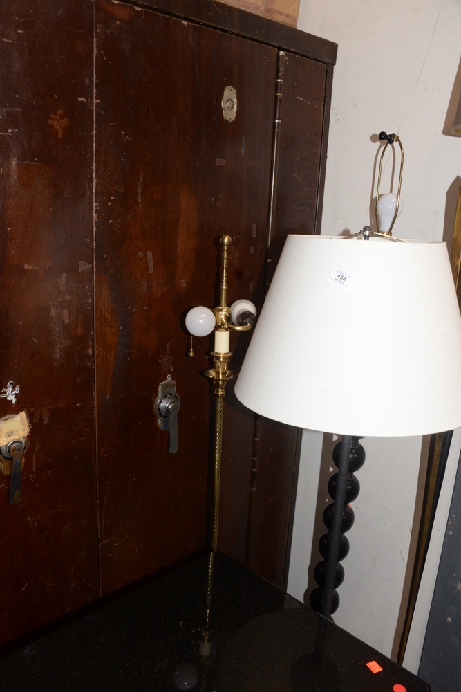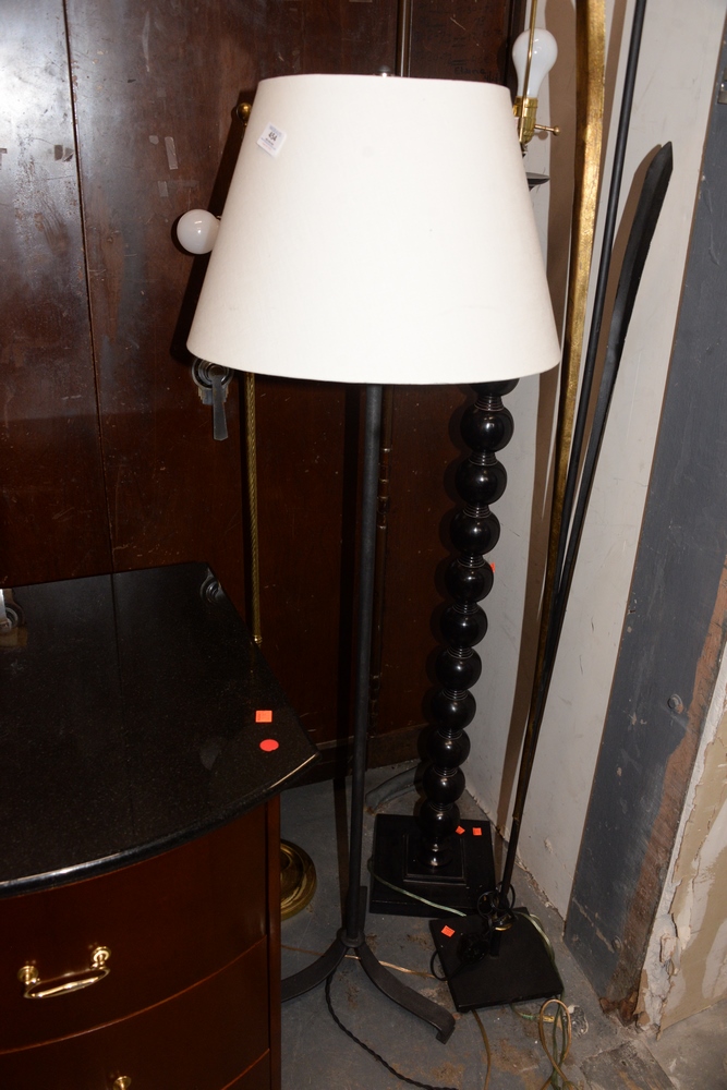 Lot 454: Group of Four Floor Lamps, to include one contemporary reed form, one brass, one having a tri pedestal base, along with one contempo…
