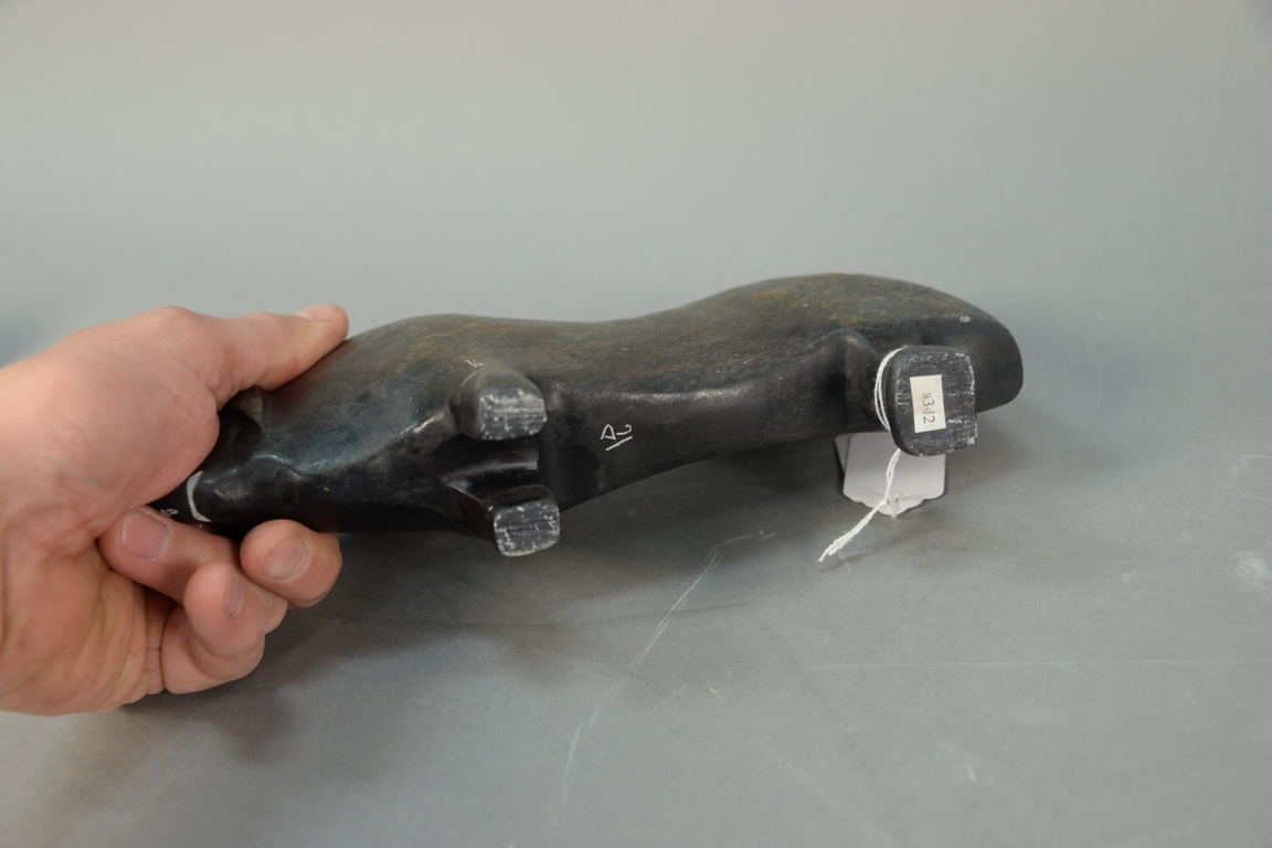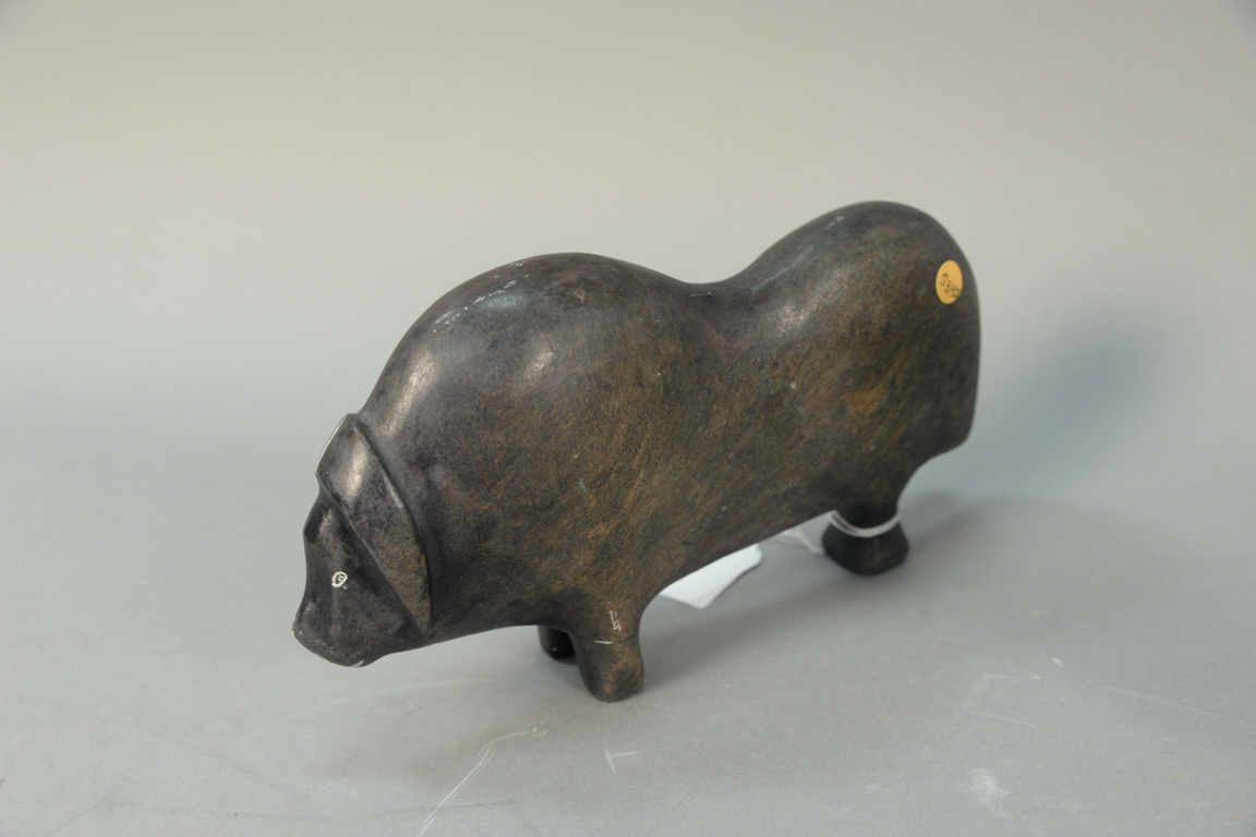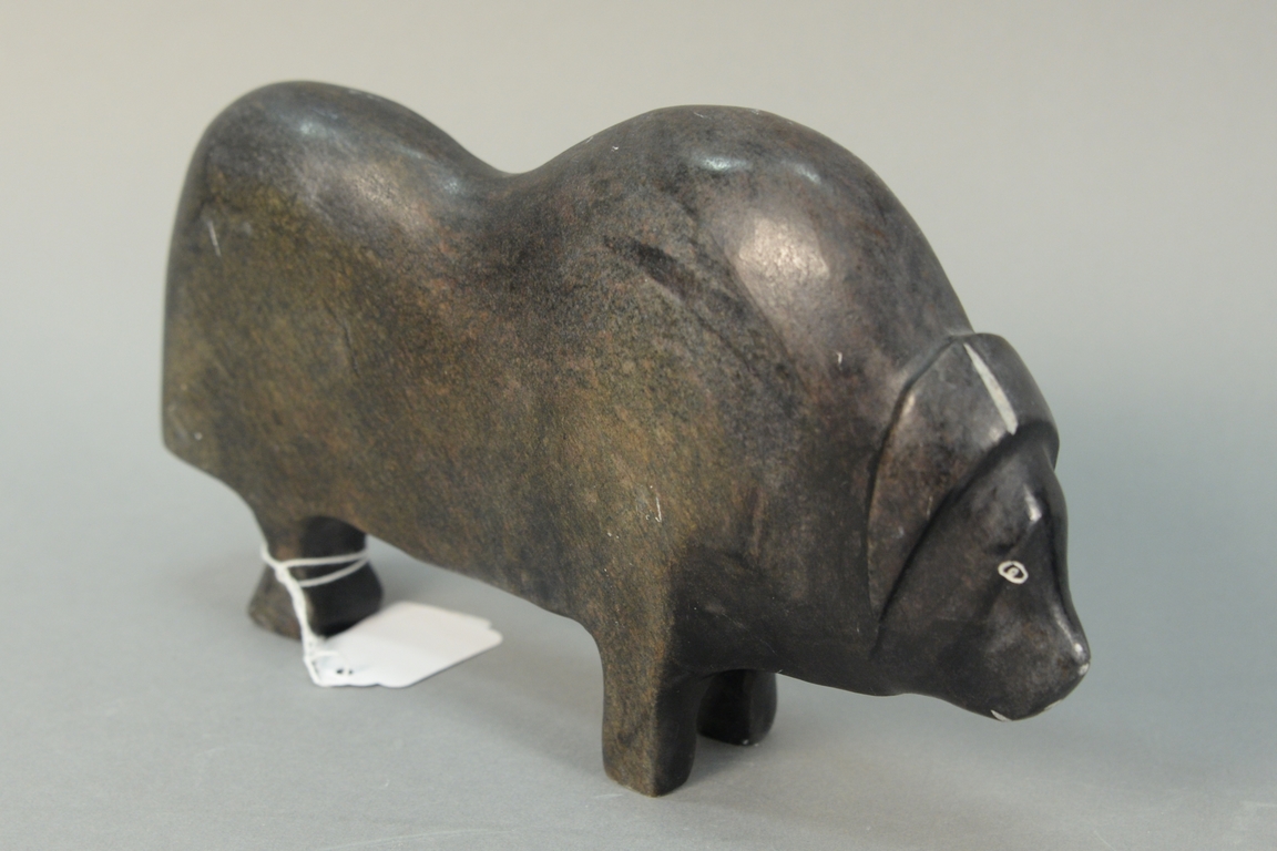 Lot 454: Inuit Eskimo carving George Arluk b. 1949 basalt Musk Ox 5 1/4 x 2 x 9. Provenance: Waddington’s