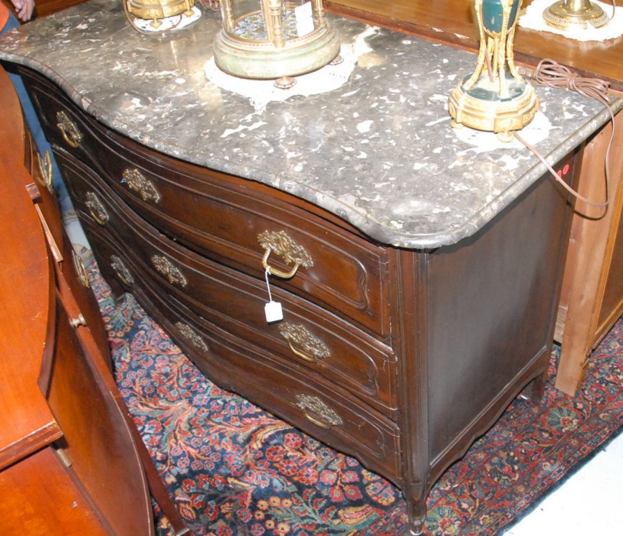Lot 454: Louis XV commode, mahogany with grey marble top