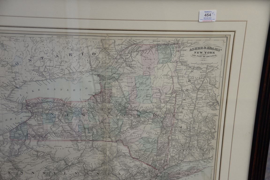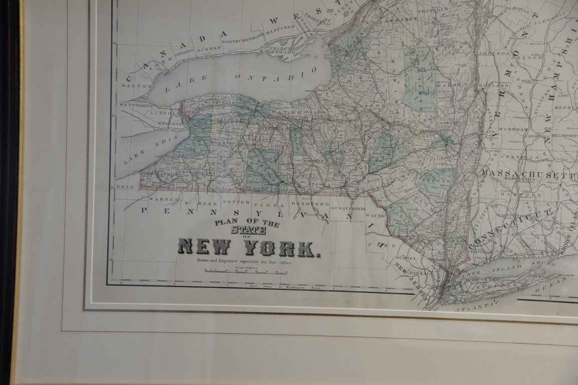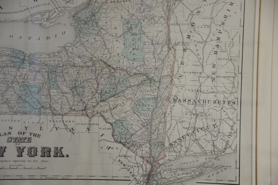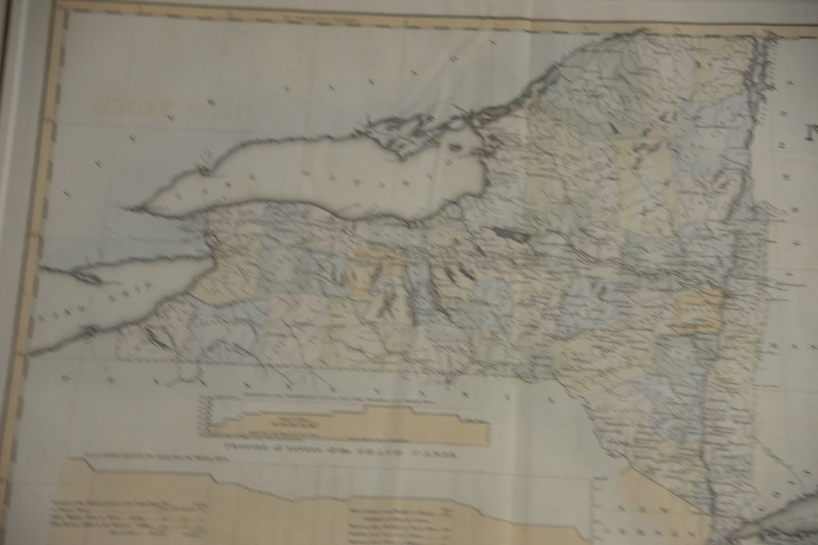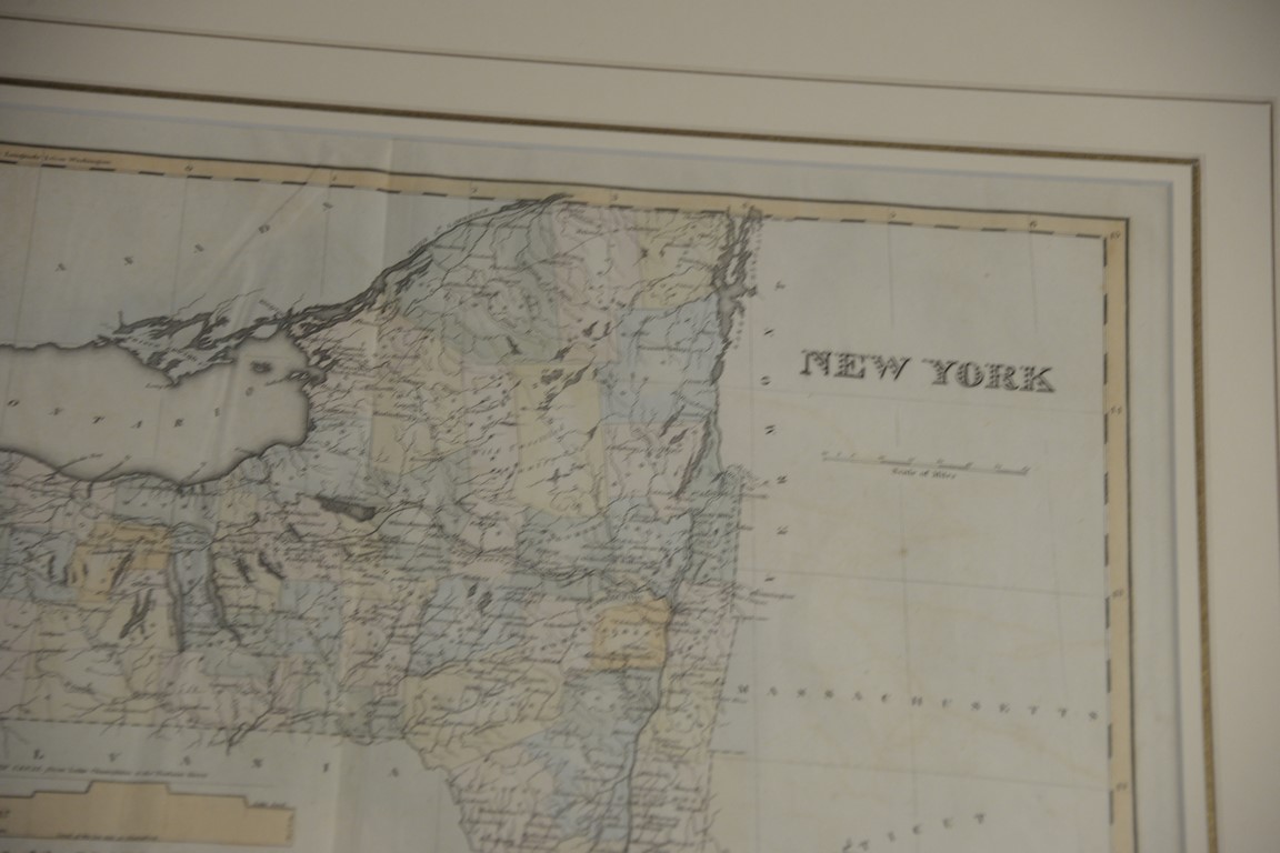 Three handcolored engraved double page maps of New York including one Drawn by Lucas engraved by Welch, a Plan of the State of New York, New York and Vicinity, and Asher & Adam’s New York and Part of Ontario. Provenance: Property from Credit Suisse’s Americana Collection