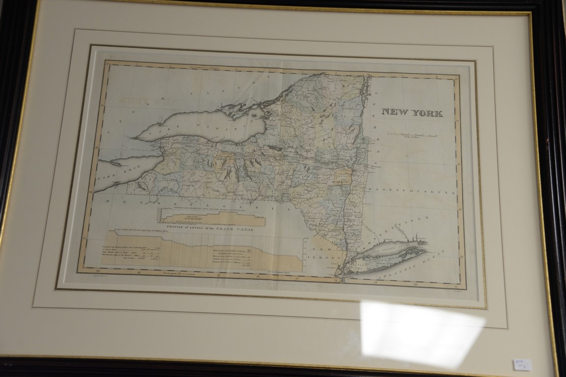 Lot 454: Three handcolored engraved double page maps of New York including one Drawn by Lucas engraved by Welch, a Plan of the State of New Y…