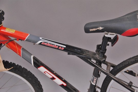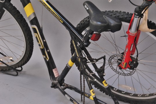 Two GT bike frames, sharks, and parts of a GT Agressor 2.0 and a GT Avalanche 0.0.