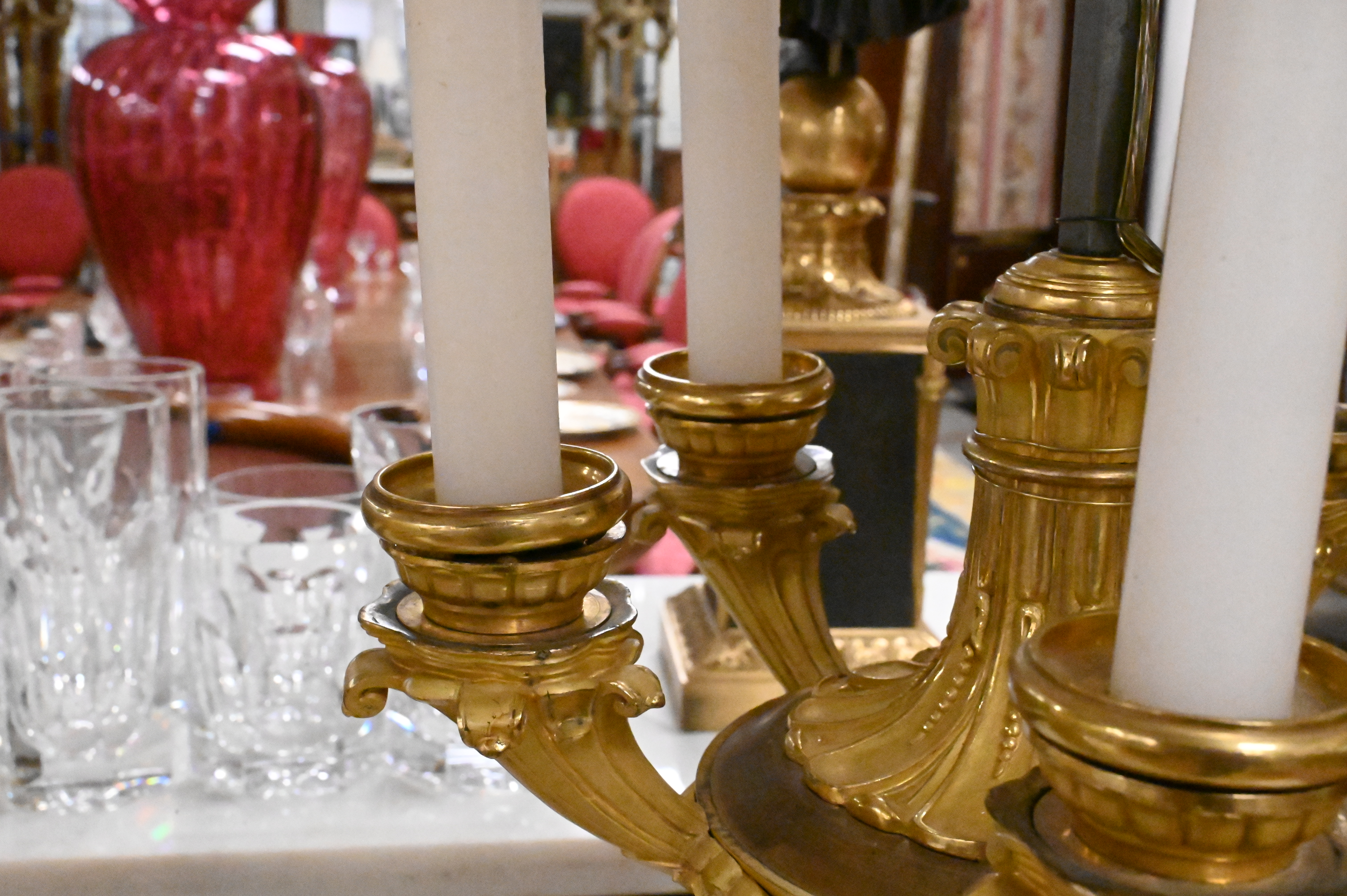 A Pair of Louis-Philippe Ormolu Bronze Five-Light Candelabra Bouillotte lamps