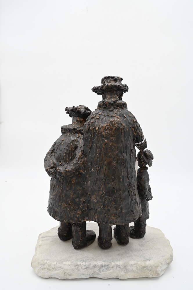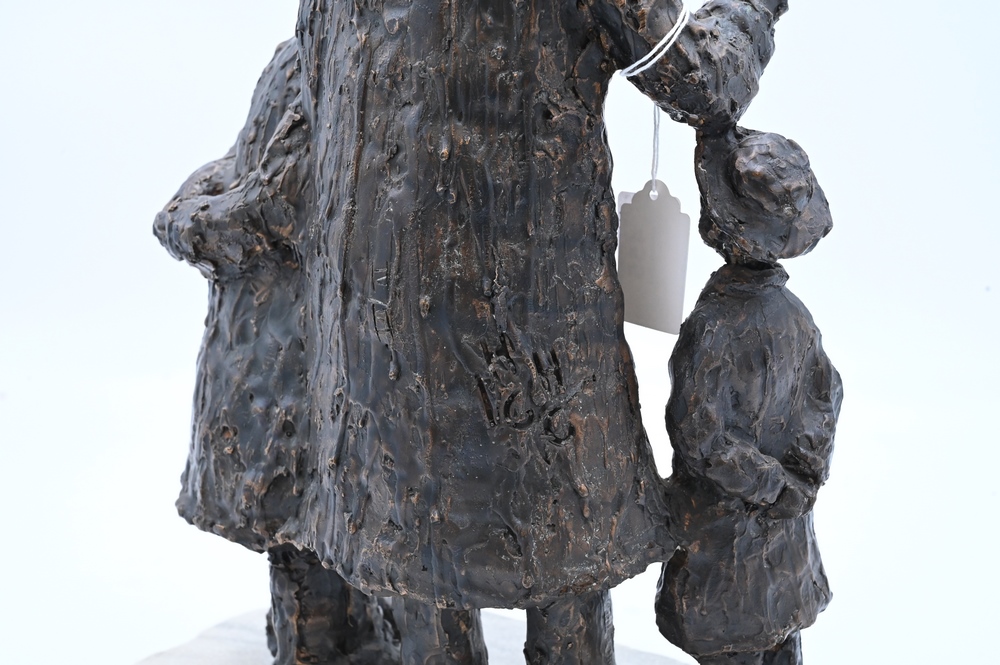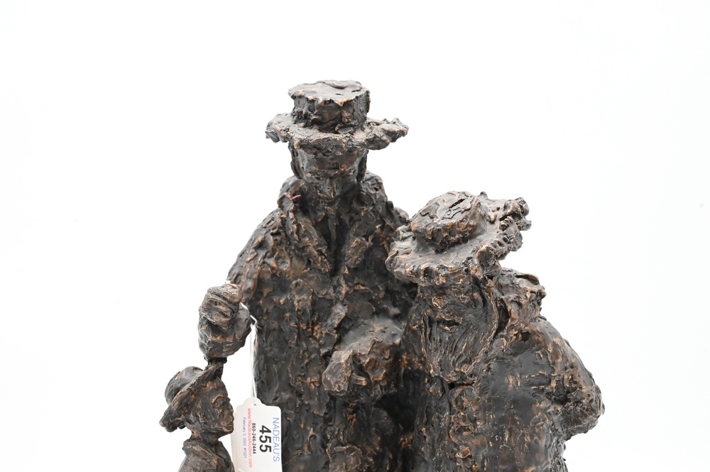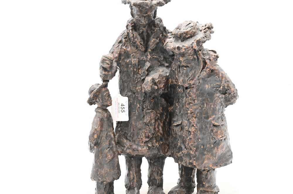 Lot 455: Large Figural Bronze, three generations, grandfather, father and son, on stone base signed illegibly on back, marked IV/VI, height 16 inches.