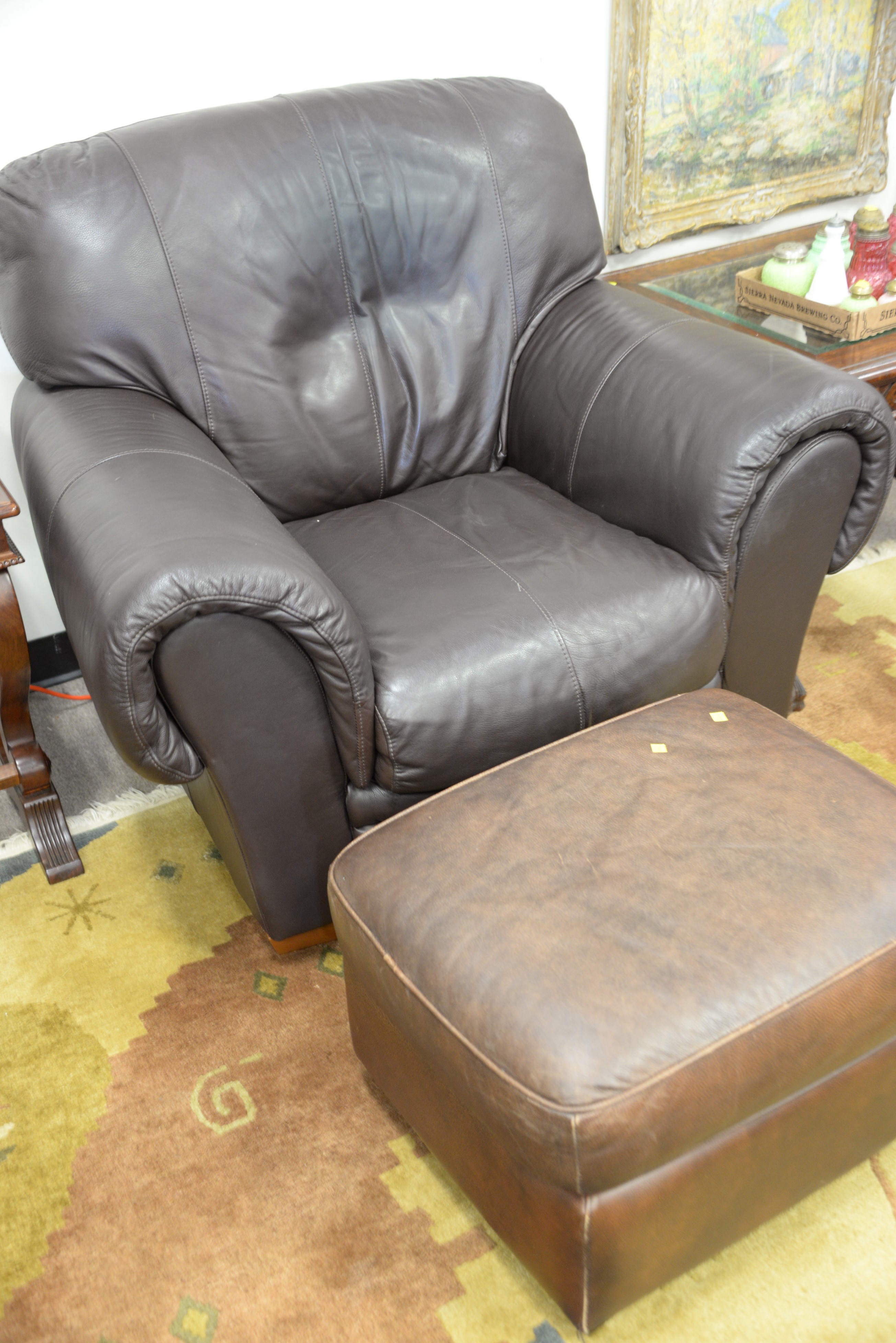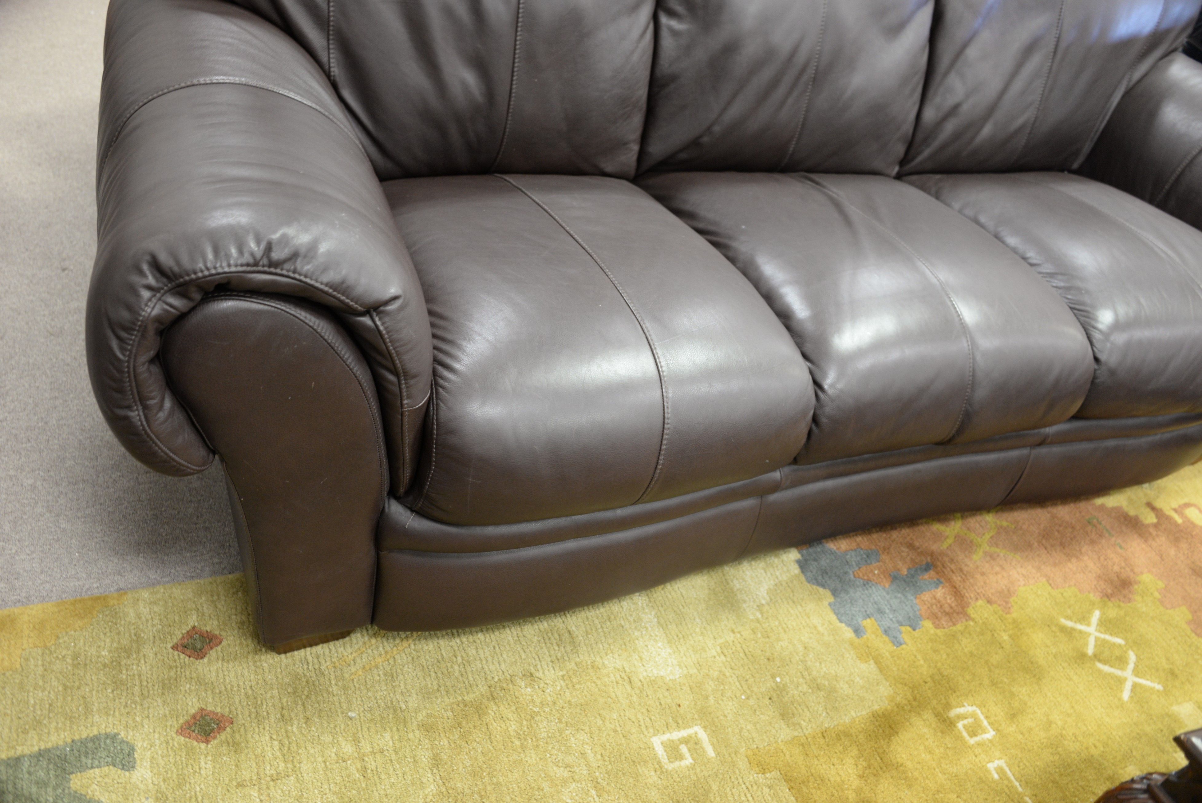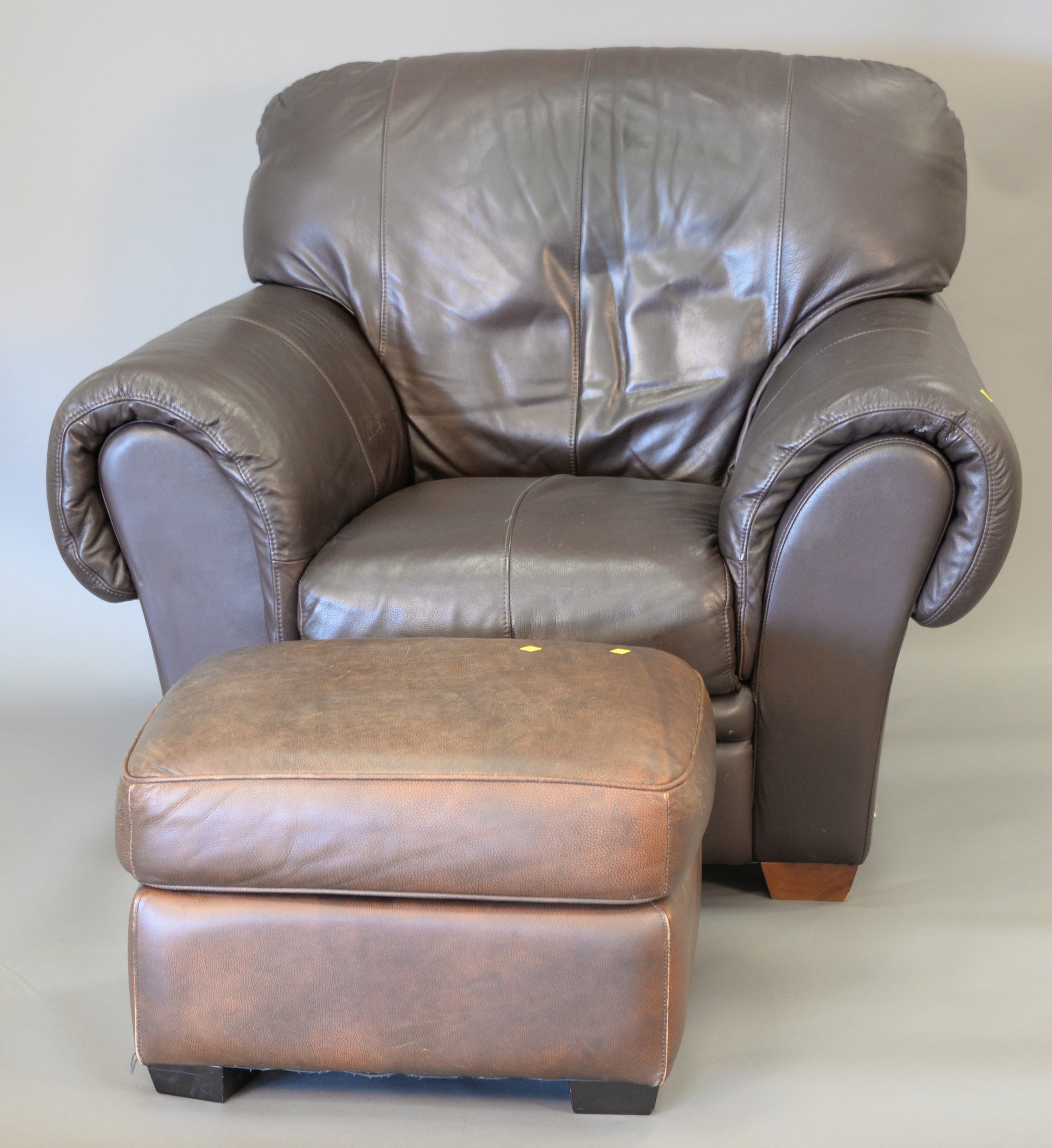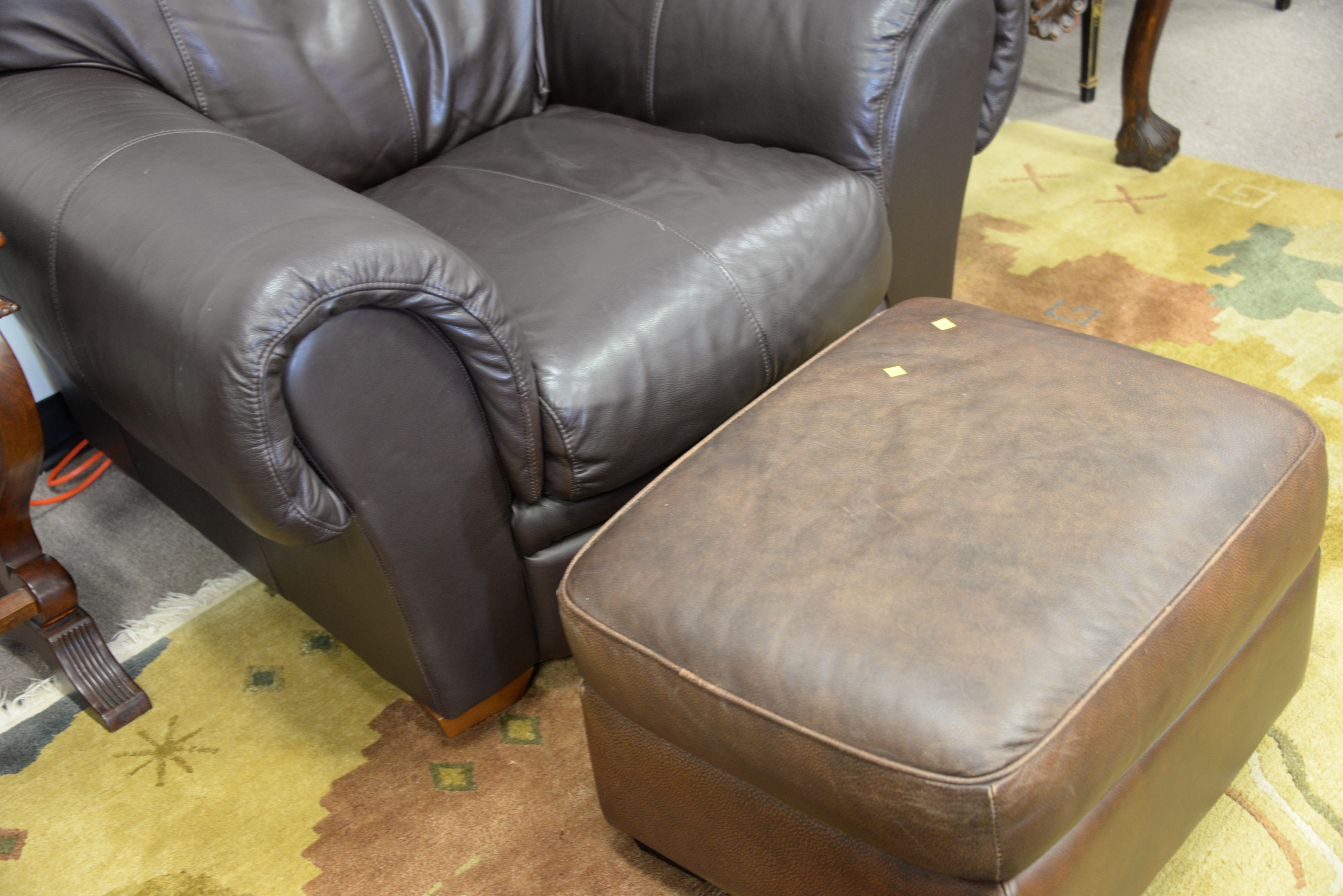 Natuzzi brown leather sofa and easy chair along with near matching ottoman. wd. 80 in.