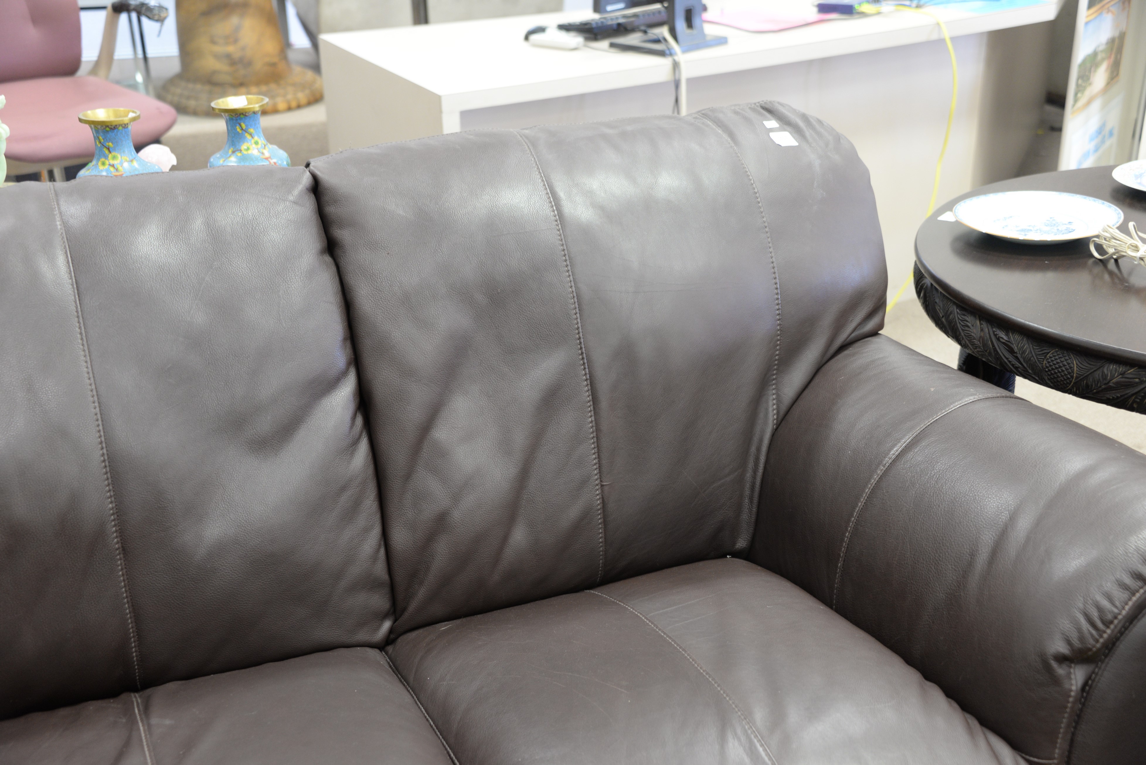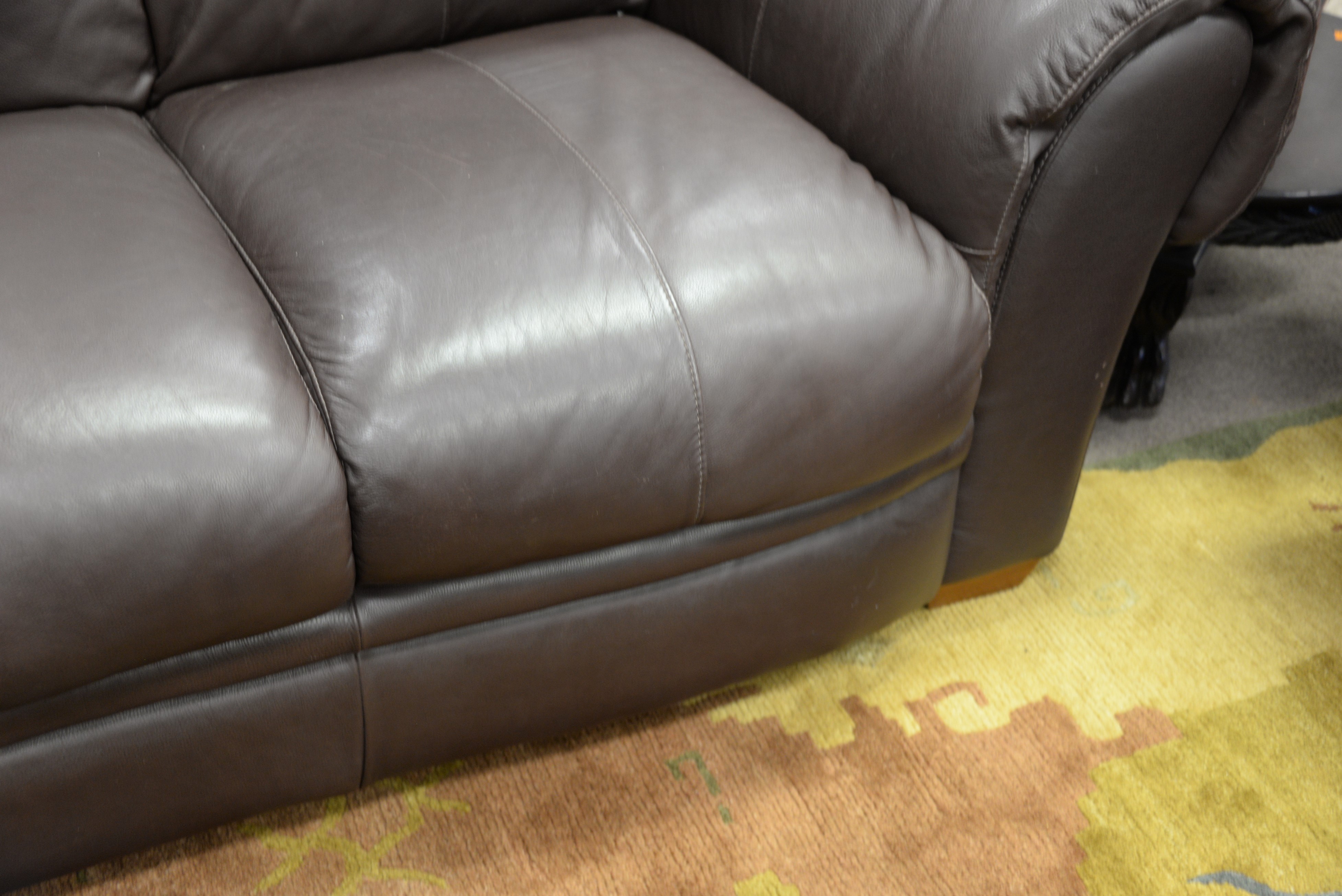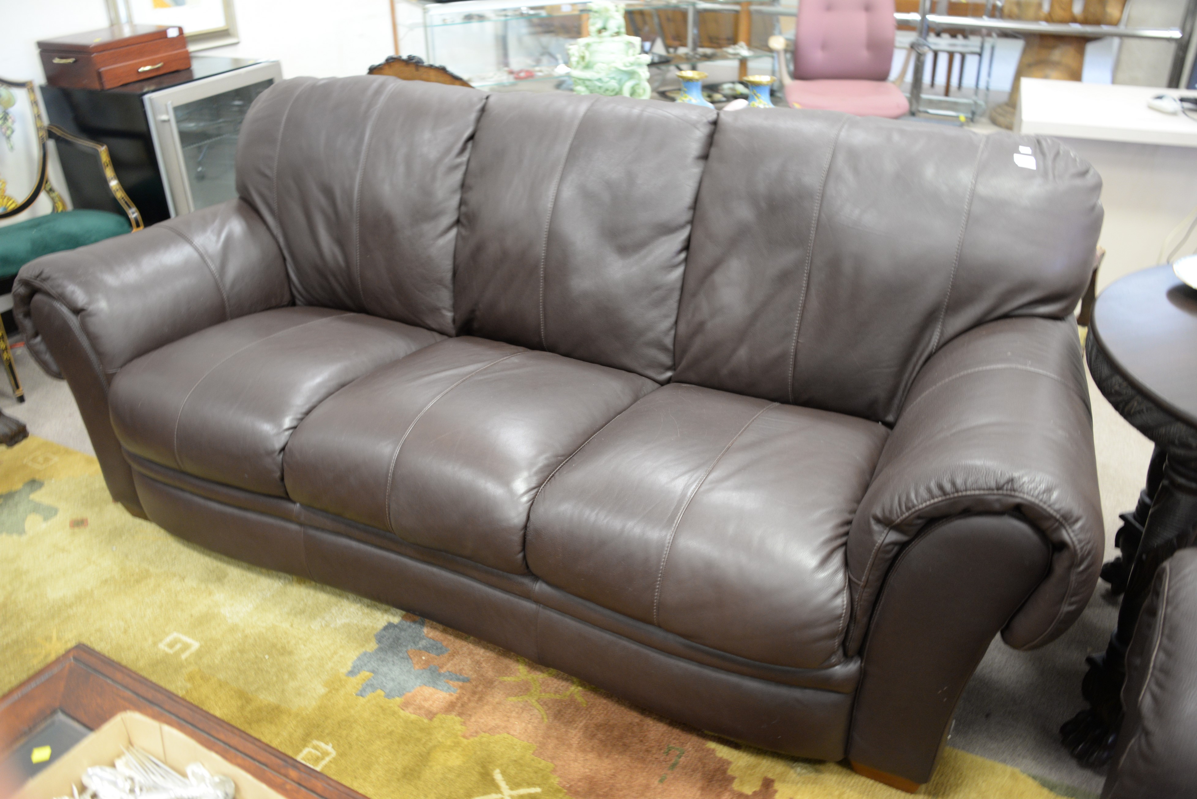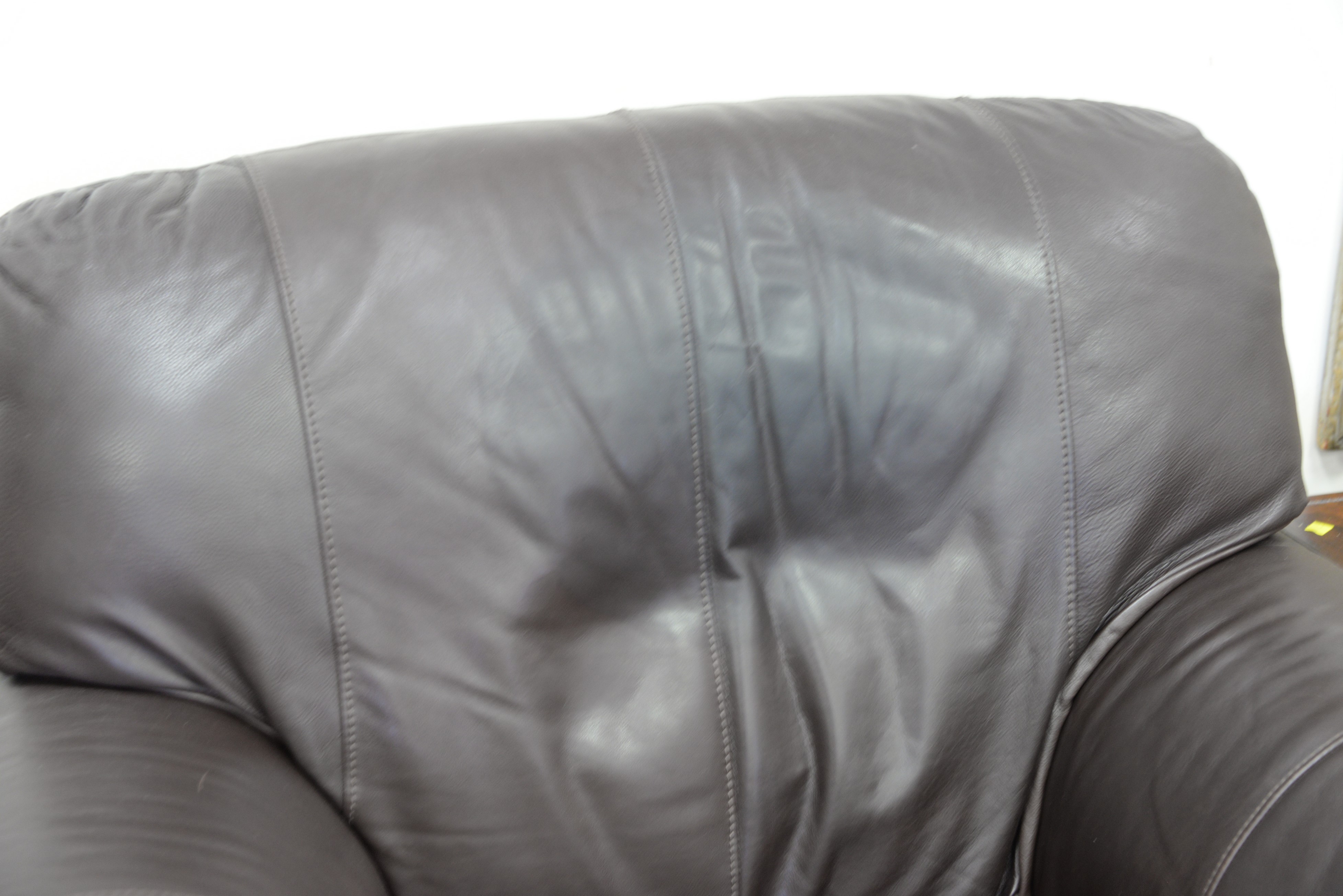 Natuzzi brown leather sofa and easy chair along with near matching ottoman. wd. 80 in.
