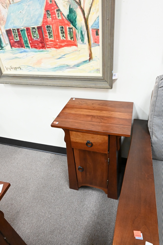 Pair of Ethan Allen Cherry Mission Style Small Cabinets, height 25 inches, top 14″ x 17″.