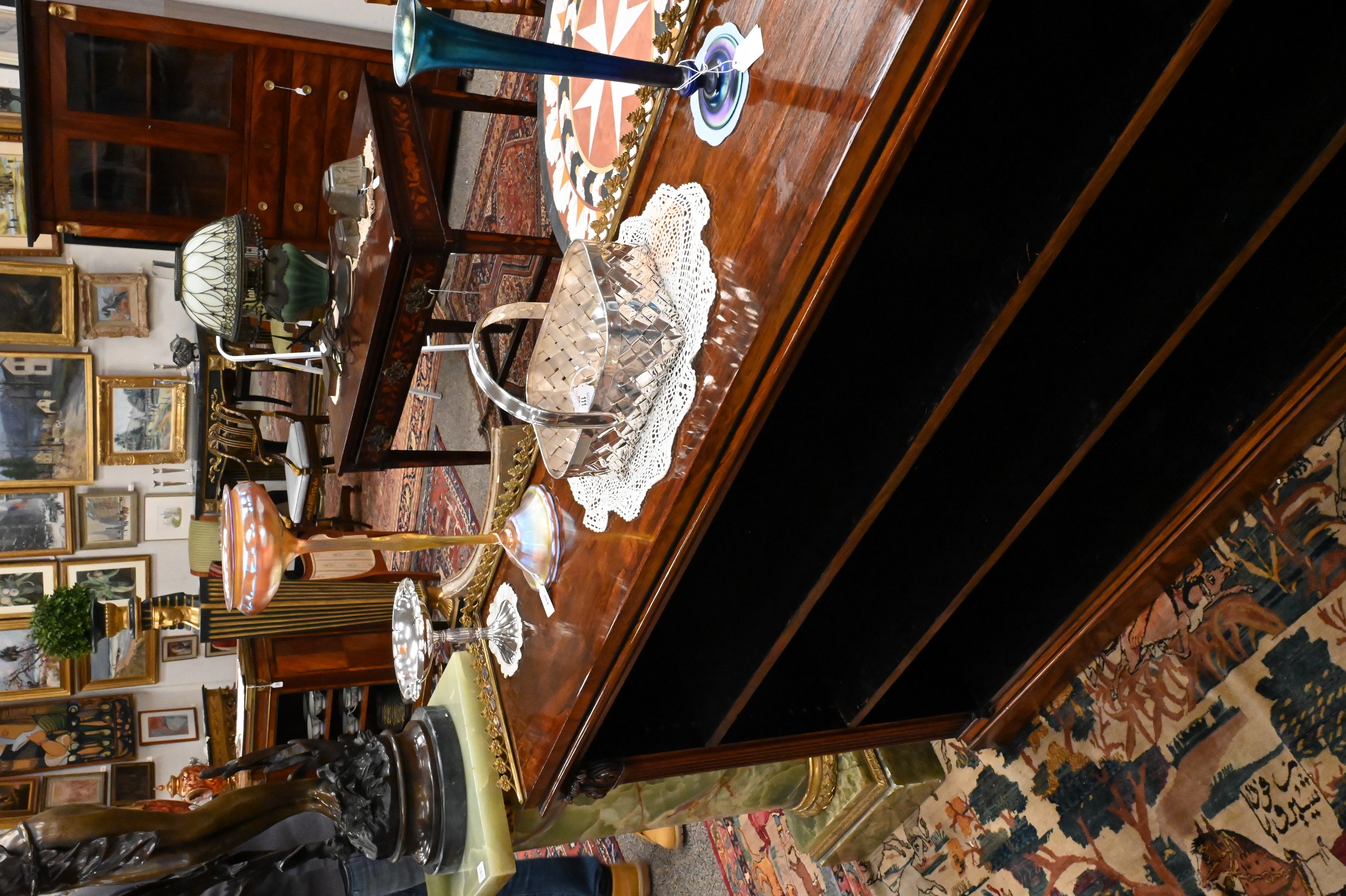 Condition: presents well, back gallery slightly bent, slight wear to top, shelves with wear/ scratching