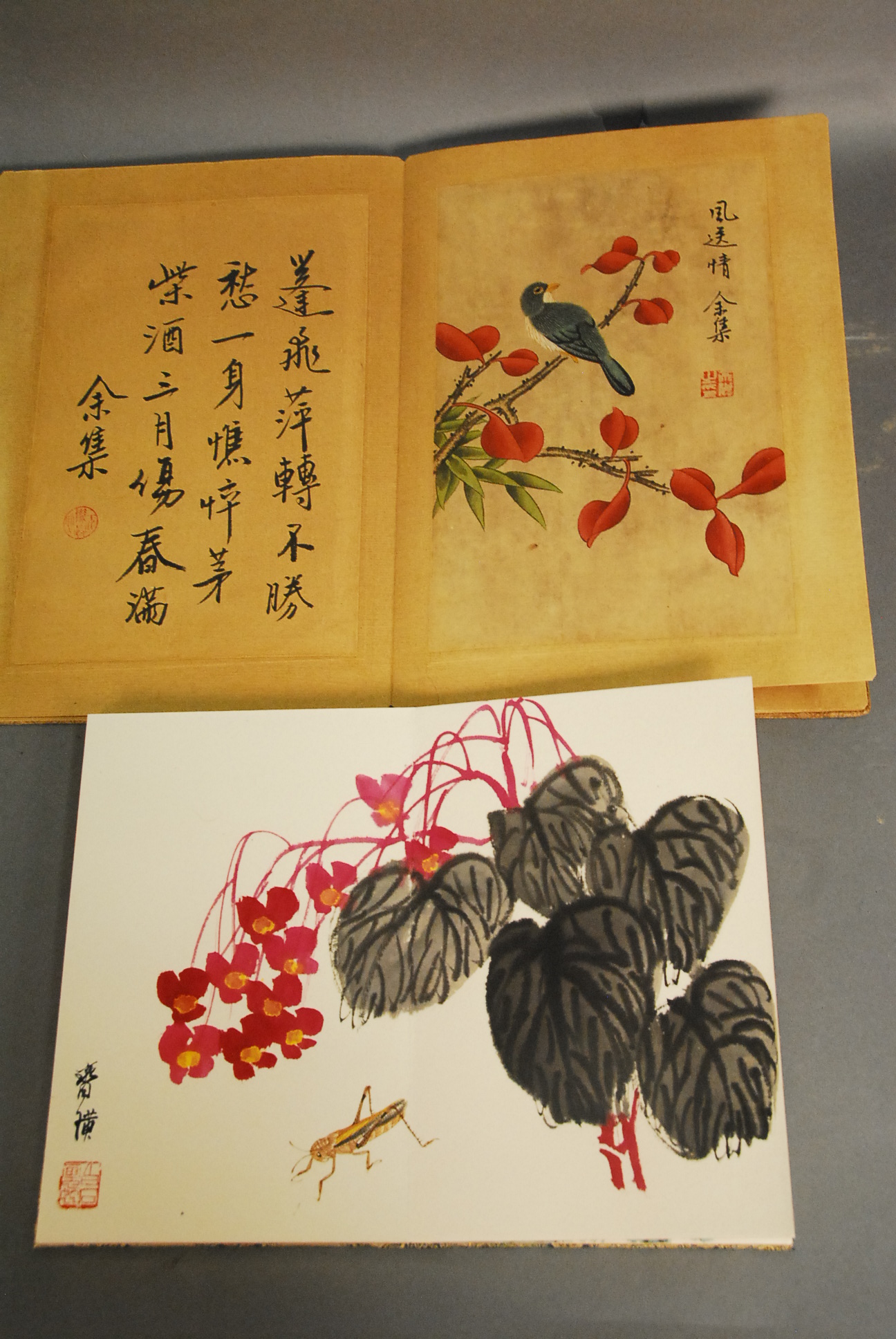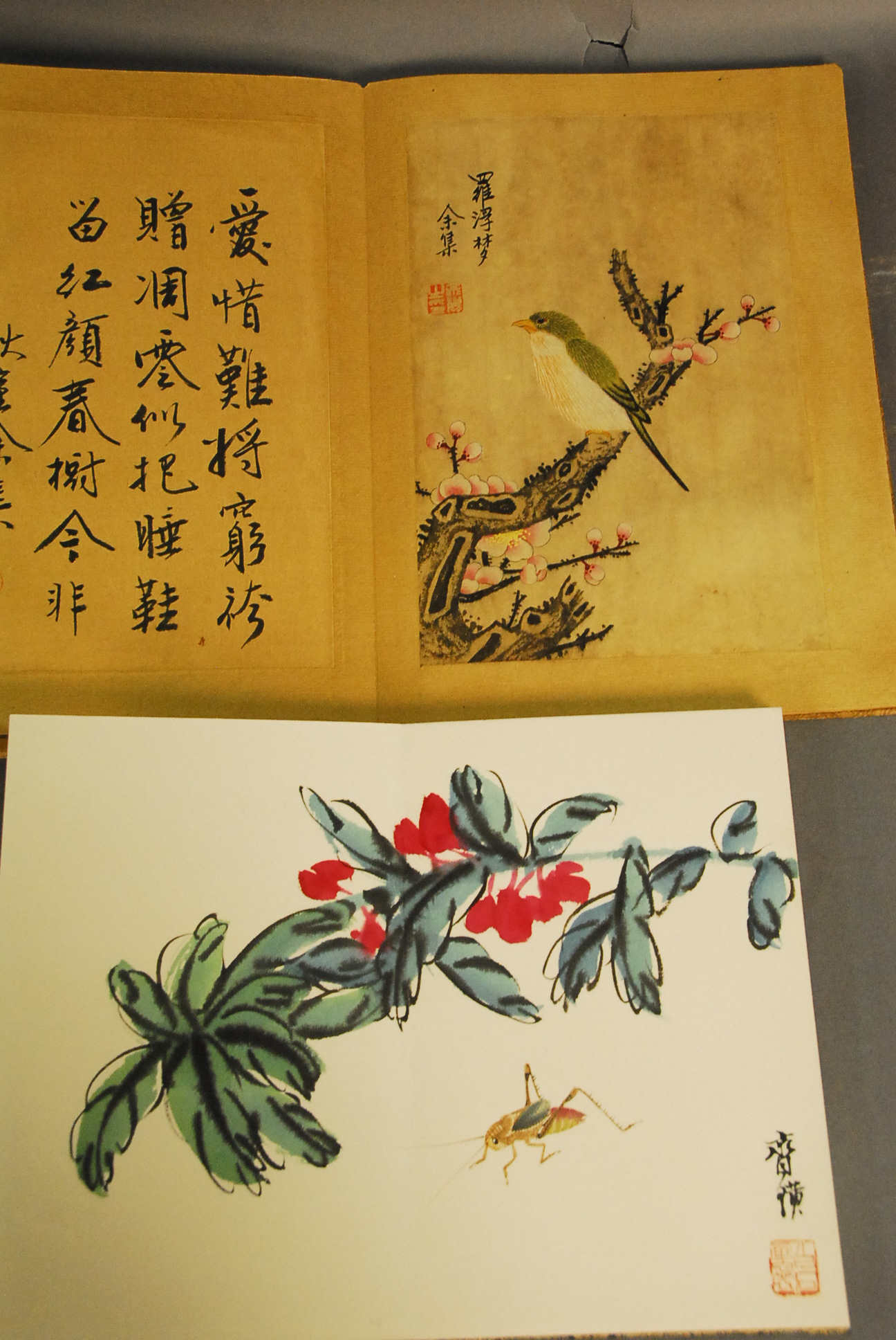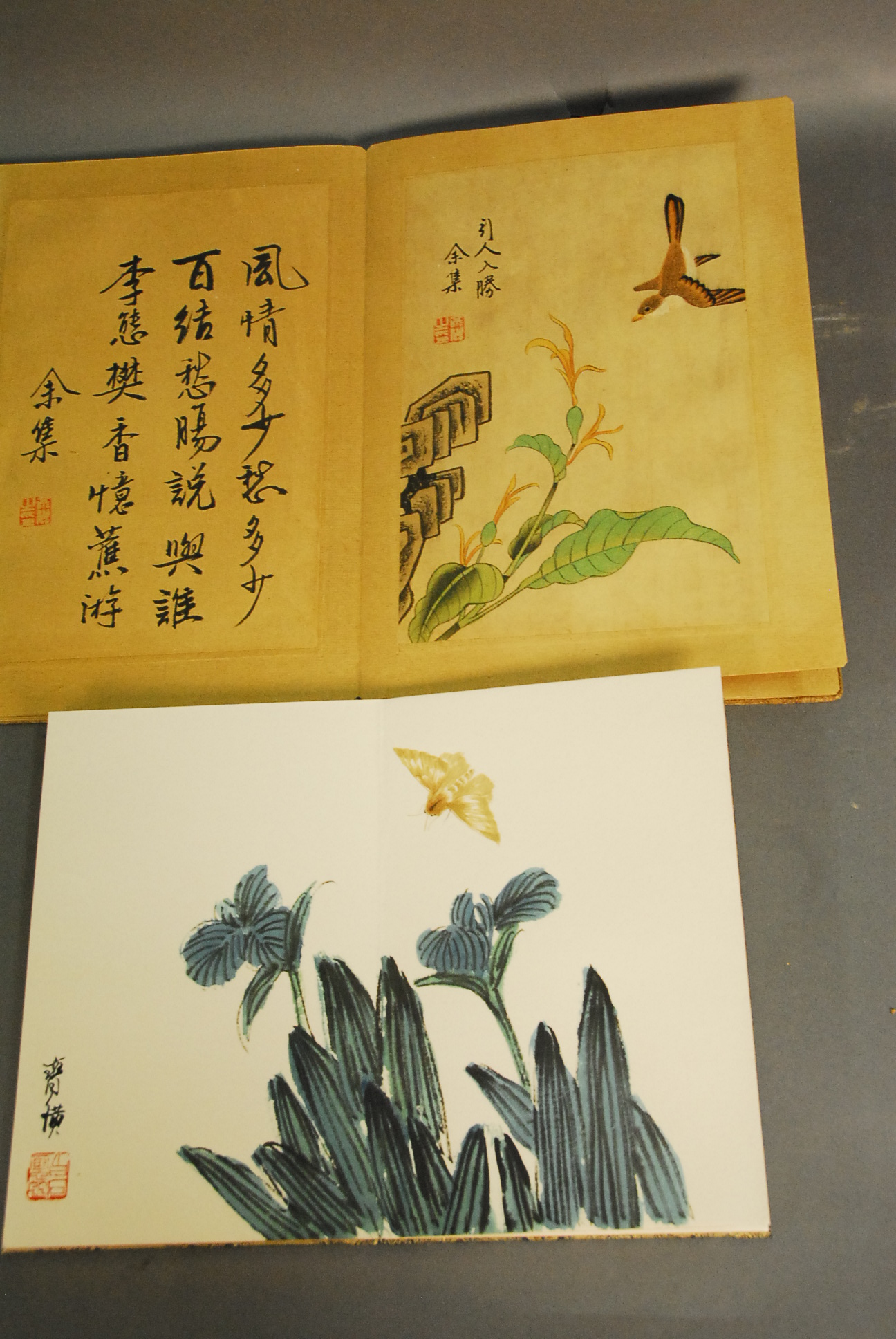Two Oriental books of paintings having eight paintings, 9 1/2 x 6 and 13 x 9.