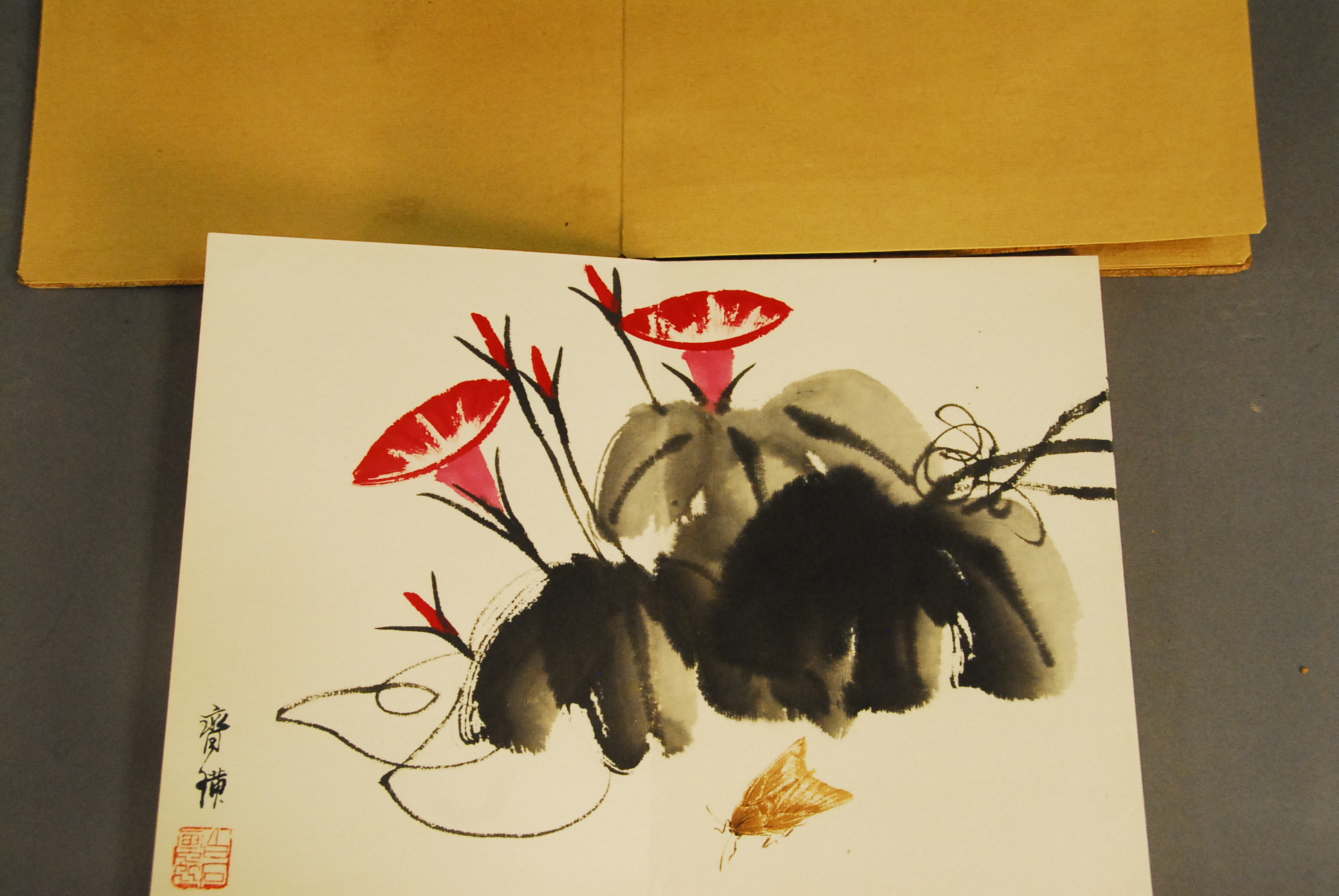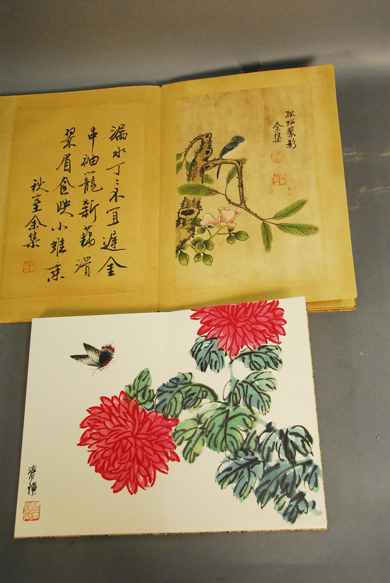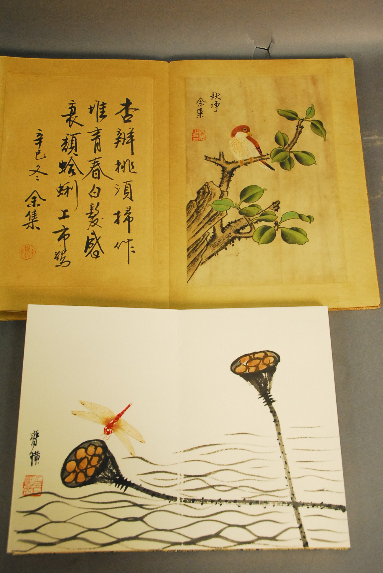 Two Oriental books of paintings having eight paintings, 9 1/2 x 6 and 13 x 9.