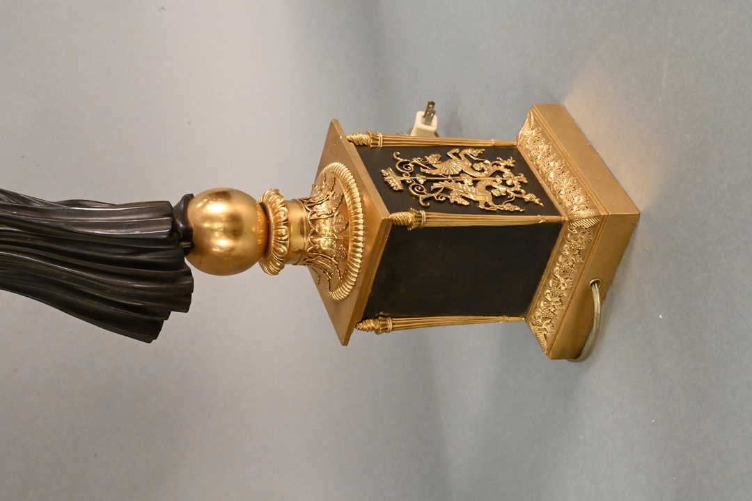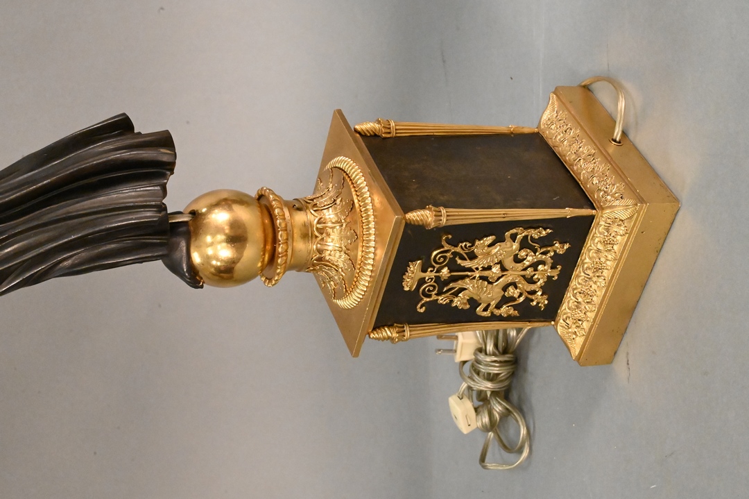 Lot 456: A Pair of French Empire Gilt and Patinated Bronze Figural Candelabra