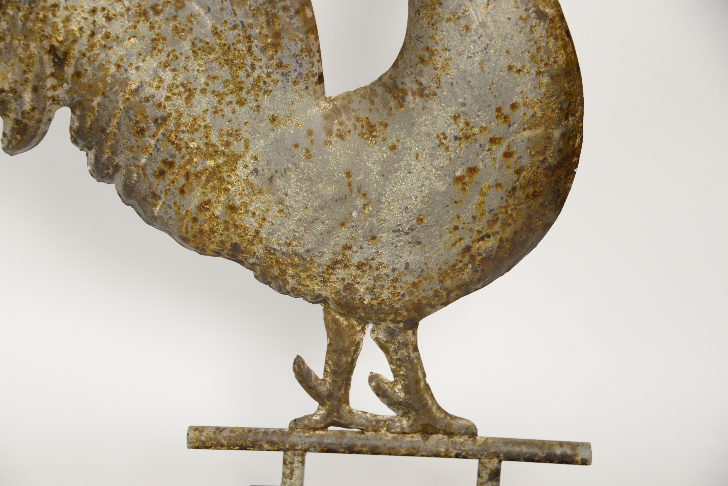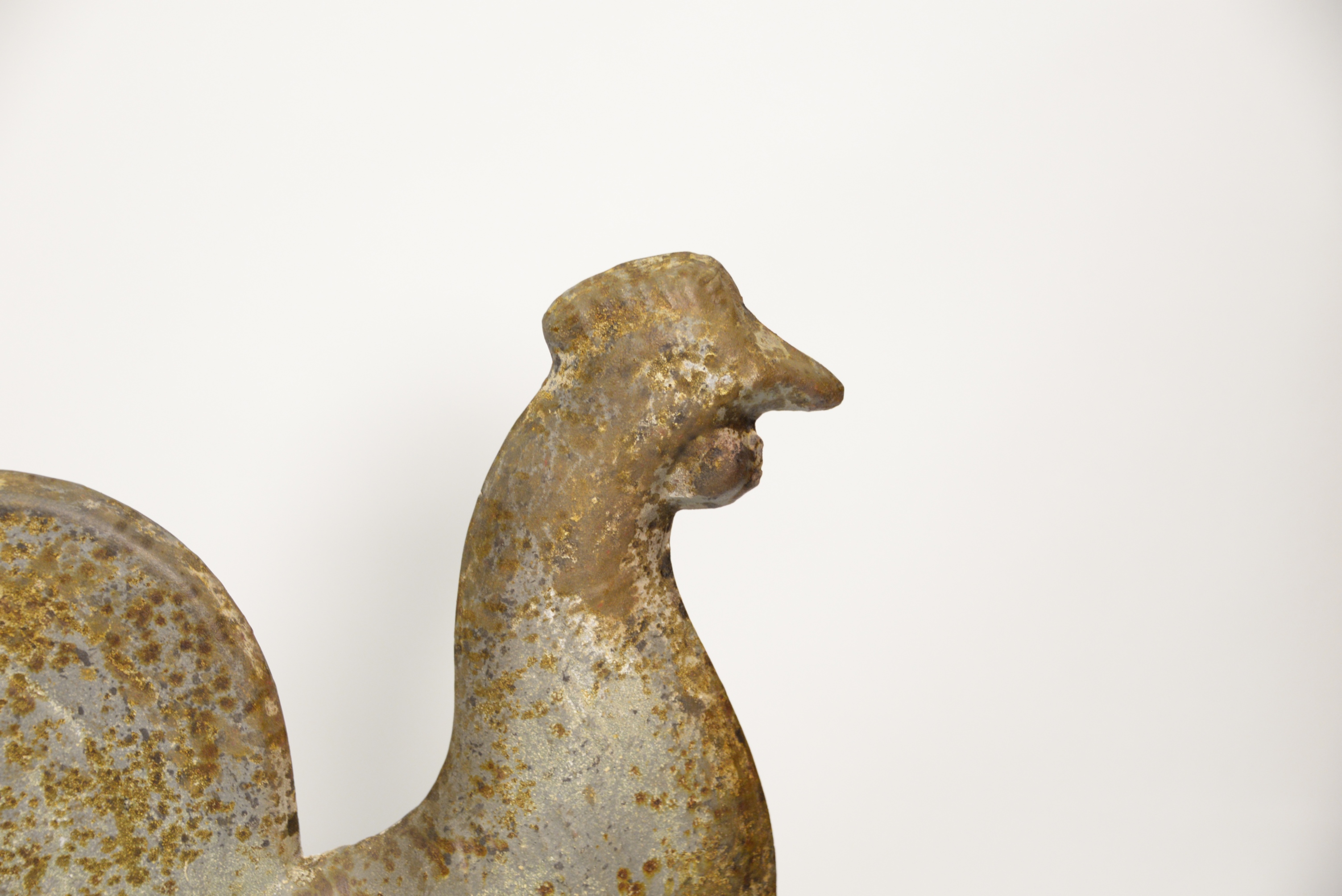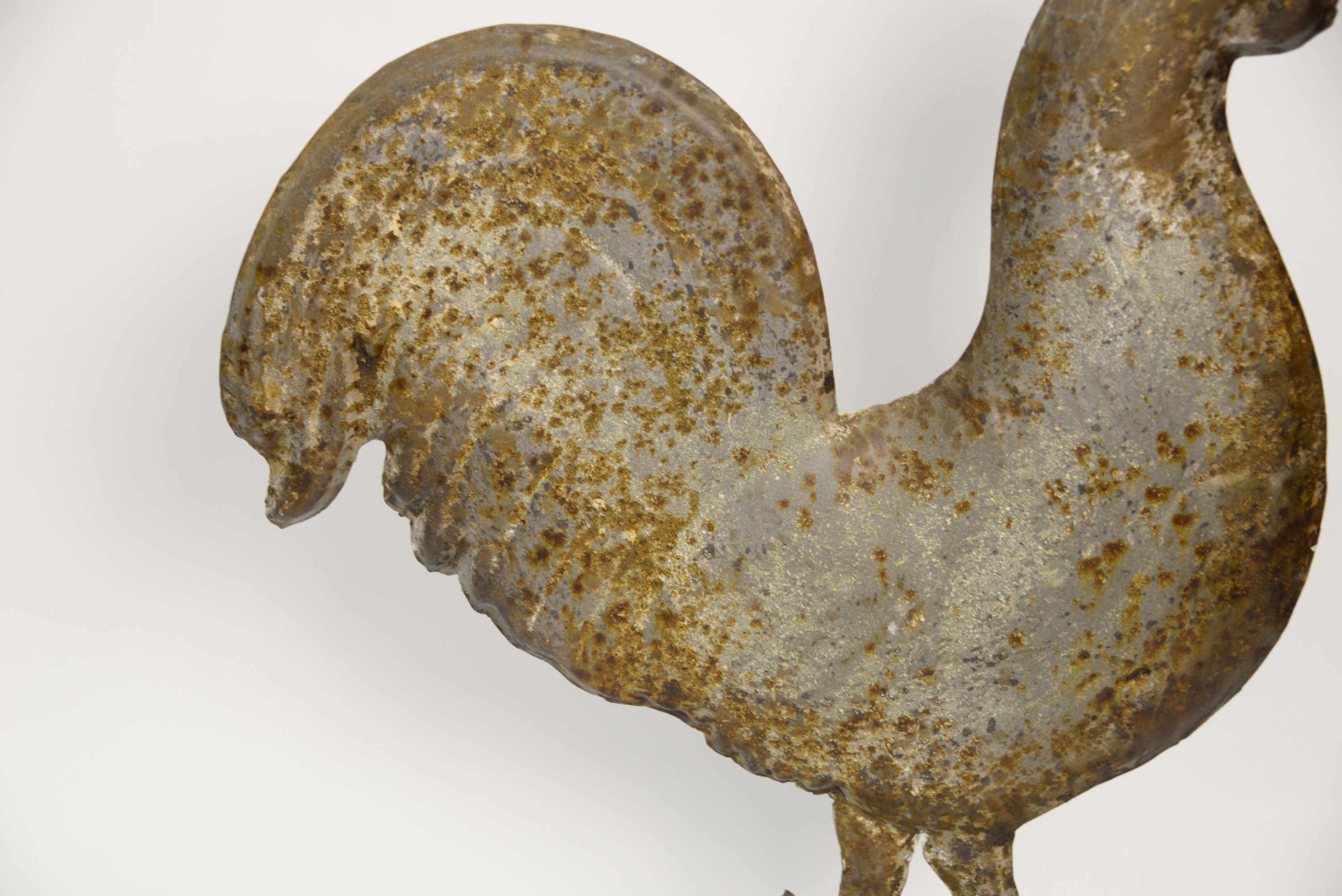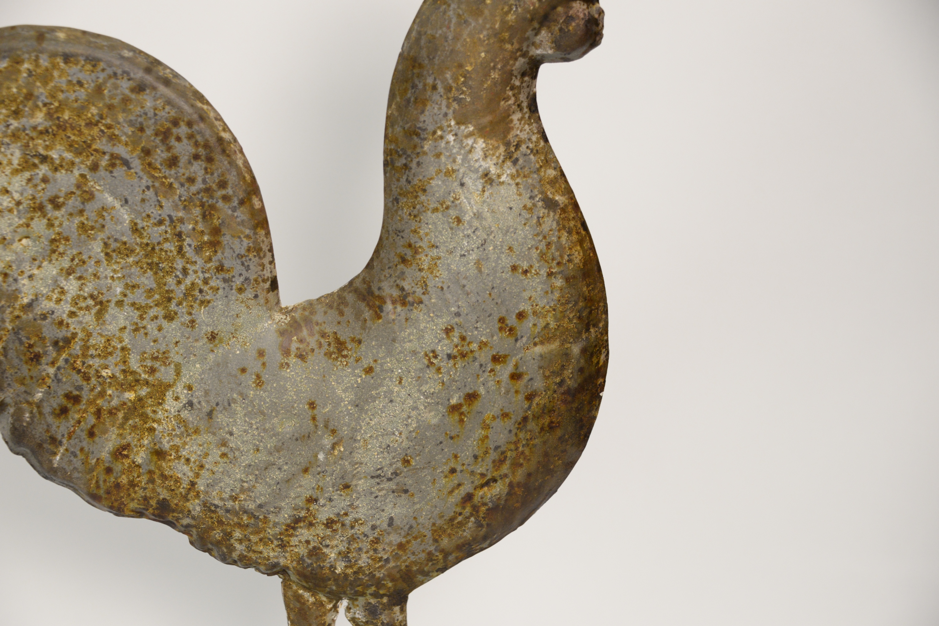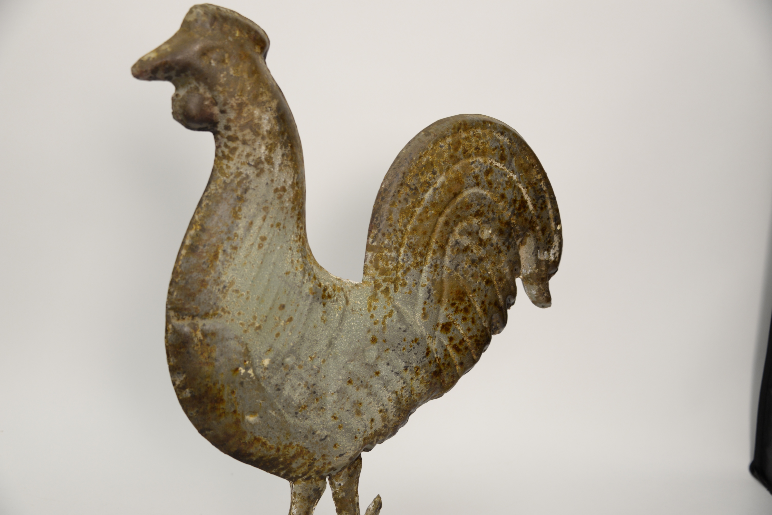 Antique Tin Rooster Weathervane, lion handles on the shoulder, height 13 inches.