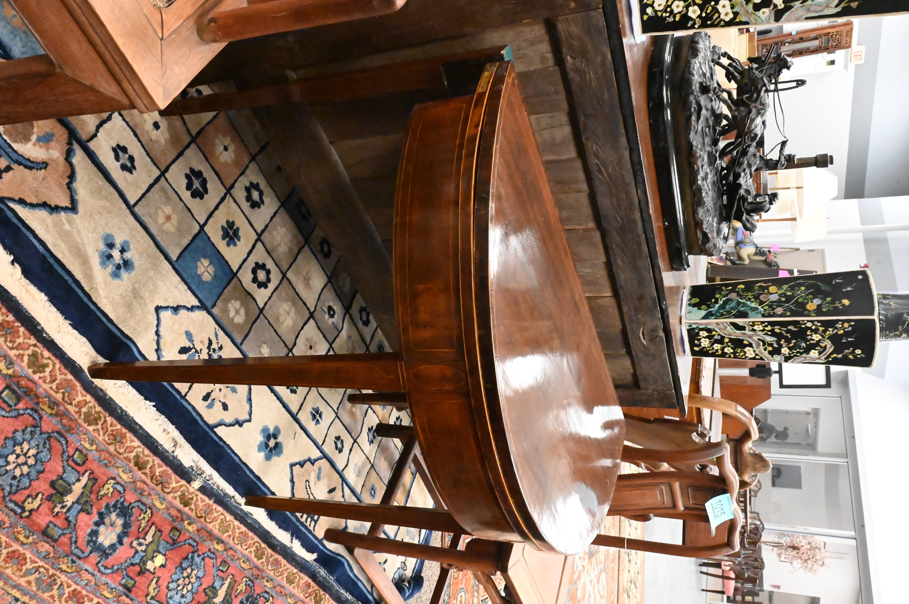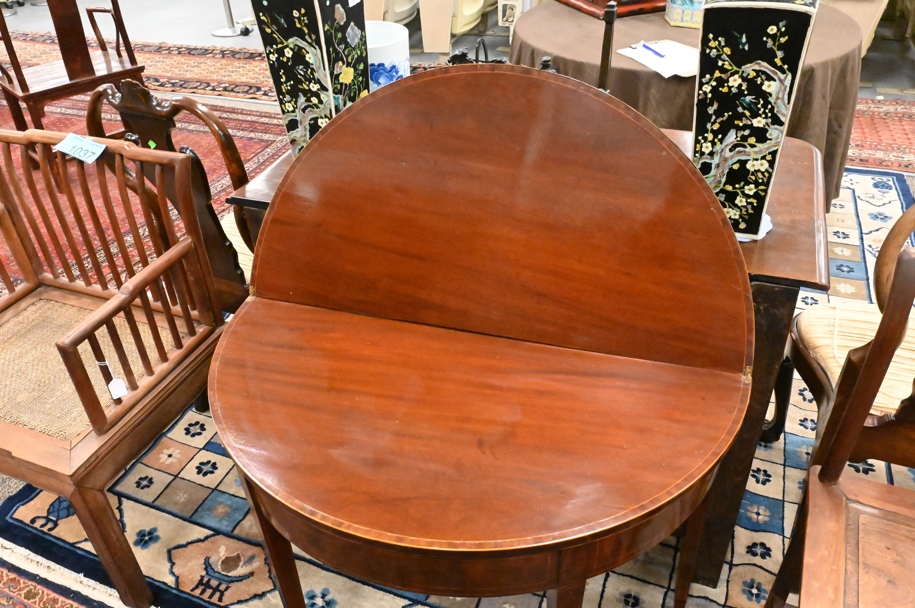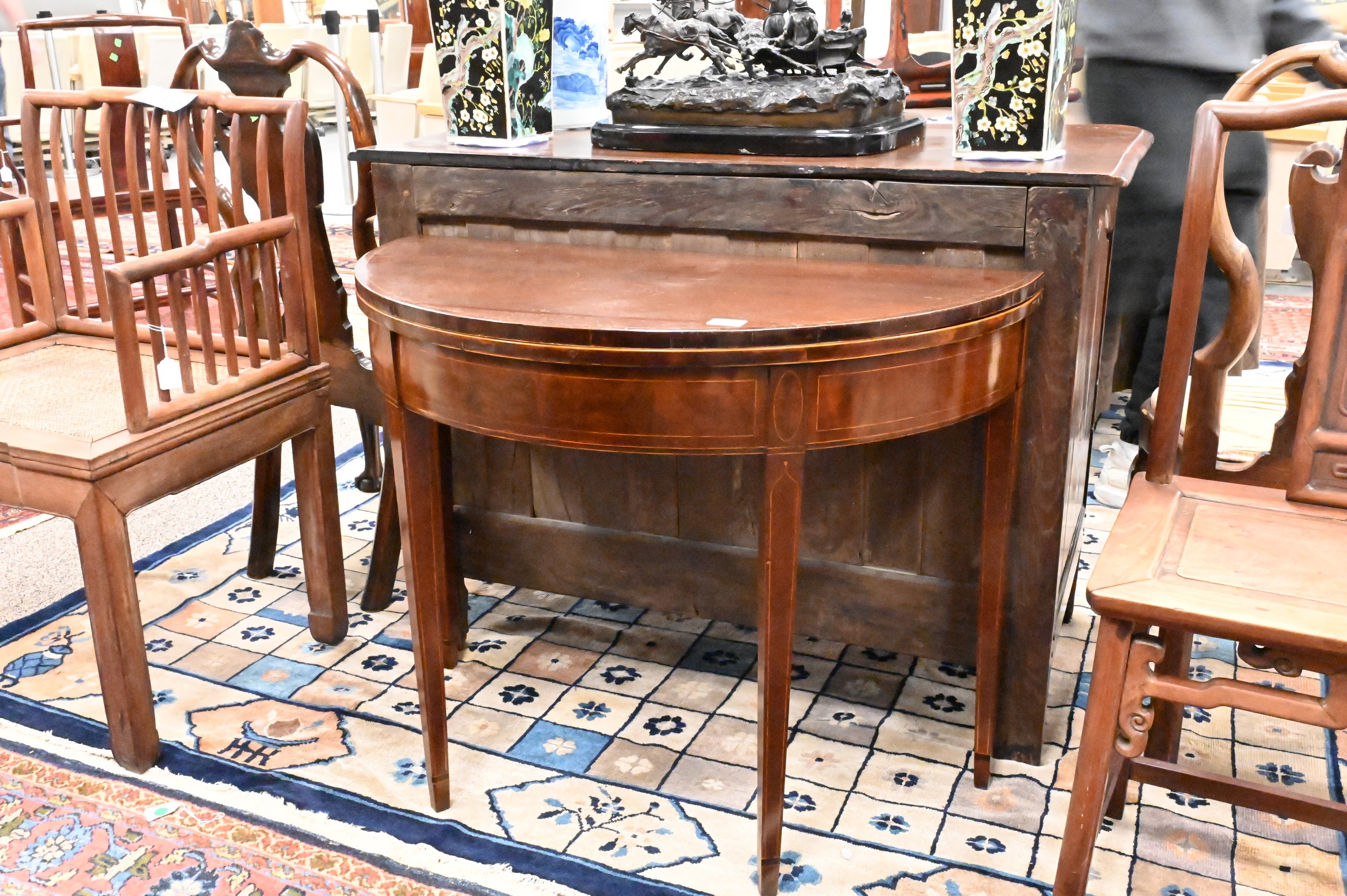 D-shaped top above inlaid conforming frieze on square tapering legs