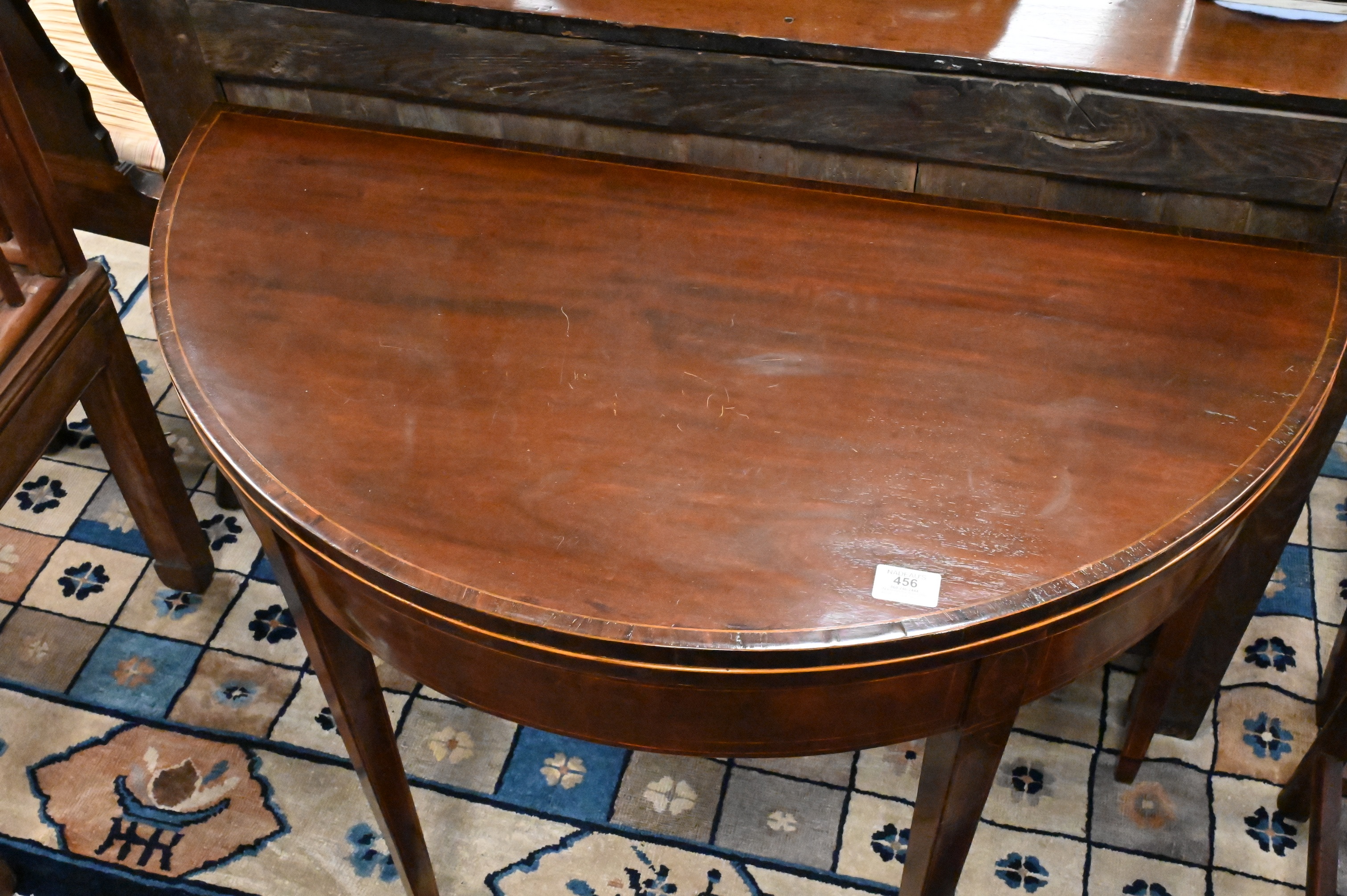 Lot 456: Federal Satinwood Inlaid Carved Mahogany Fold-Over Card Table
