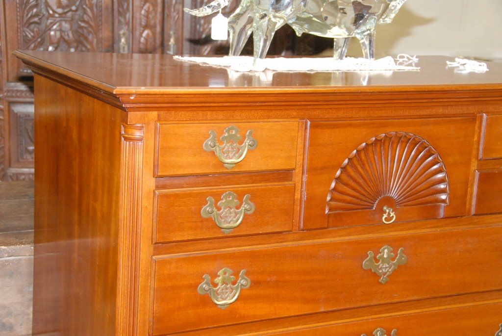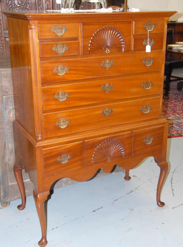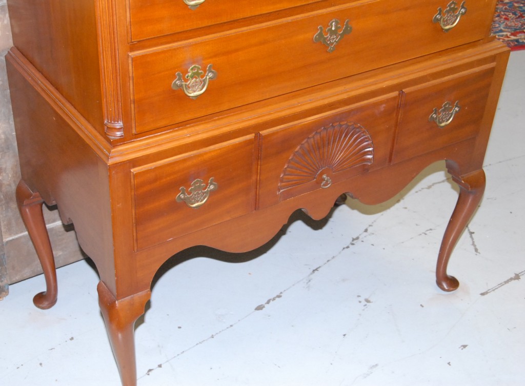 Margolis Queen Anne flattop highboy in tow parts on cabriole legs ending in pad feet, Margolis stamp on reverse. height 56in. width 38in.