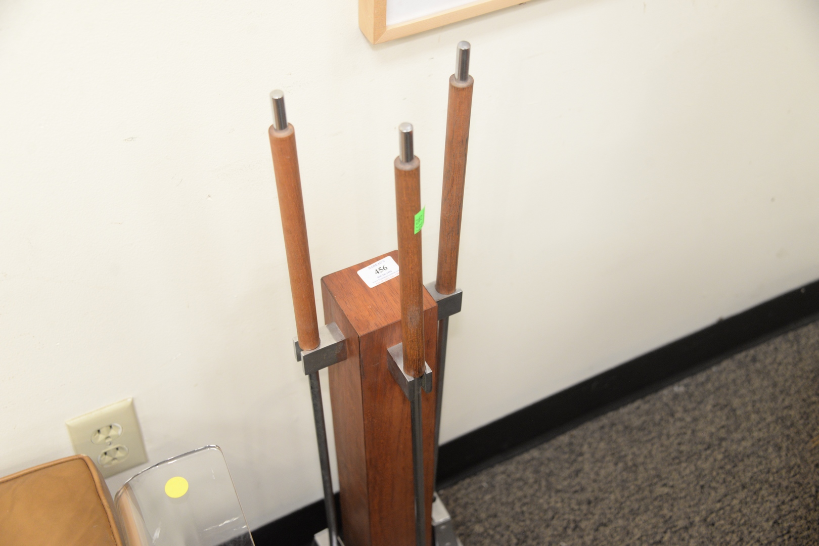 Mid-Century Four Piece Chrome Fire Tool Set, tools length 34 inches.