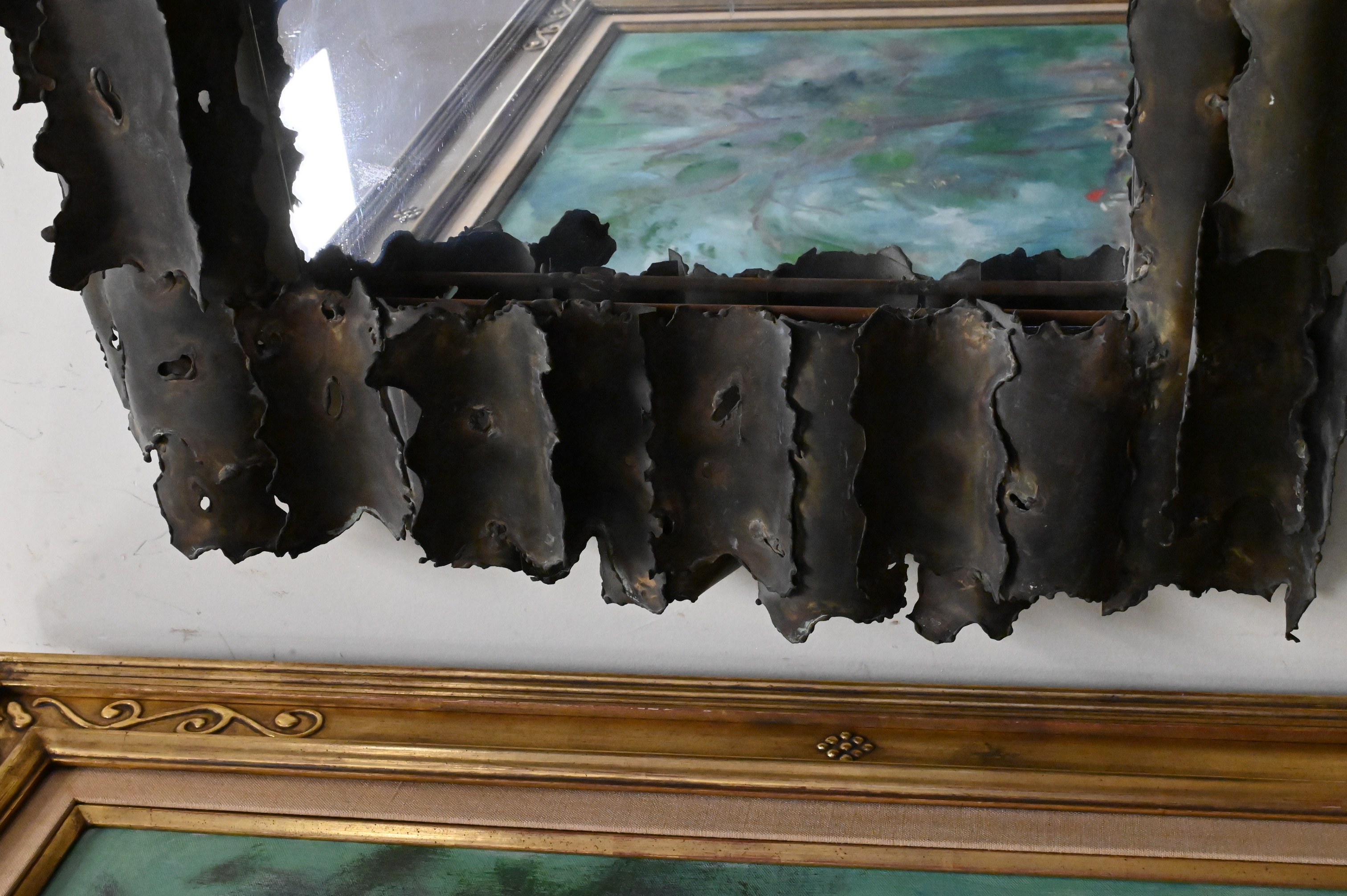Lot 456: Tom Greene Style Brutalist Torch Cut Metal Mirror