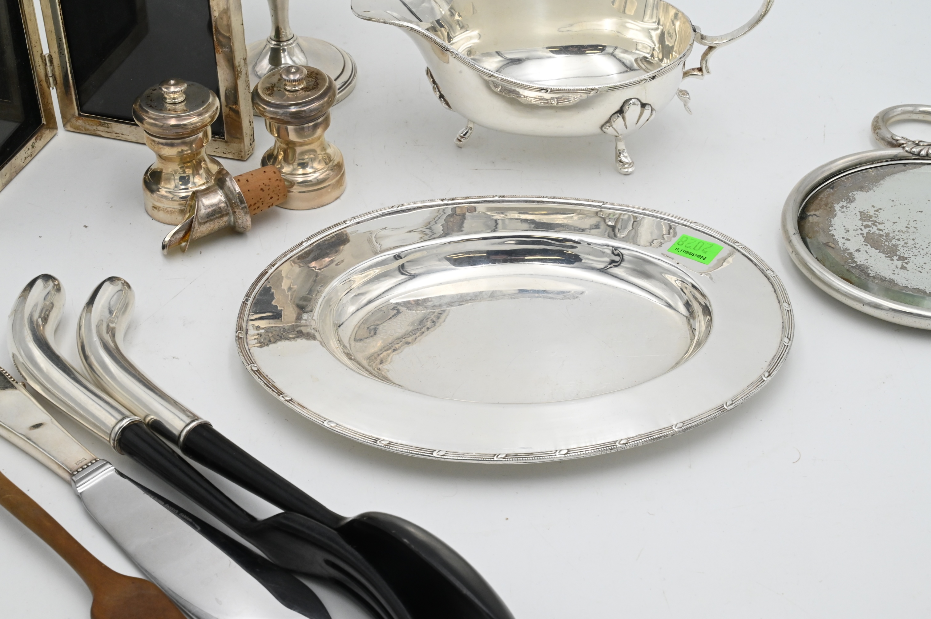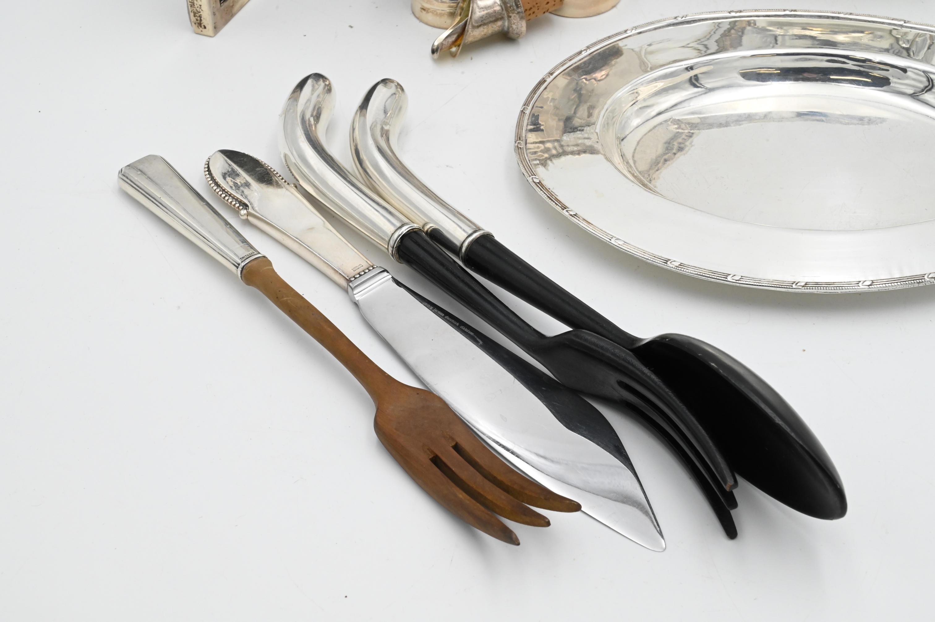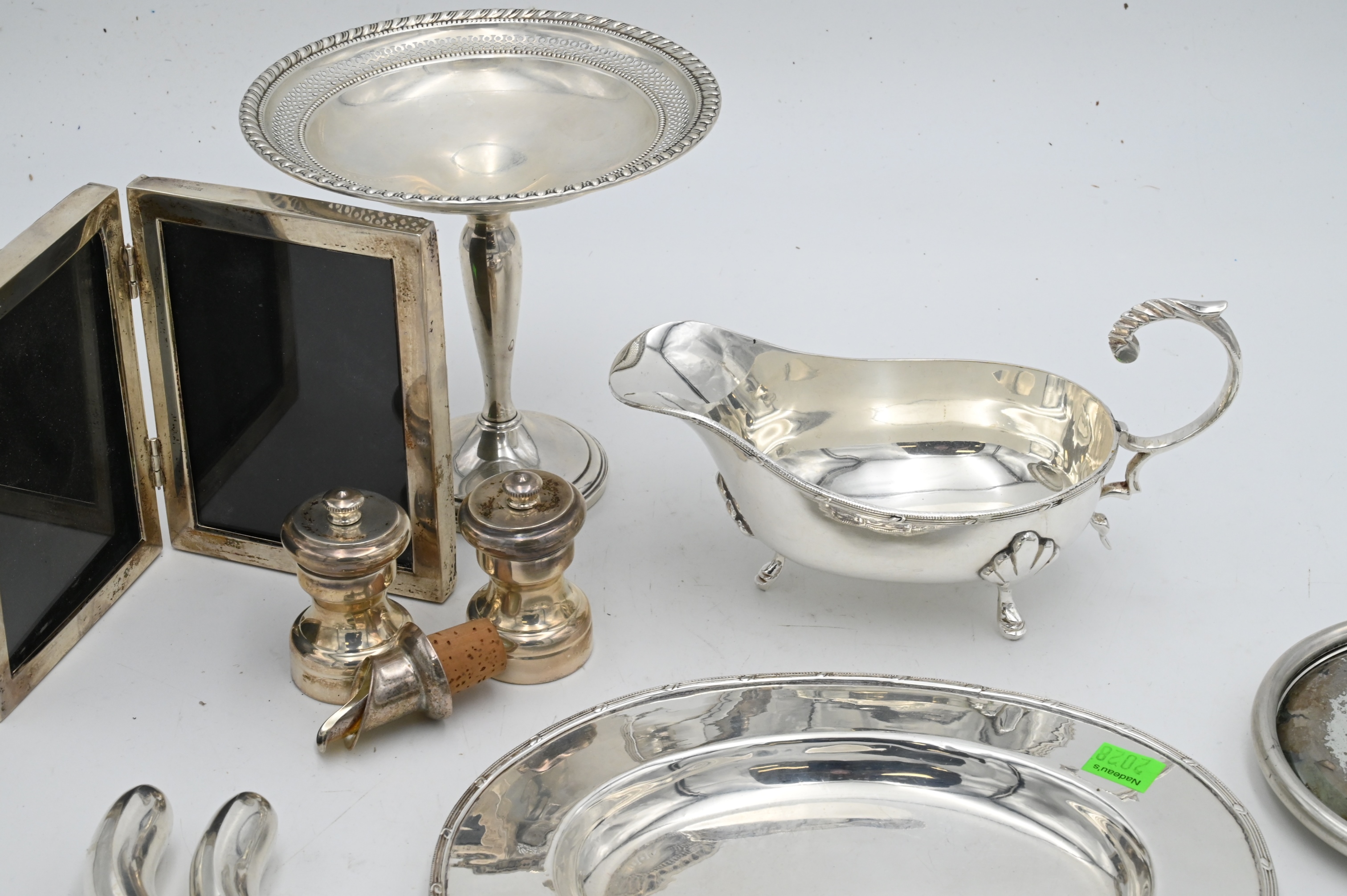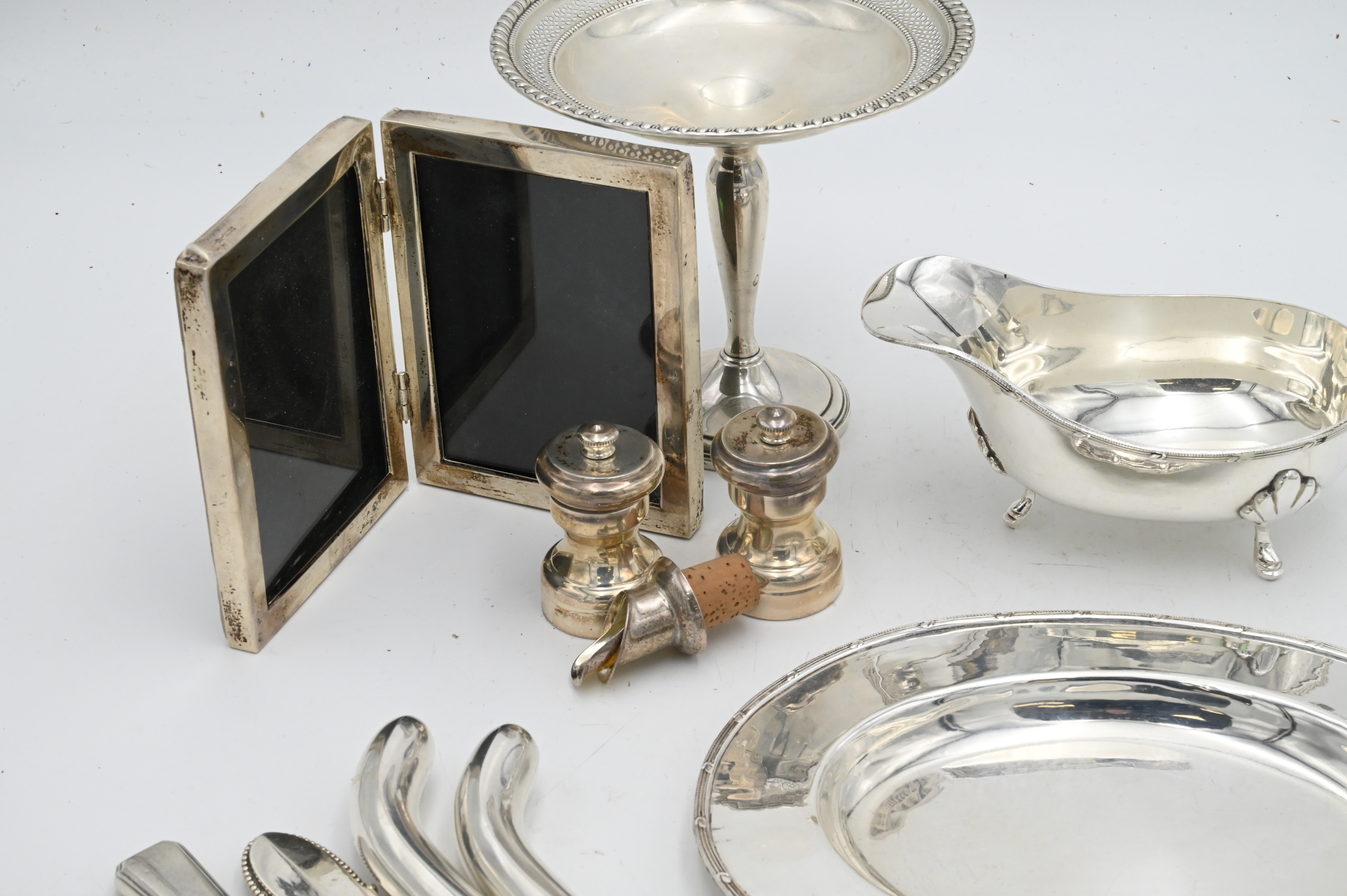 Tray Lot Silver Weighted Pieces, tallest height 6 inches, Provenance: Julius H Jacobson II a Fifth Avenue Estate.