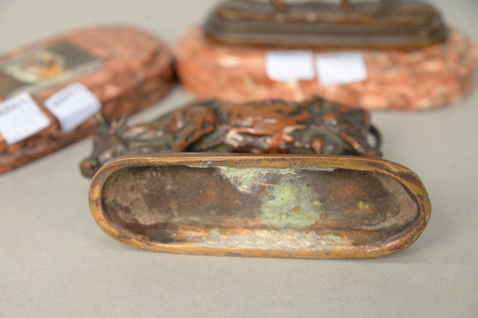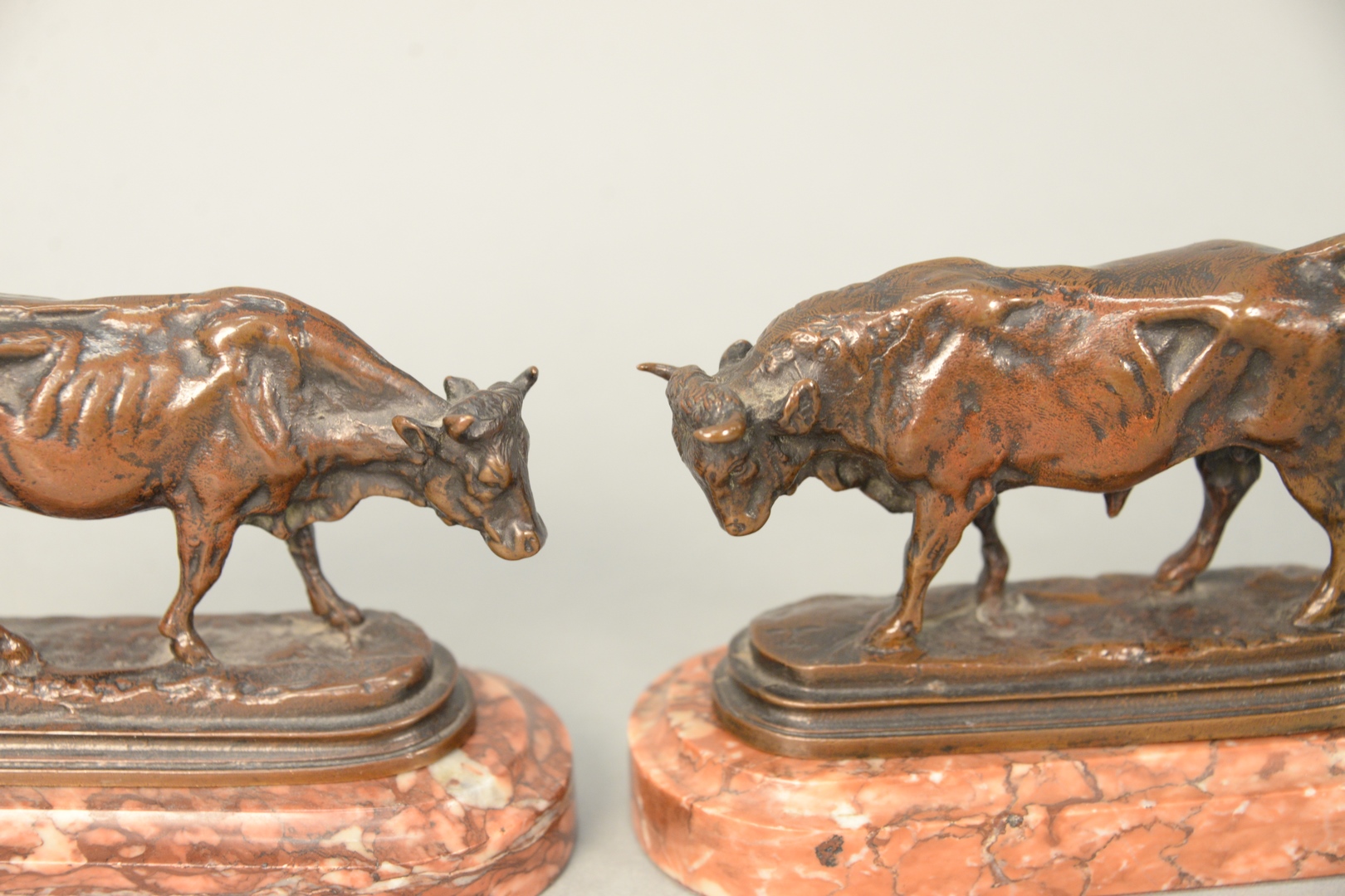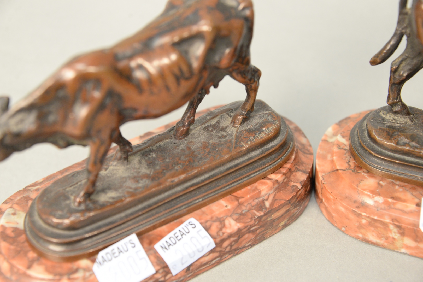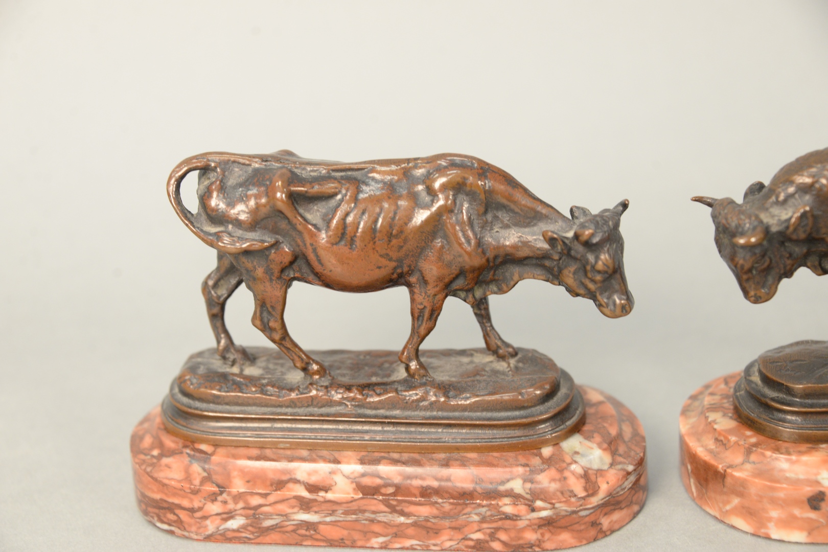 Lot 457: A Pair of Isidore Jules Bonheur 1827 – 1901 two small figures of a bull on marble bases both signed I. Bonheur total height 4 inch…