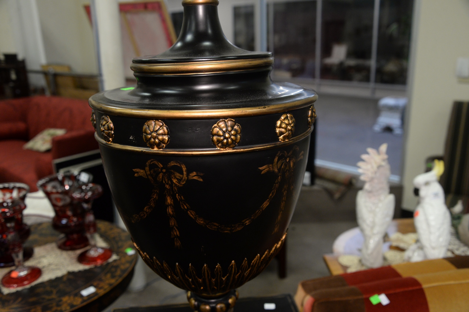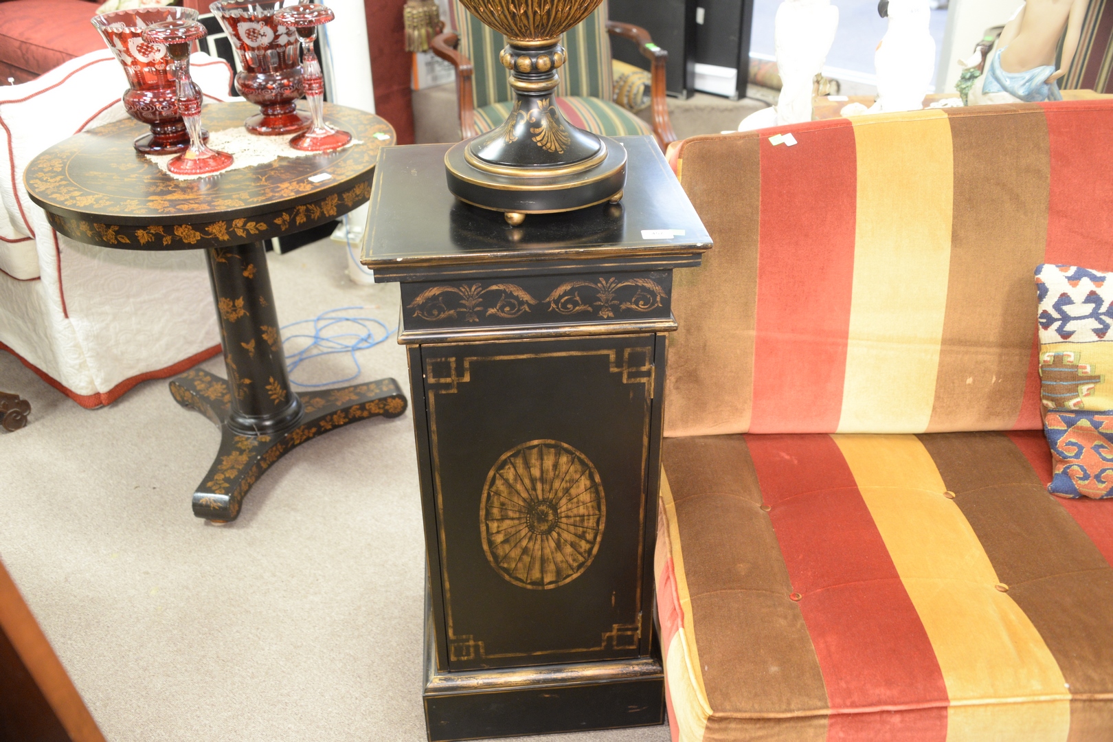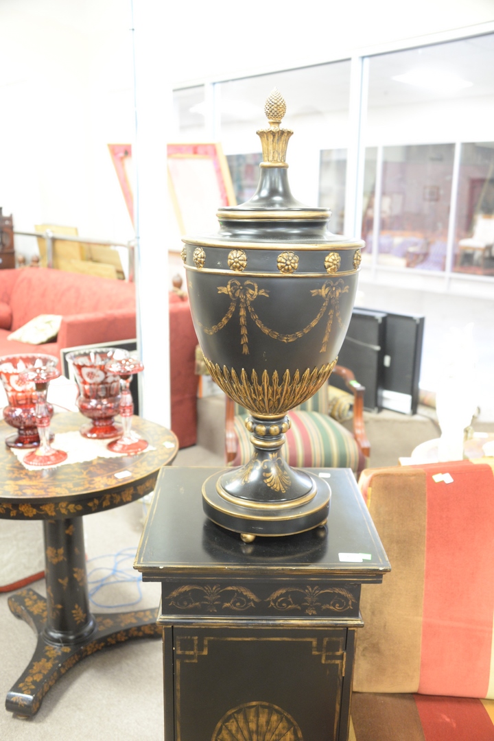 Lot 457: Contemporary Urn on Pedestal, having single door, urn height 30 1/2 inches, total height 65 inches. Provenance: David and Cynthia Kim, 22 Stoney Wylde Lane, Greenwich, Connecticut. View home by visiting: https://www.zillow.com/homedetails/22-Stoney-Wylde-Ln-Greenwich-CT-06830/177238281_zpid/