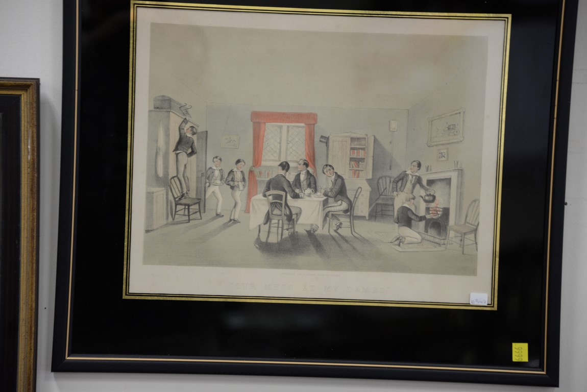 Lot 457: Group of four prints to include Saugethiere animal etching, a pair of prints by J. Ryman, and a photo.