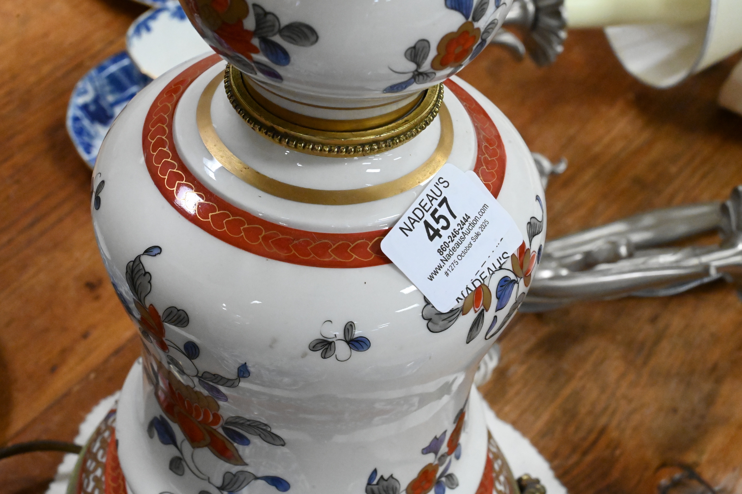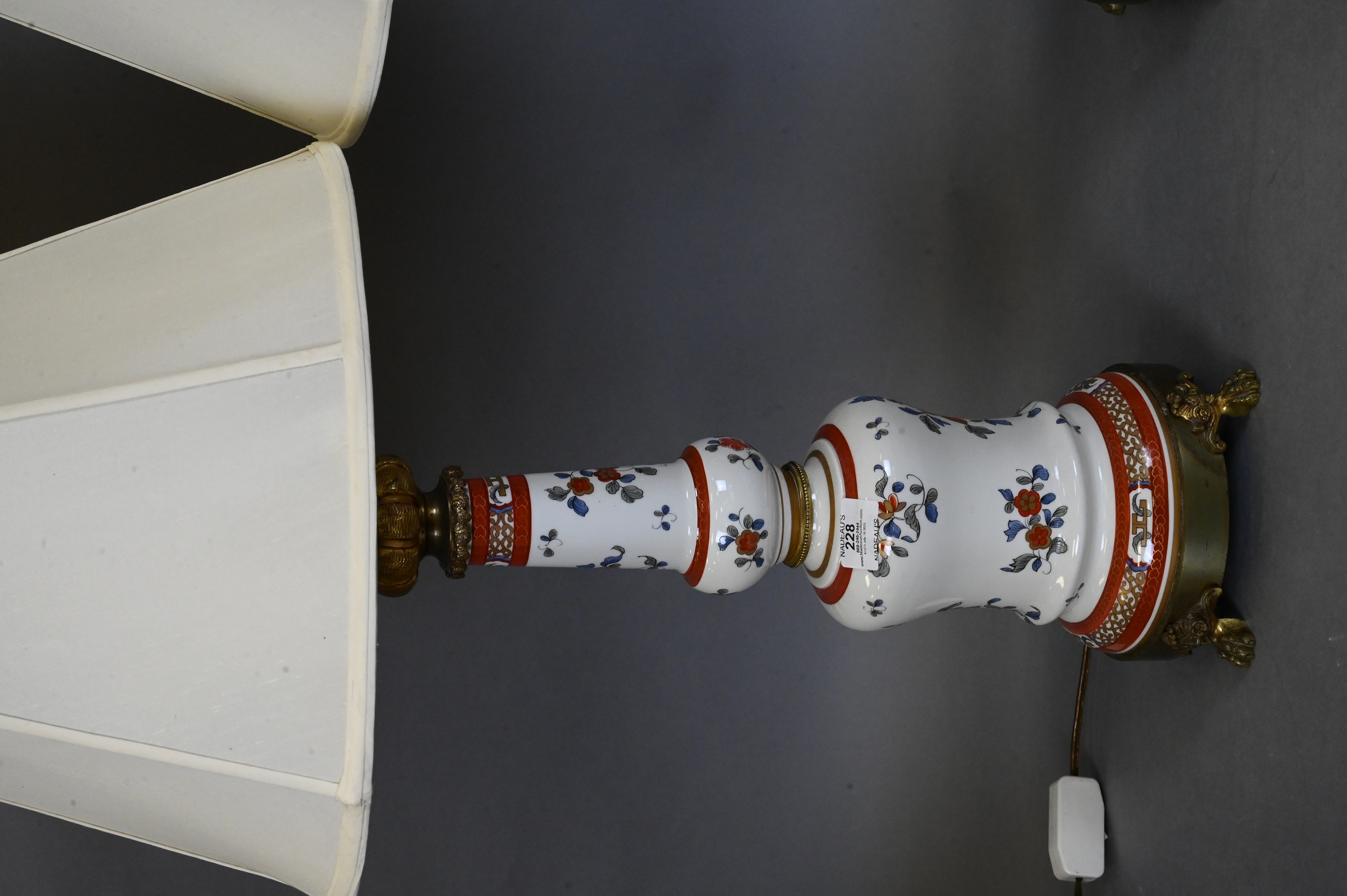 iron red and gilt porcelain body having ornate mounts, raised on claw paw feet