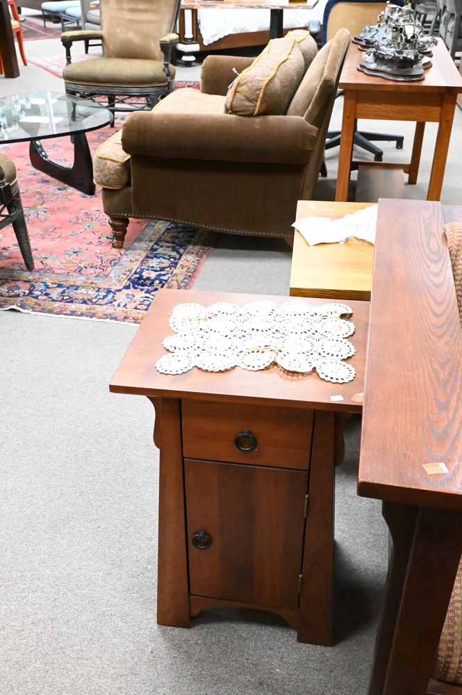 Pair of Ethan Allen Cherry Mission Style Stands, height 25 inches, top 14″ x 17″.