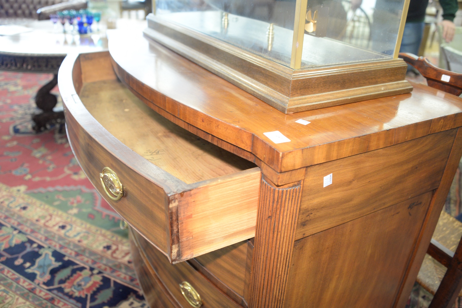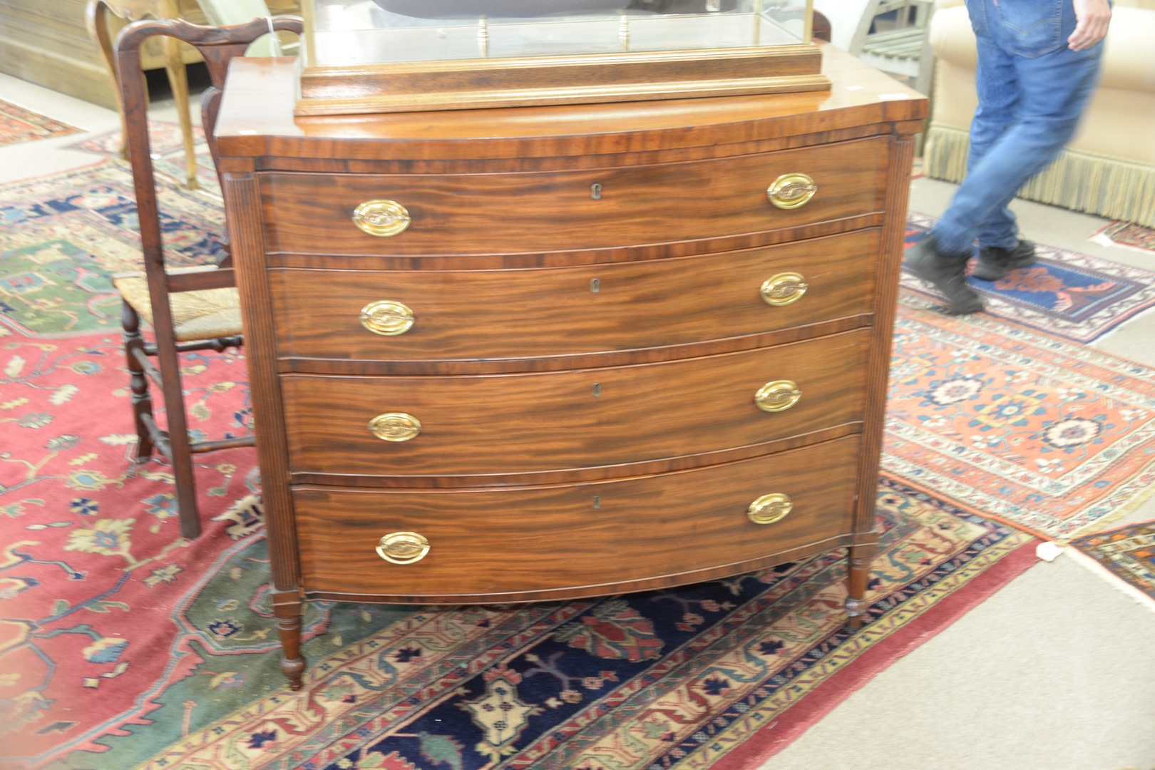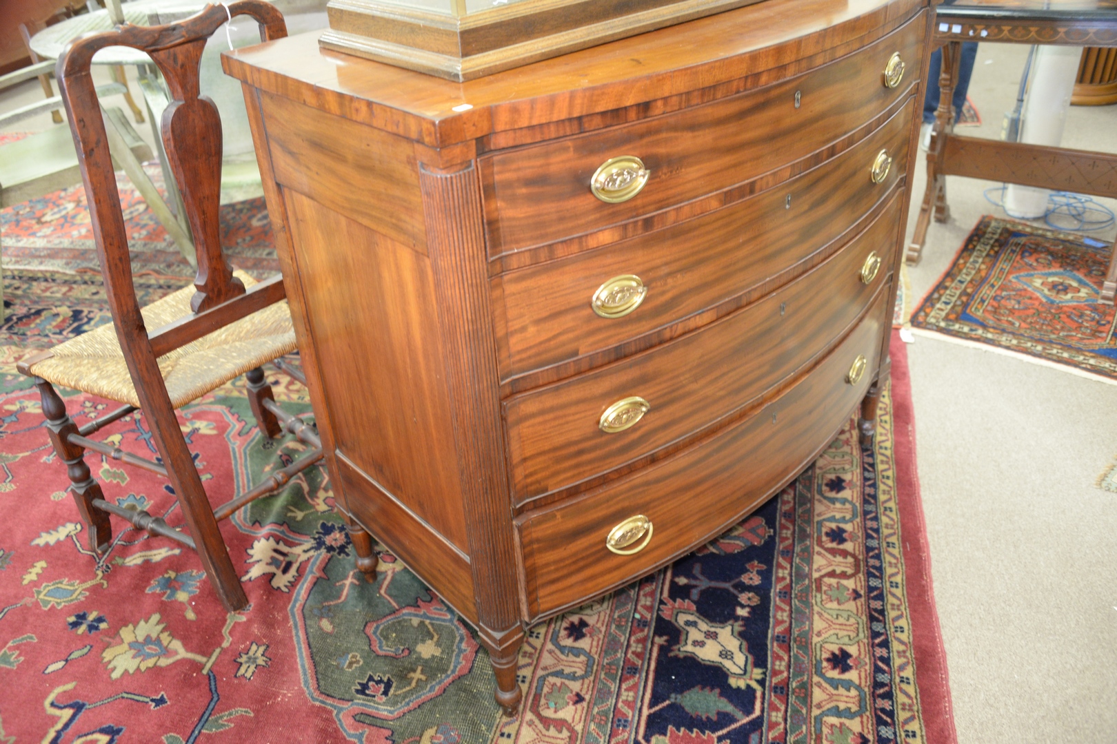 Sheraton Four Drawer Mahogany Chest with reeded columns, height 39 inches, width 42 inches