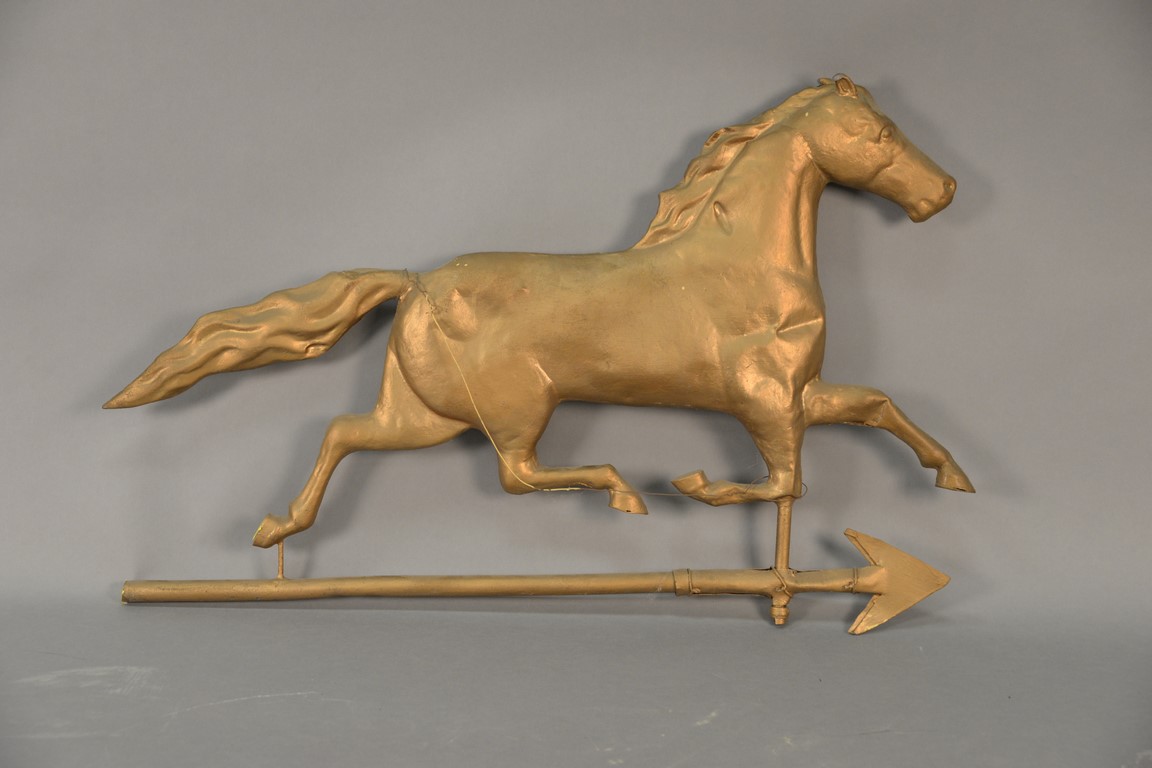 Trotting horse weathervane, repainted gold. length 29 1/2 inches
