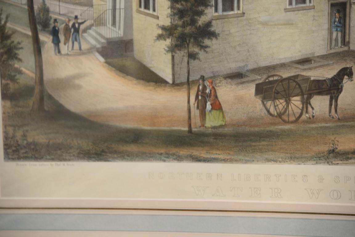 Lot 458: After Thomas M. Scott, colored lithograph, Northern Liberties & Spring Garden Waterworks, marked lower left: Drawn From Nature by Th…