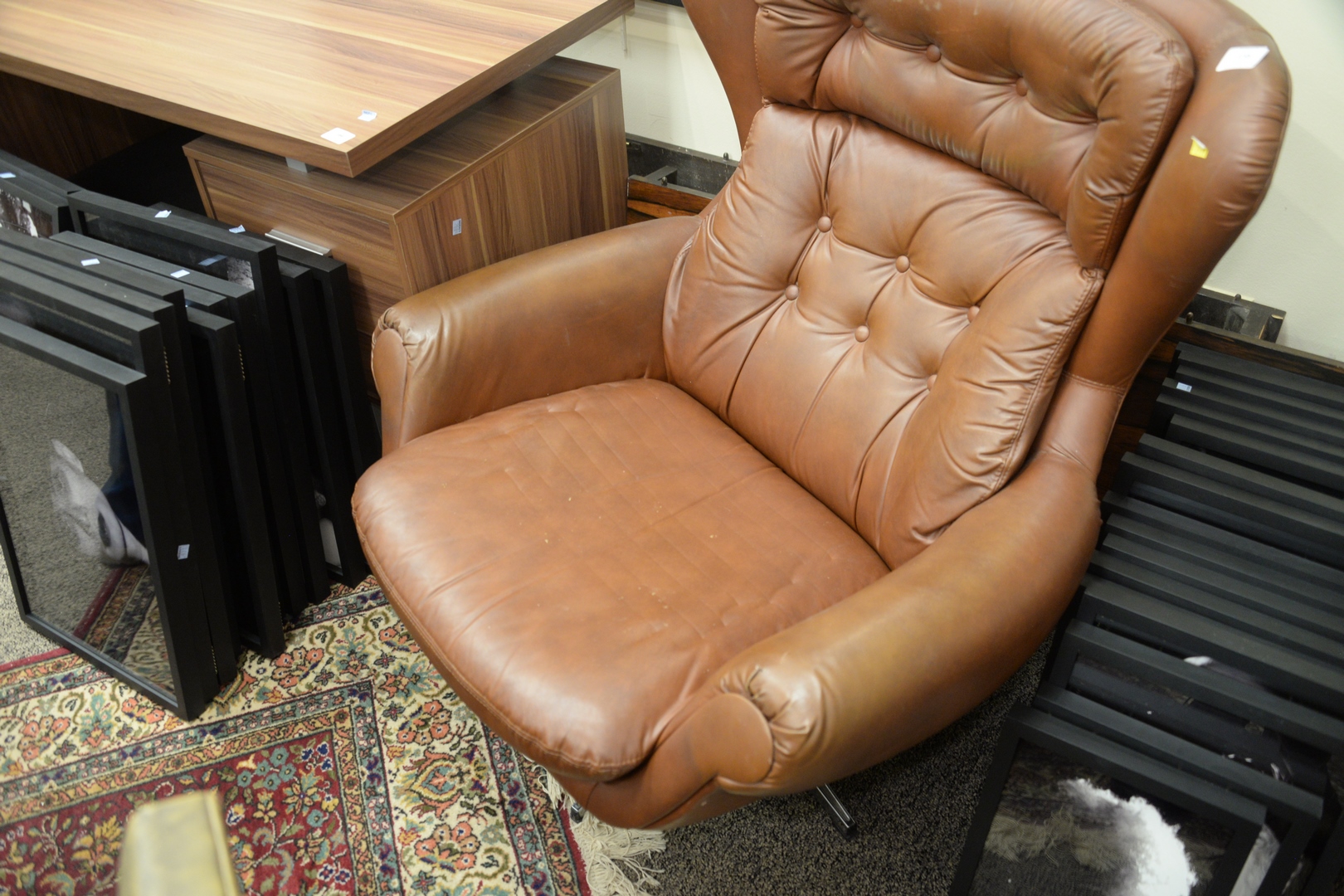Brown Overman Lounge Chair, made in Sweden, height 37 inches, width 33 inches.