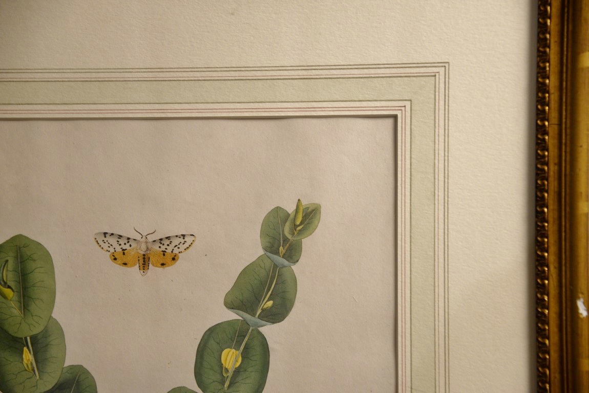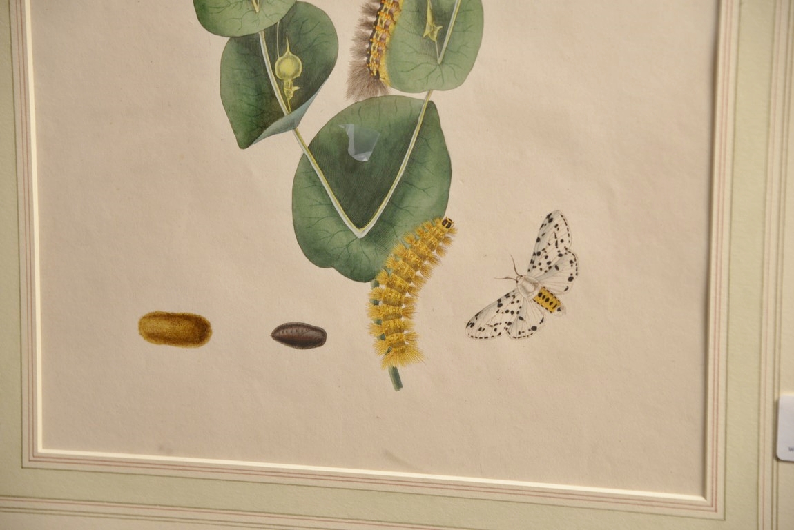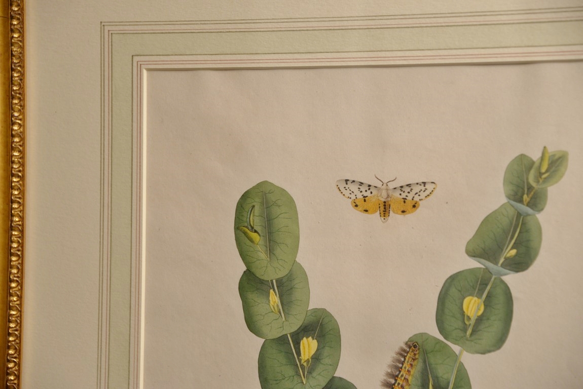John Abbot 1751-1839 pair of hand colored aquatint engravings Phalaena Placentia, White-dotted American Tiger Moth Plate #65 and Phalaena Acria, Cream Ermine Moth Plate #67 From The Natural History of the Rarer Lepidoterous Insects of Georgia Published by James Edward Smith 1759-1828 framed and matted by W. Graham Arader III sight size: 14 x 11 Provenance: Property from Credit Suisse’s Americana Collection