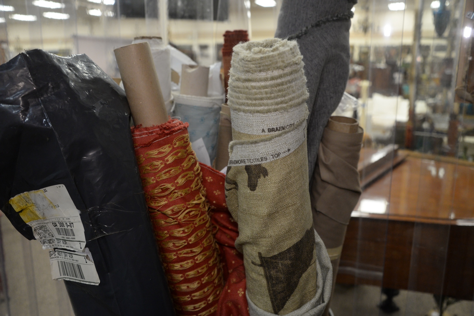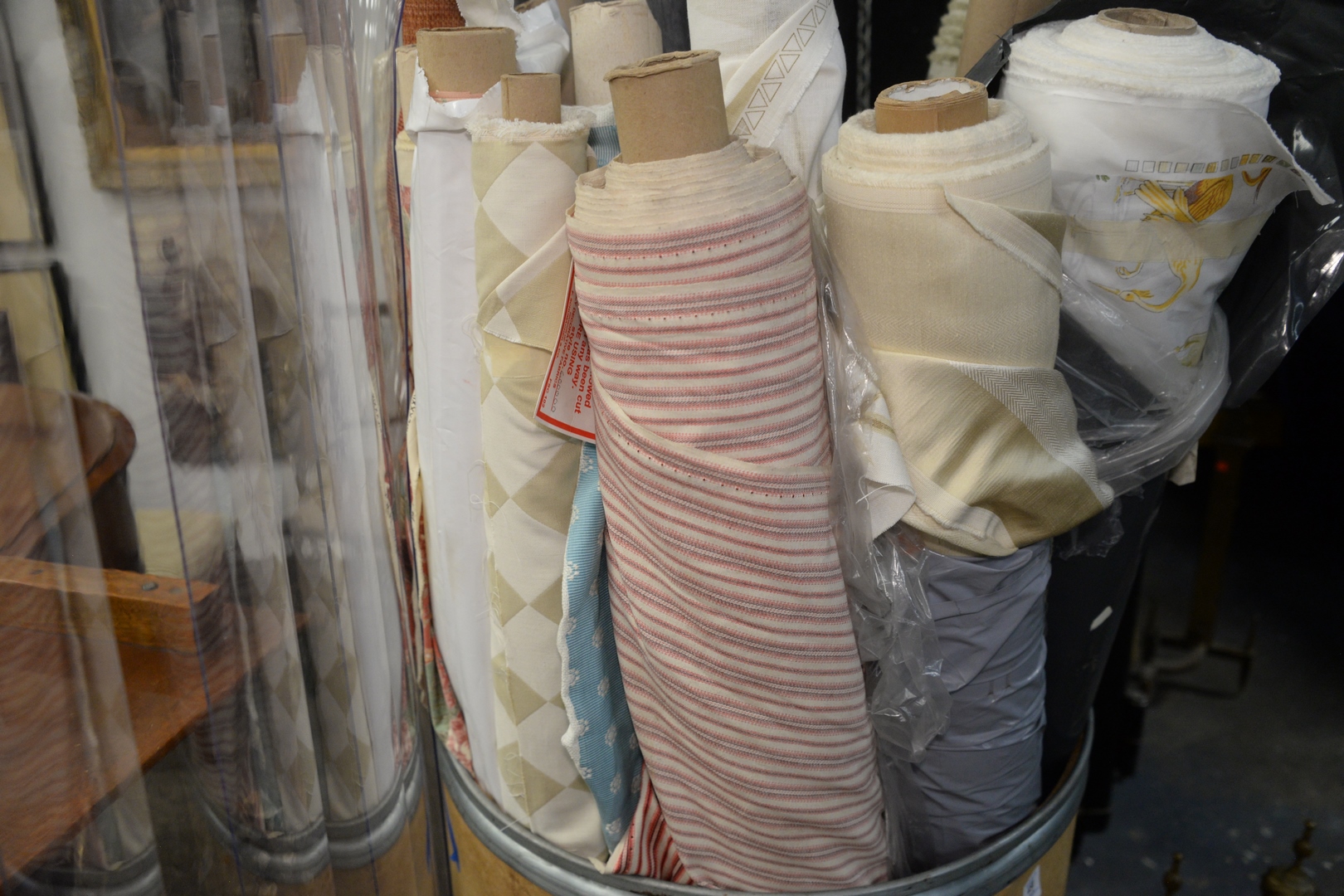 Lot 458: Large Group of Approximately Sixteen Bolts of Cloth and Fabric, Schumaker, etc., sizes vary.